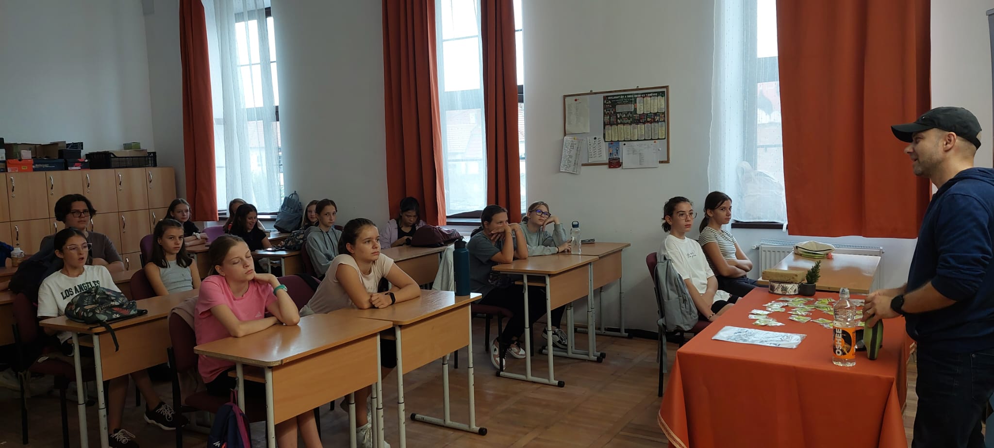 A mai nap a közlekedésbiztonságról és az önvédelemről szólt. Meghívott vendégünk, Jakab Róbert sok hasznos információ mellett lehetővé tette, hogy szimulációs szemüvegek segítségével meggyőződjünk arról, mennyire veszélyessé válik a valóság, ha egy alkoholt, vagy drogot fogyasztó ember látásával próbálunk közlekedni.