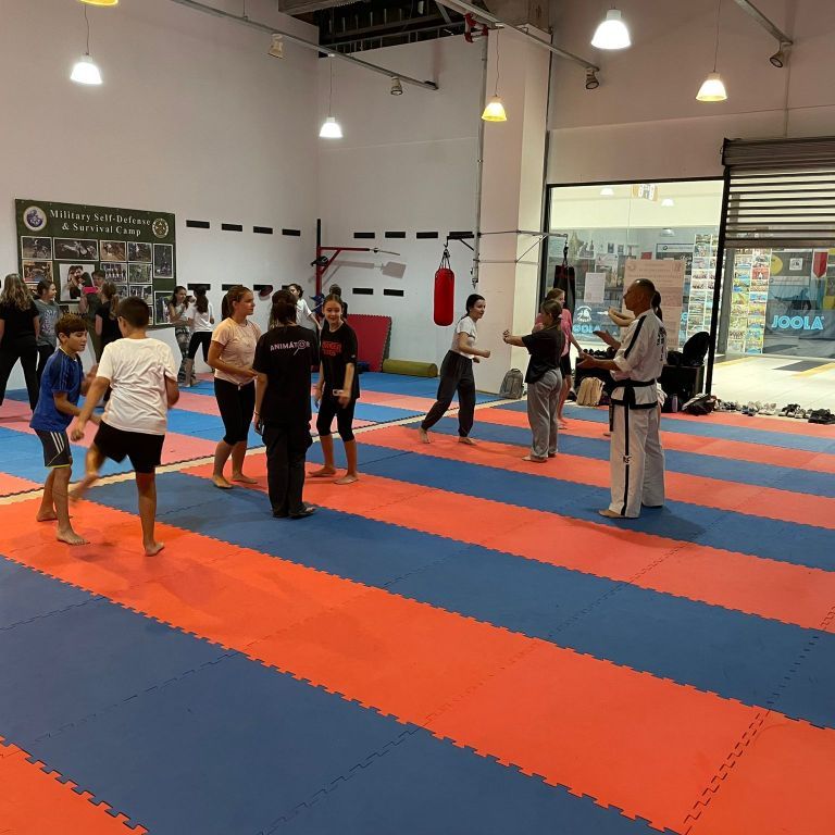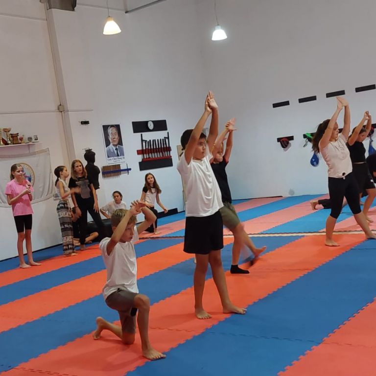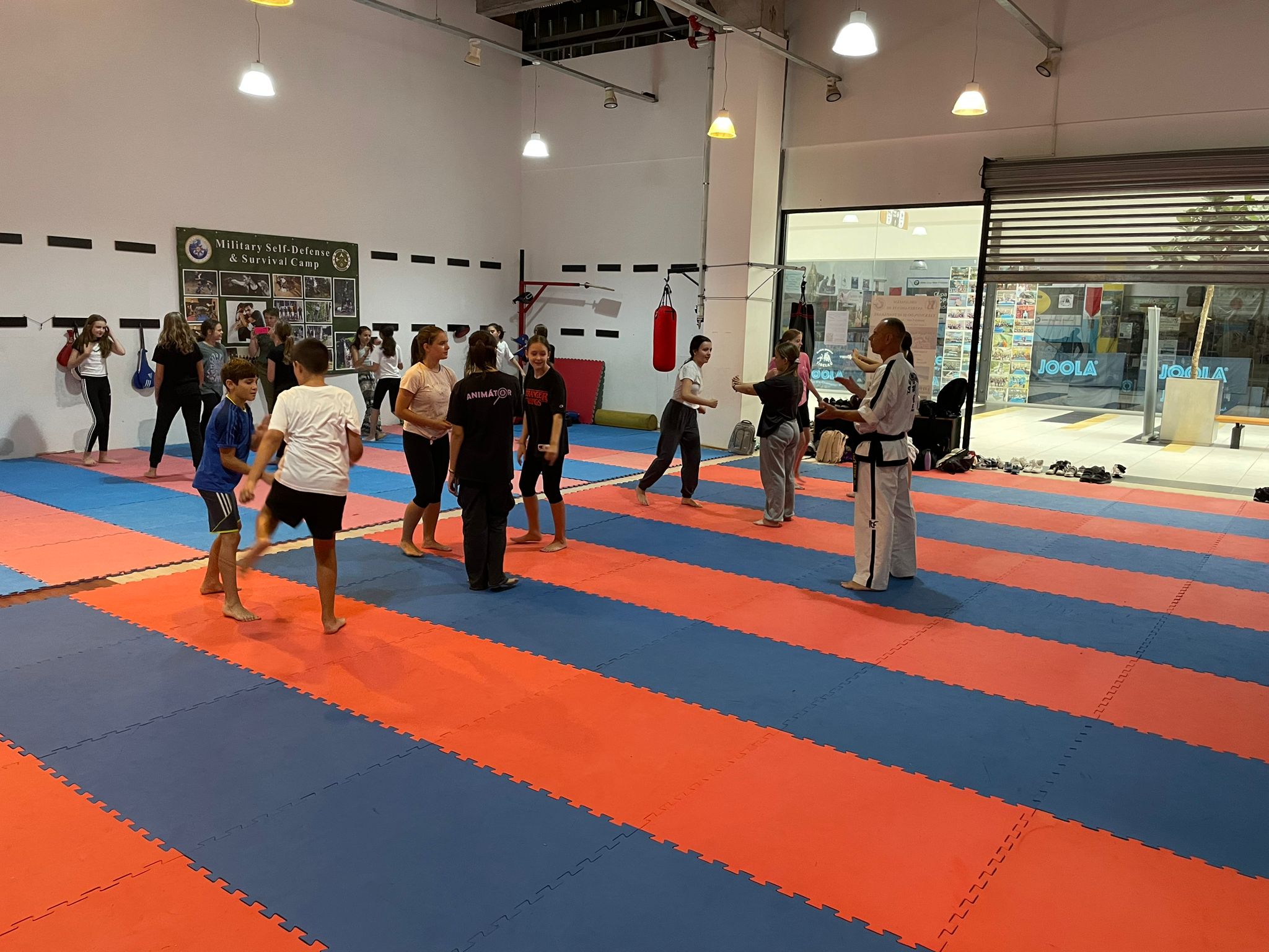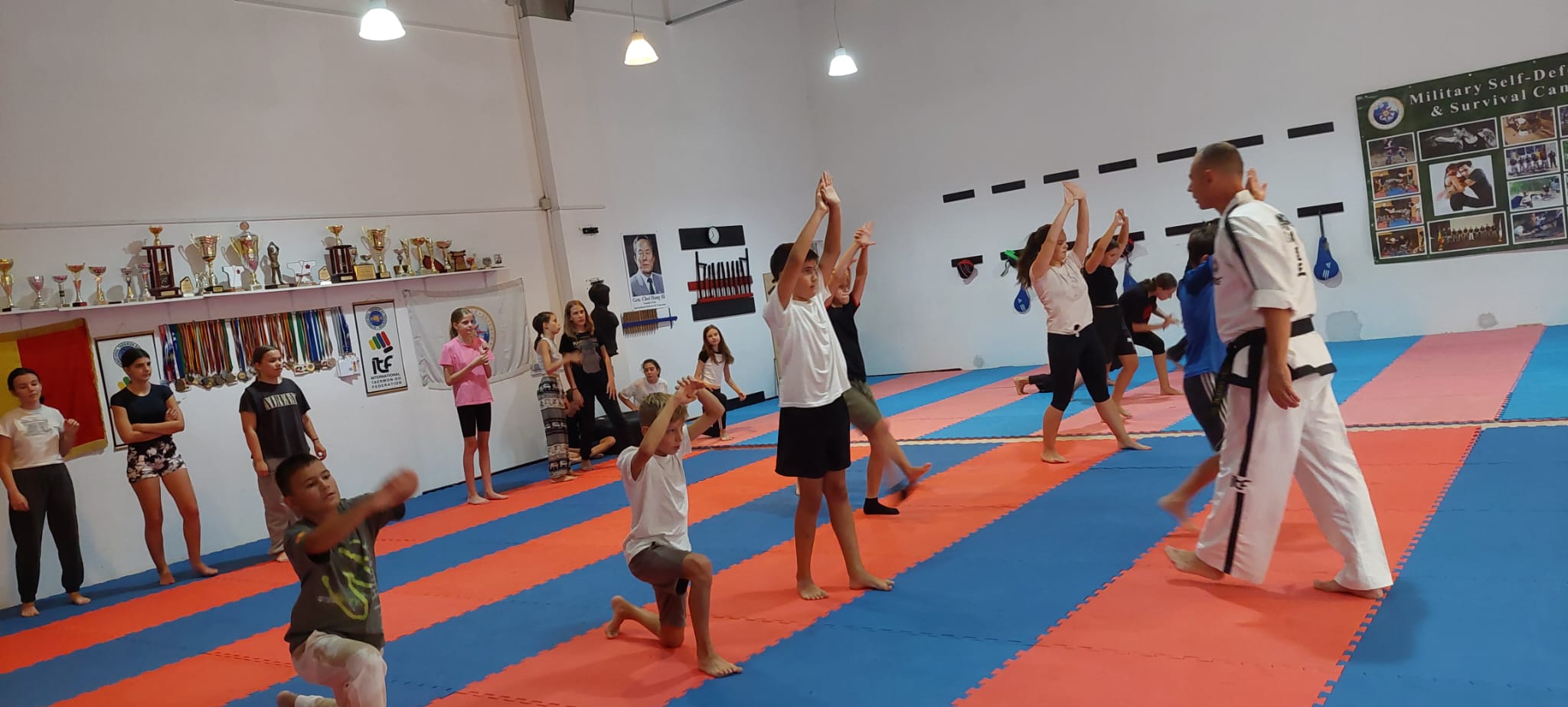 Ezután ellátogattunk a ROYAL KWON taekwon-do klub edzőtermébe, ahol Tripa Ferenc, a klub elnöke fogadott bennünket egy nagyon jó hangulatú alapfogásokba bevezető edzésre.