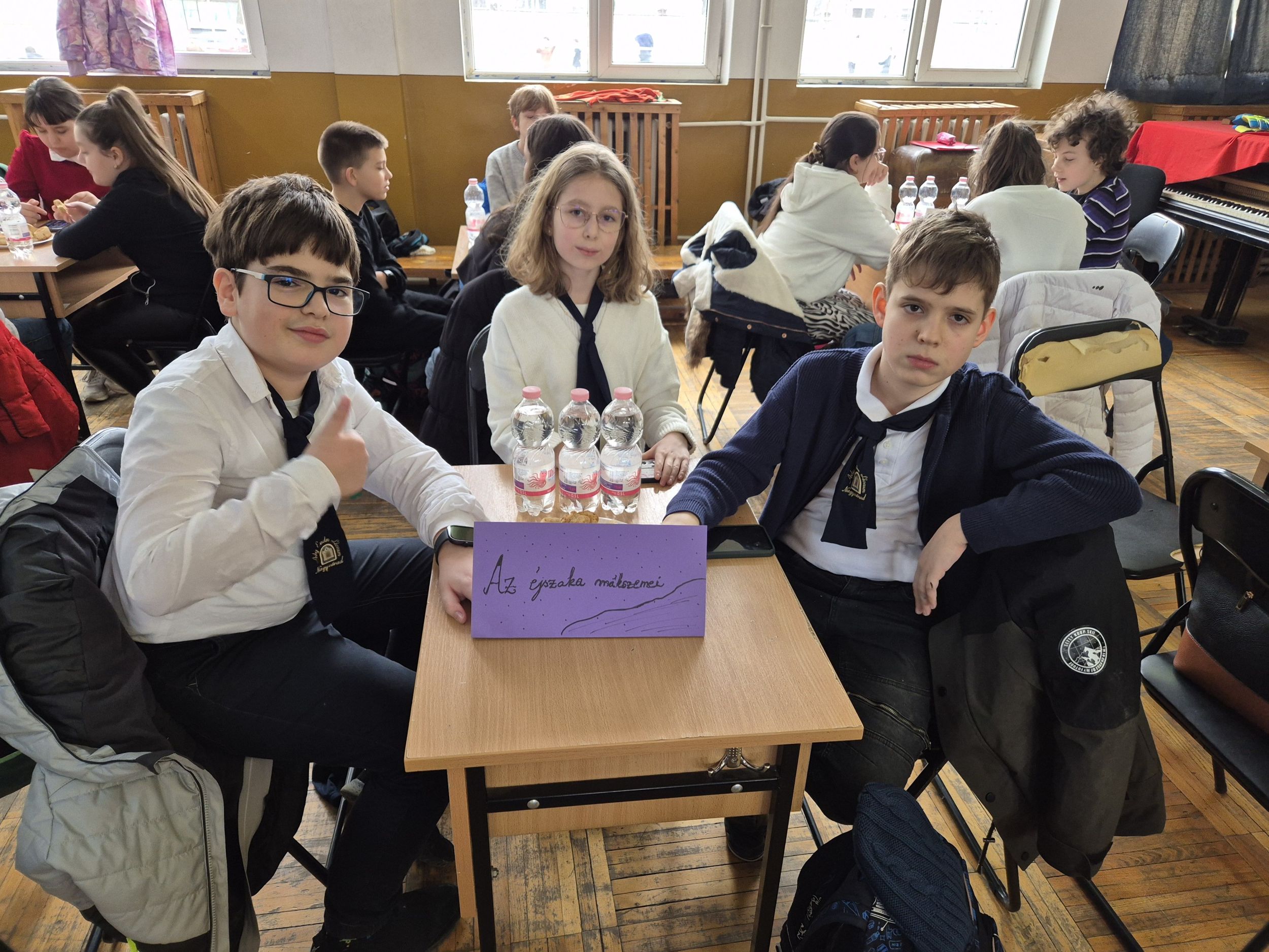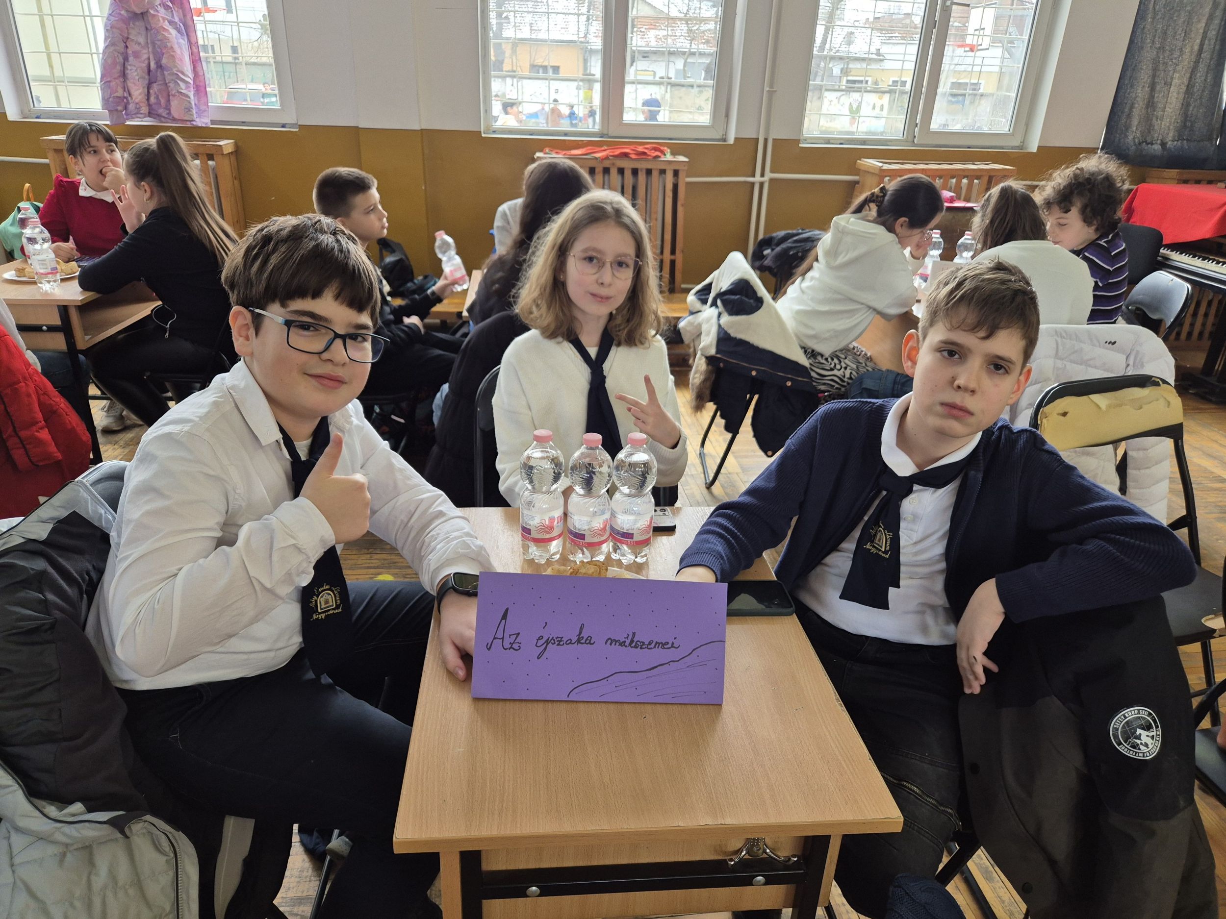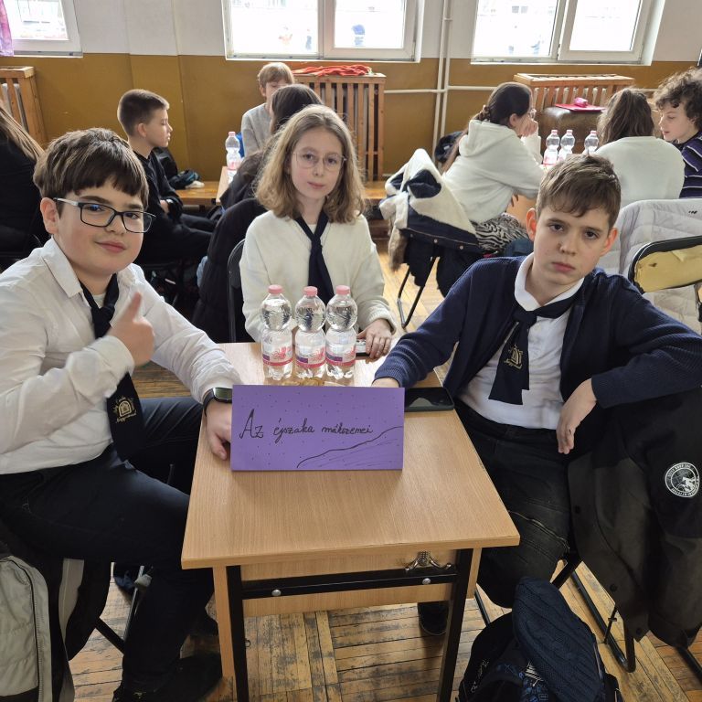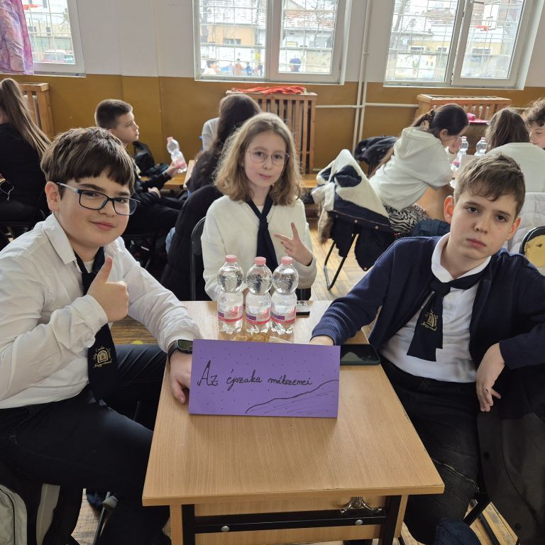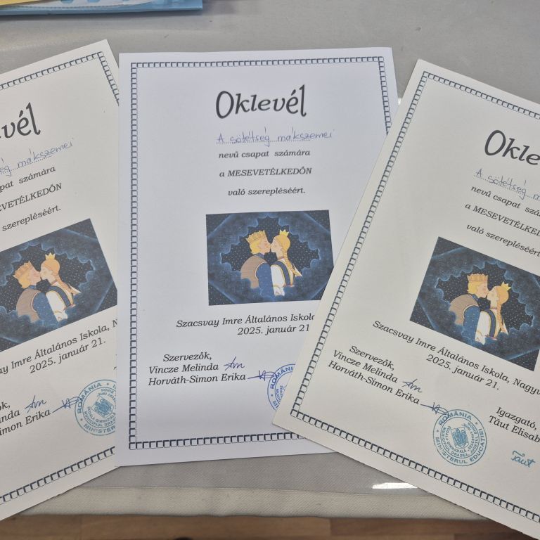 A magyar kultúra hetében ötödikeseink a Szacsvay Imre Általános Iskola által szervezett mesevetélkedőn vettek részt. A Fekete Ármin, Lukács Johanna és Sipos Zalán alkotta csapat 5 meséből készült fel a versenyre, melyekkel kapcsolatban betűrejtvényes, zanzás, szófelhős, illetve mutogatós-rajzolós, Kahoot-os feladatokat kellett megoldaniuk. A 14 csapatos mezőnyben A sötétség mákszemei nevet viselő csapatunk sikeresen teljesítette a feladatokat, és elégedetten, jó kedvűen tért haza a versenyről. Felkészítőjük Kirkósa Enikő tanárnő volt. Szeretettel gratulálunk apróságainknak!