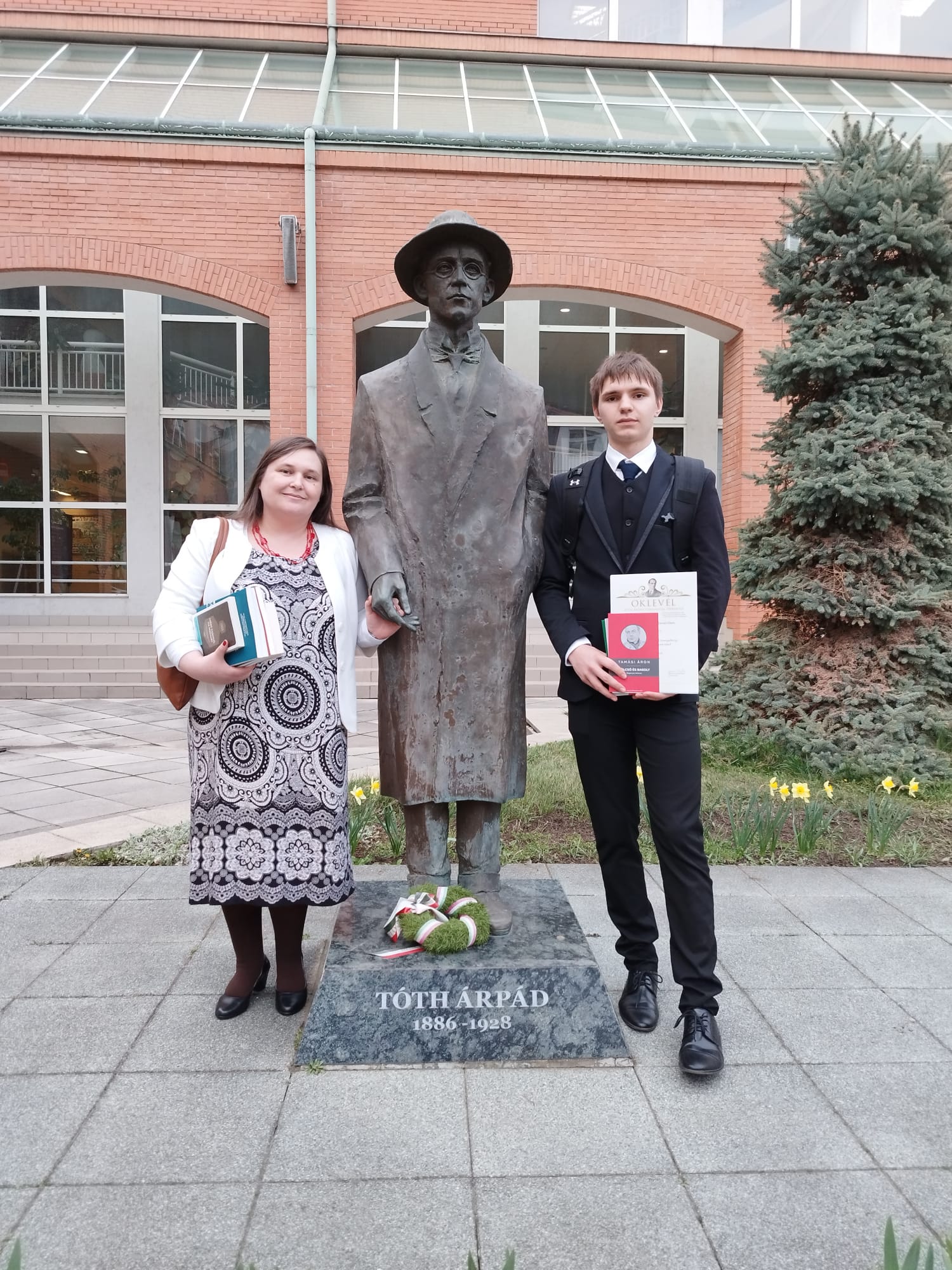 Március 26-án, Tóth Árpád születésére emlékeztek a debreceni Tóth Árpád Gimnáziumban a hagyományosan tavasszal rendezett nemzetközi szavalóversennyel. Iskolánkat Bíró Levente, 9. D osztályos diák képviselte, aki meg is nyerte a 7-9. osztályos kategória fődíját. A 26 versenyzőnek egy-egy szabadon választott verset kellett előadnia Tóth Árpádt és Szabó Lőrinc műveiből. A zsűri elnöke Bakota Árpád, a Csokonai Színház művésze volt, aki értékes módszertani előadást tartott a versenyzőknek.