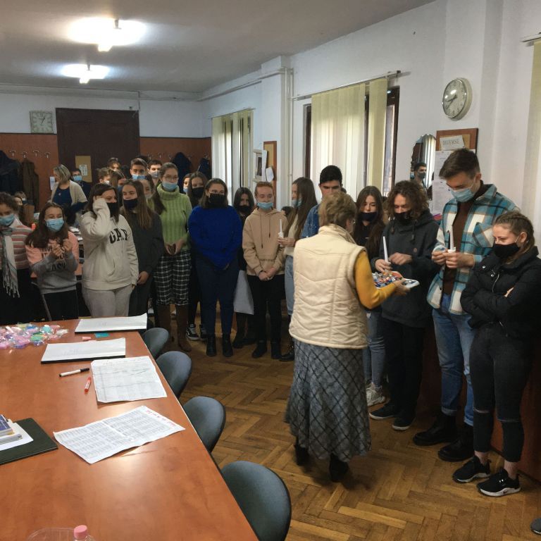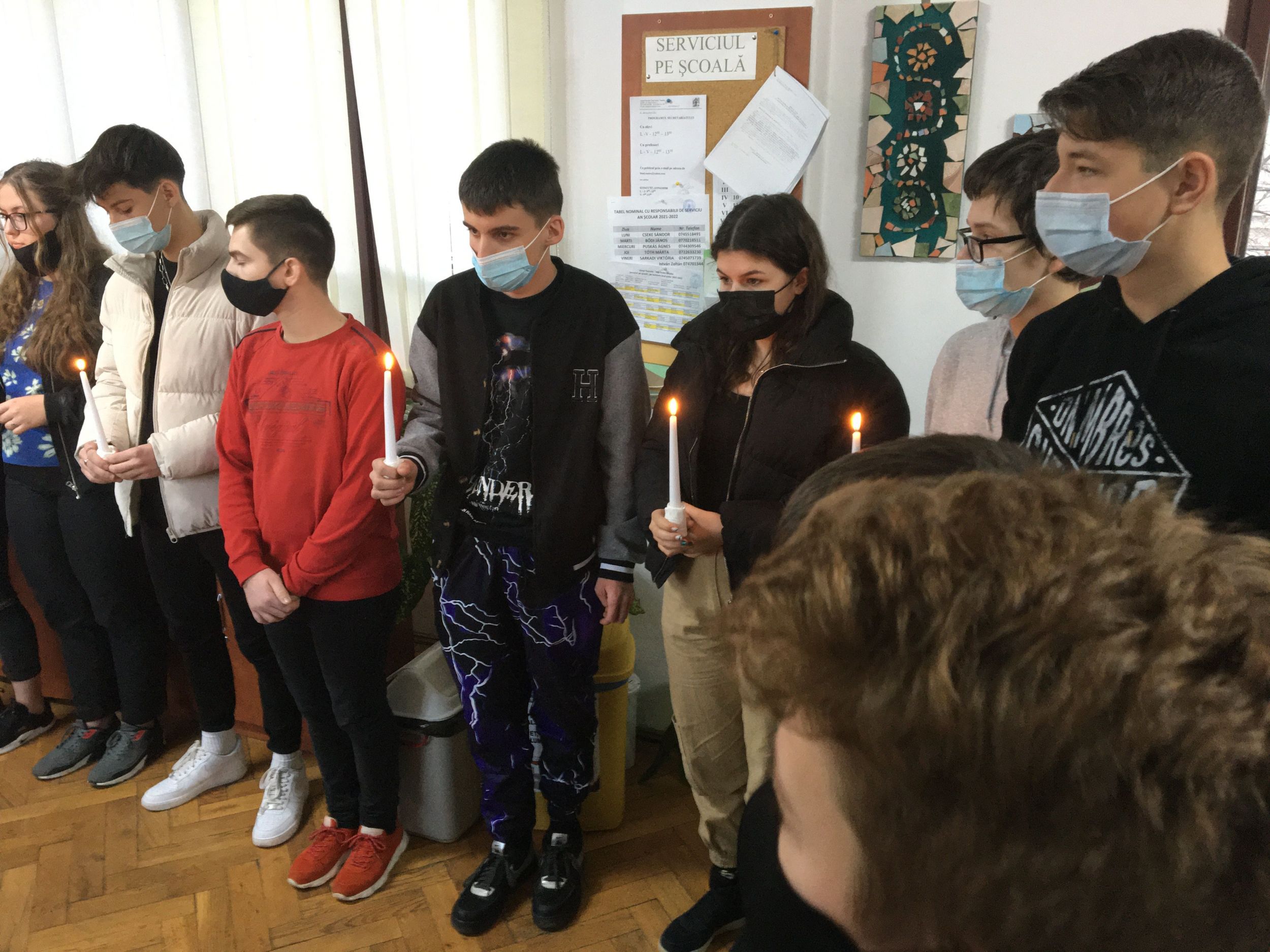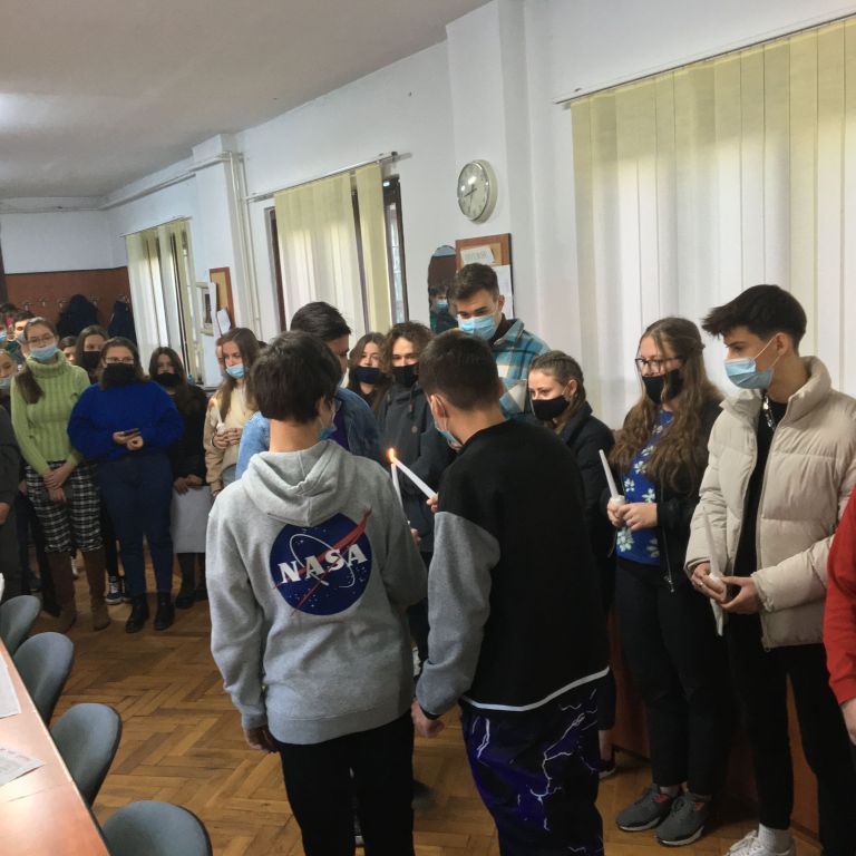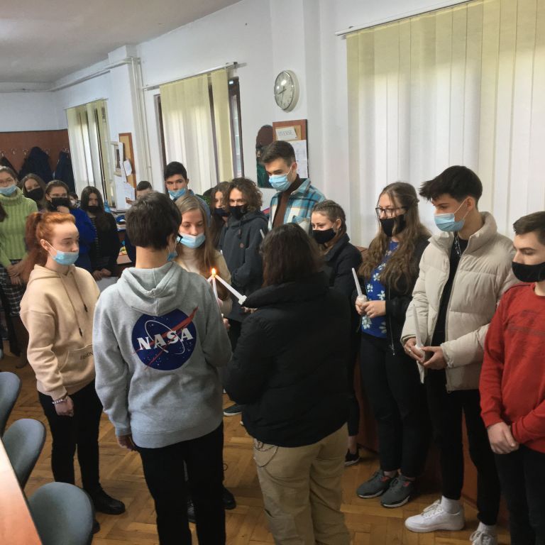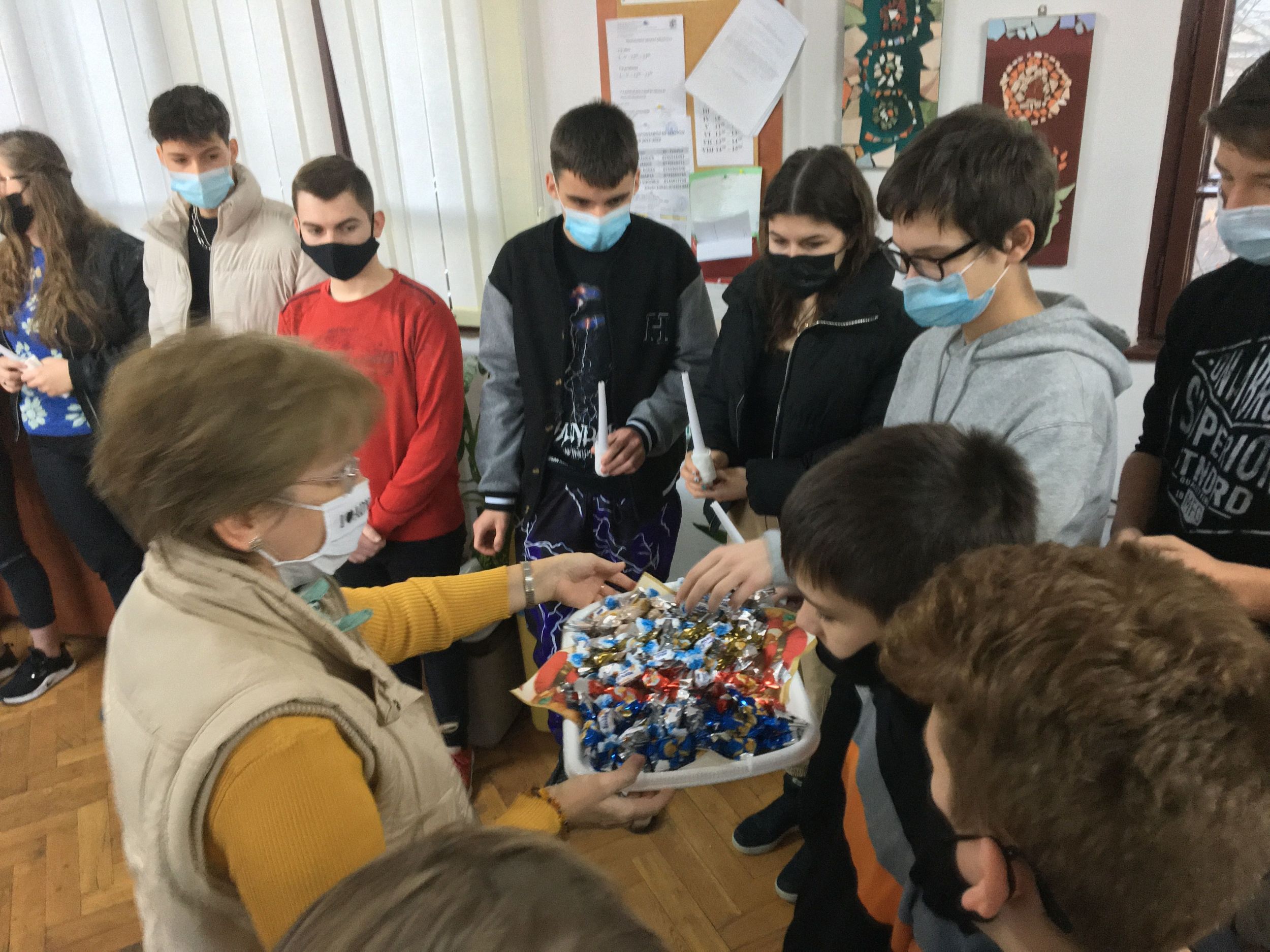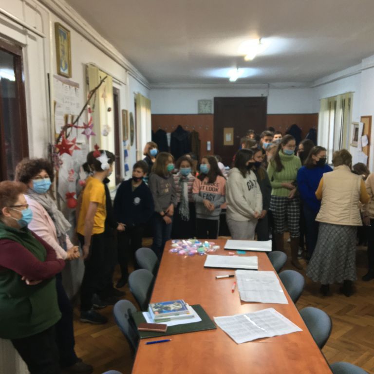 Több osztály diákjaiból összeállt gyermeksereg köszöntötte a tanárokat a közelgő ünnep alkalmából. Megható közös éneklés és versmondás, gyertyagyújtás tette teljessé a karácsonyi hangulatot. A diákokat Módi Kinga református vallástanárnő készítette fel.