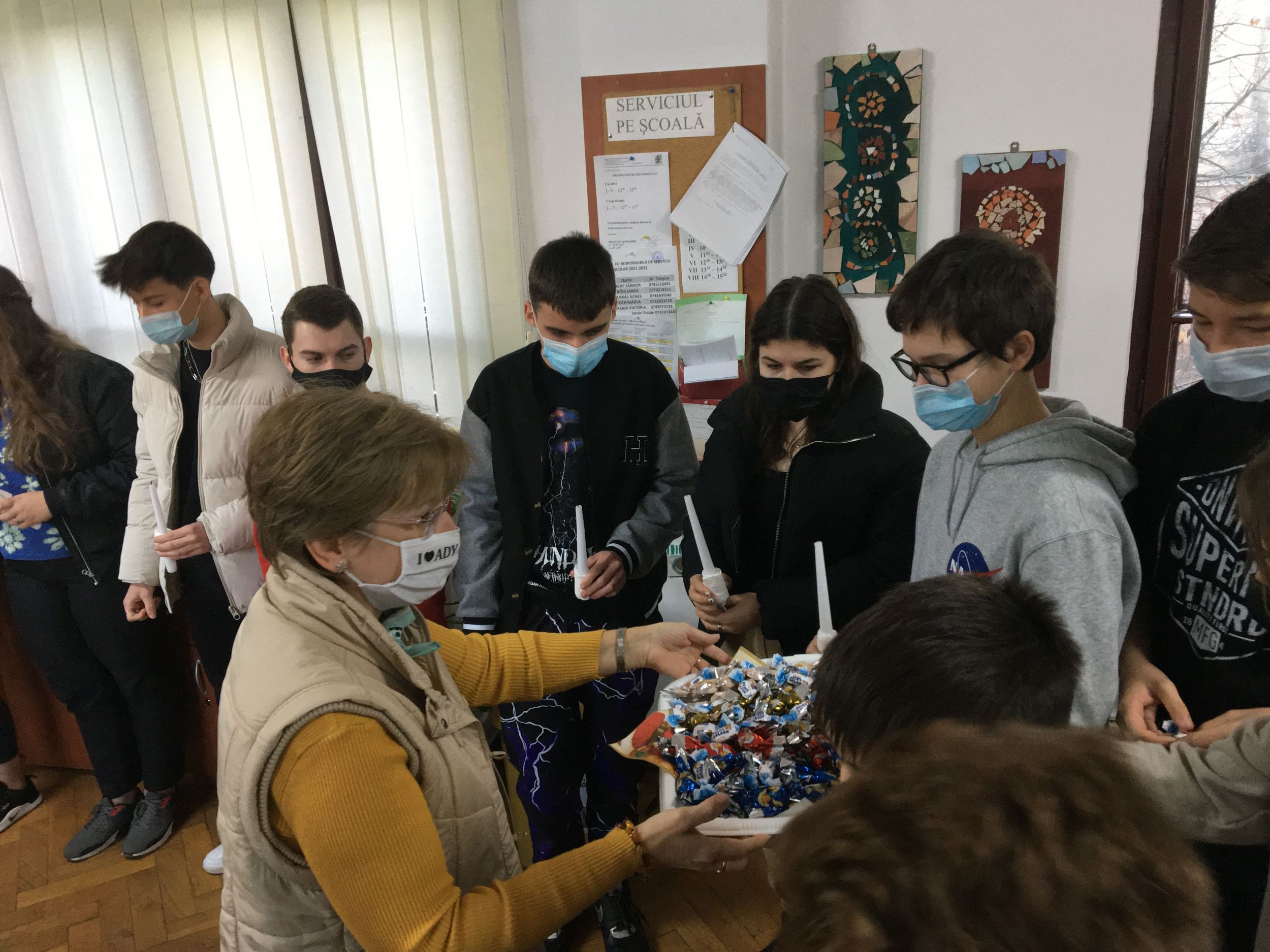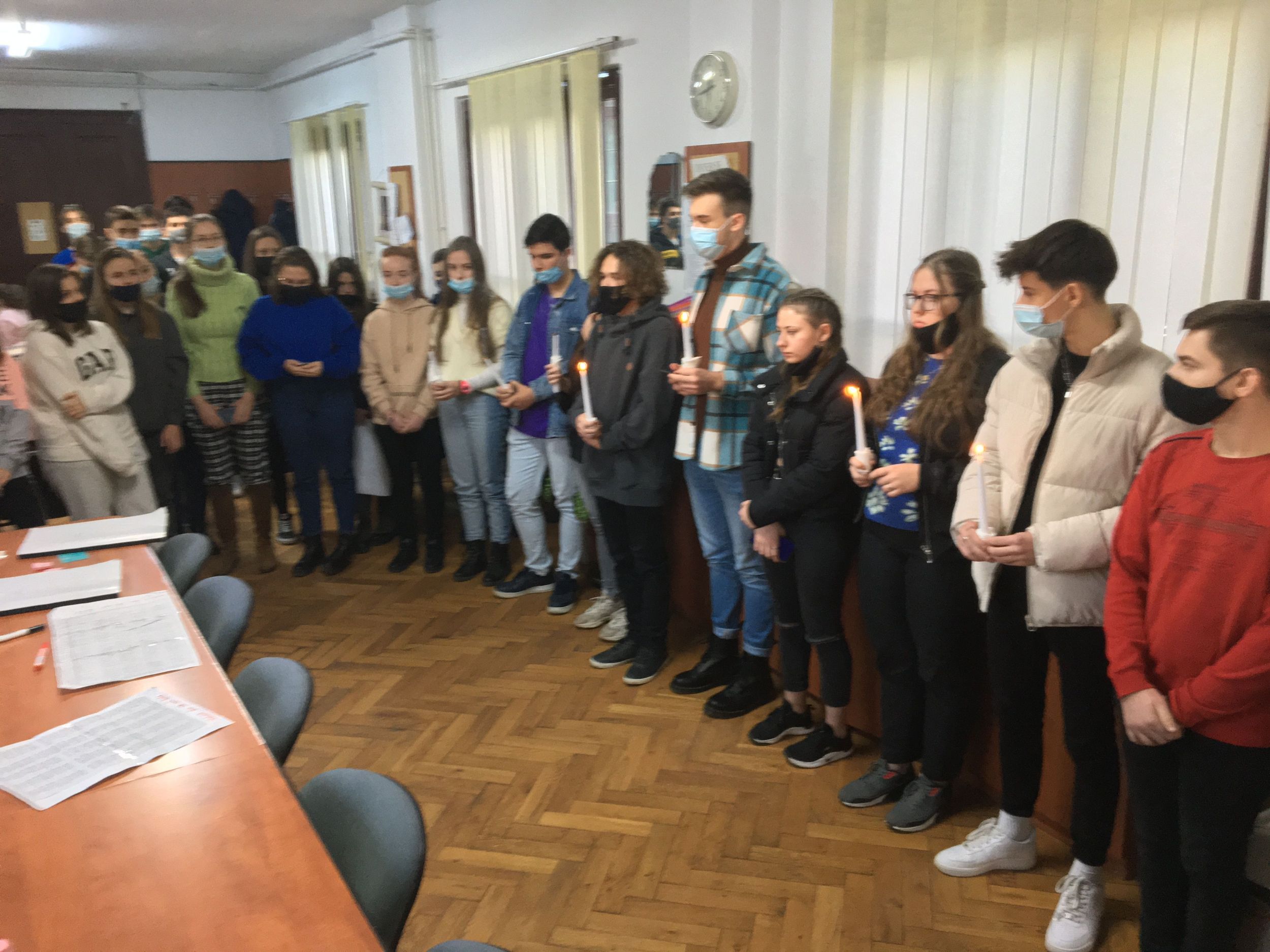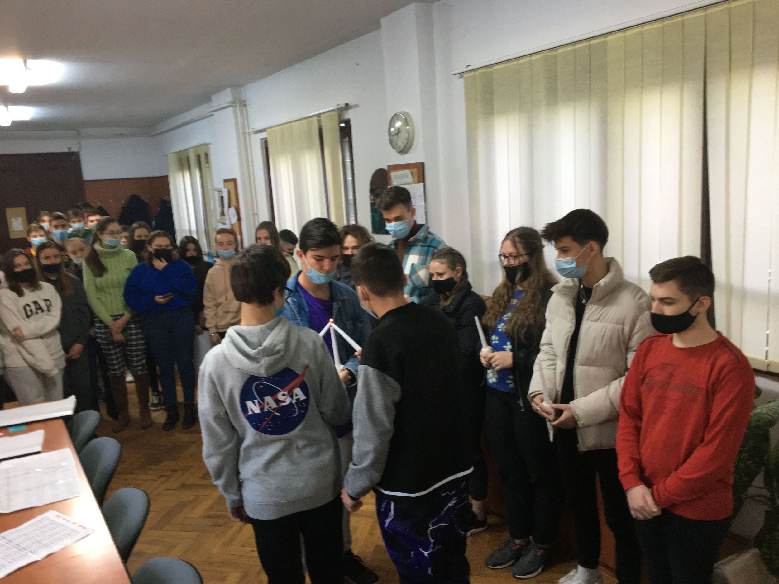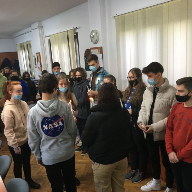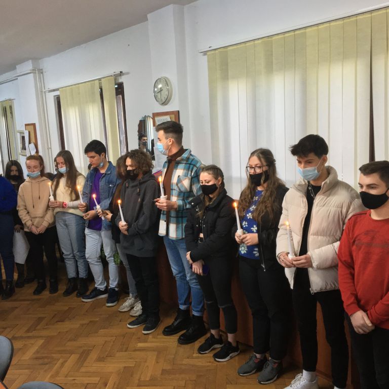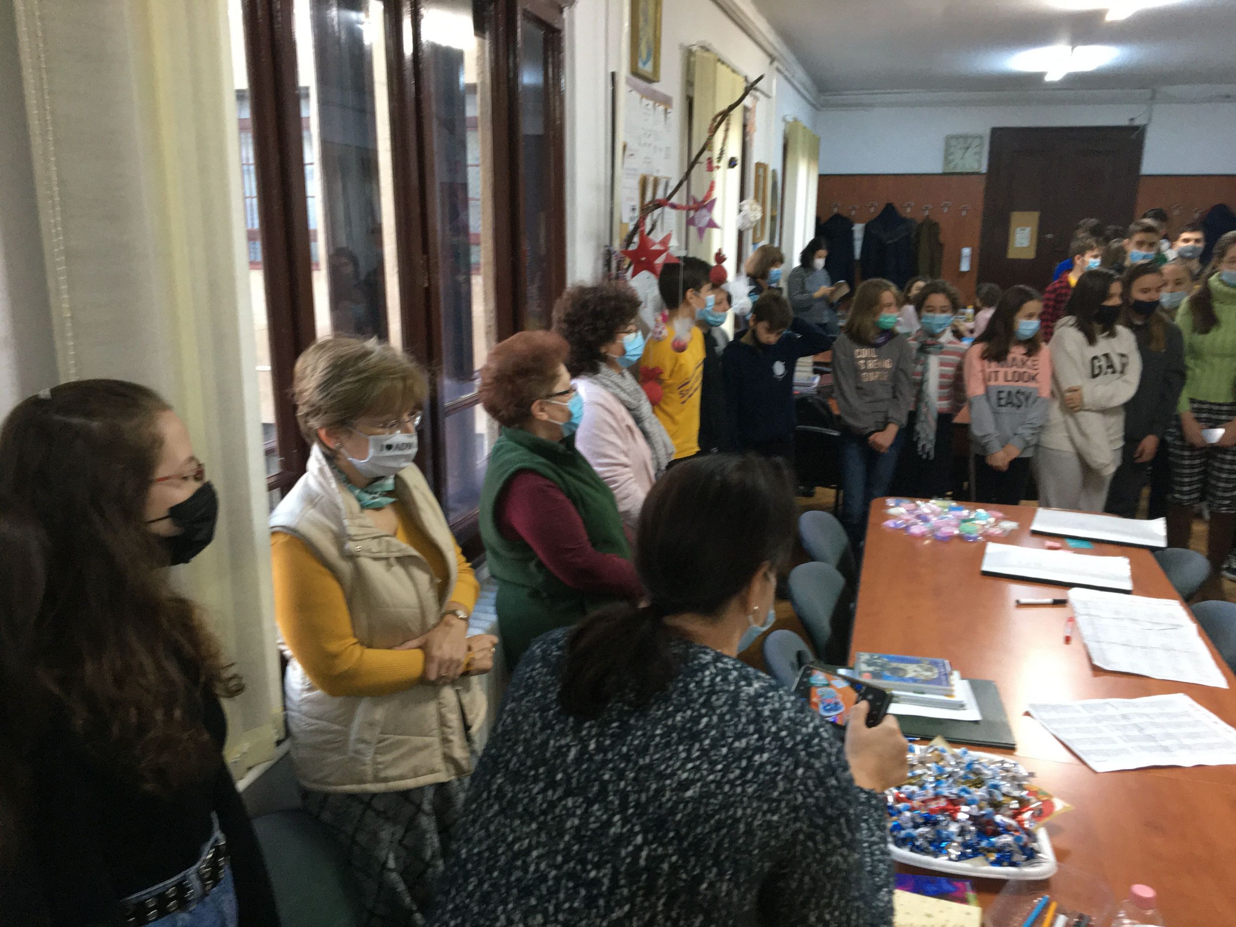 Több osztály diákjaiból összeállt gyermeksereg köszöntötte a tanárokat a közelgő ünnep alkalmából. Megható közös éneklés és versmondás, gyertyagyújtás tette teljessé a karácsonyi hangulatot. A diákokat Módi Kinga református vallástanárnő készítette fel.