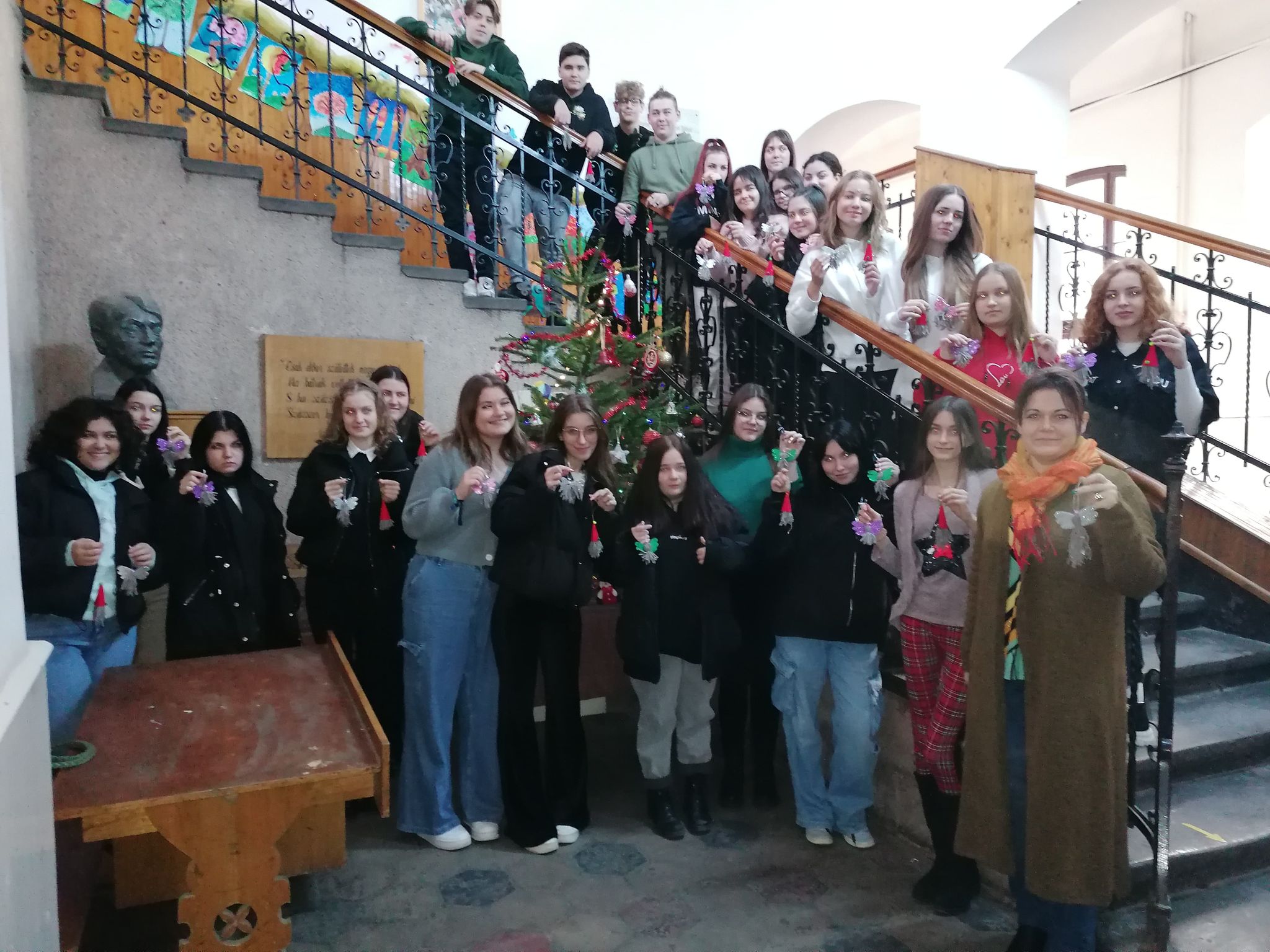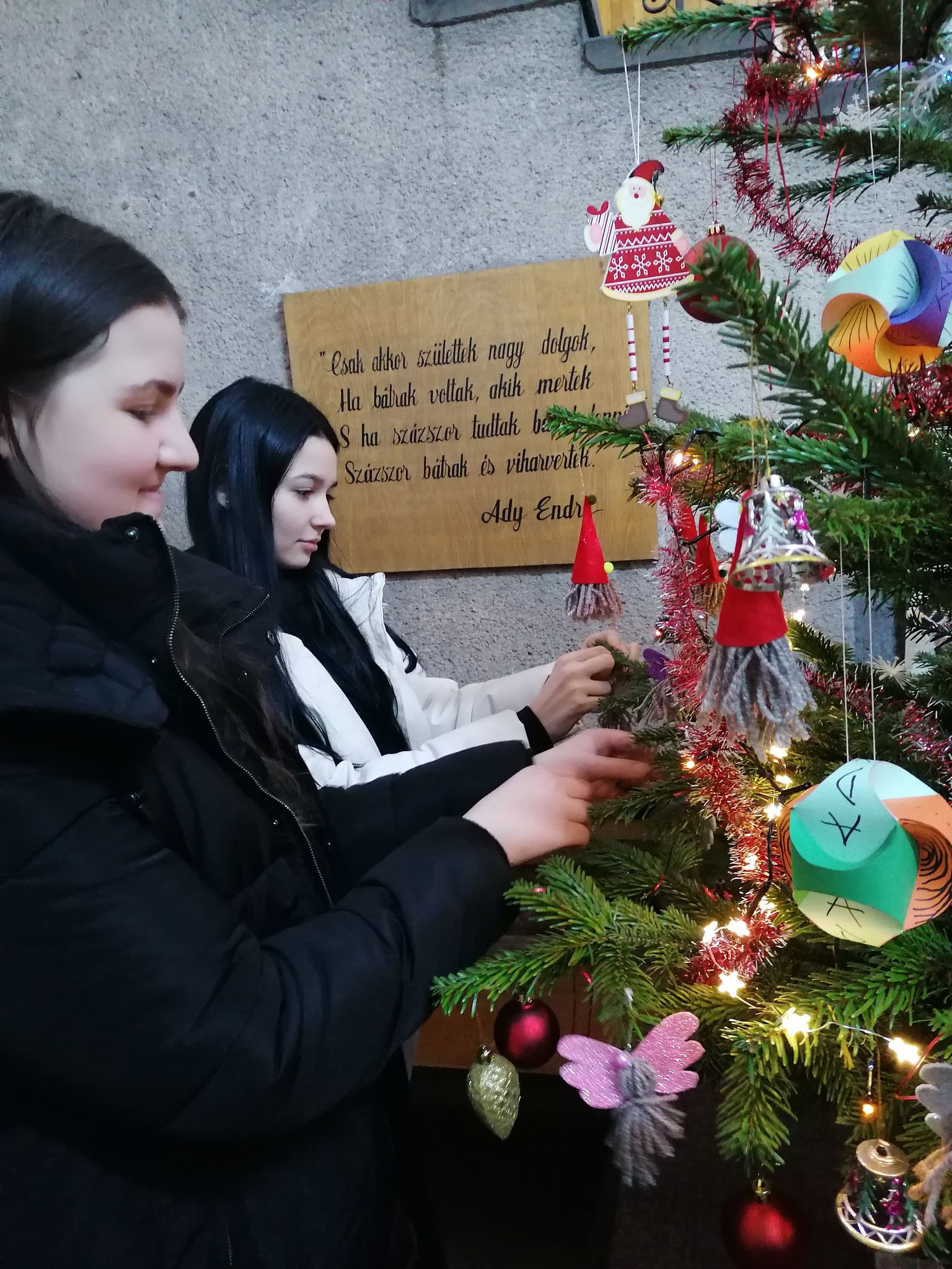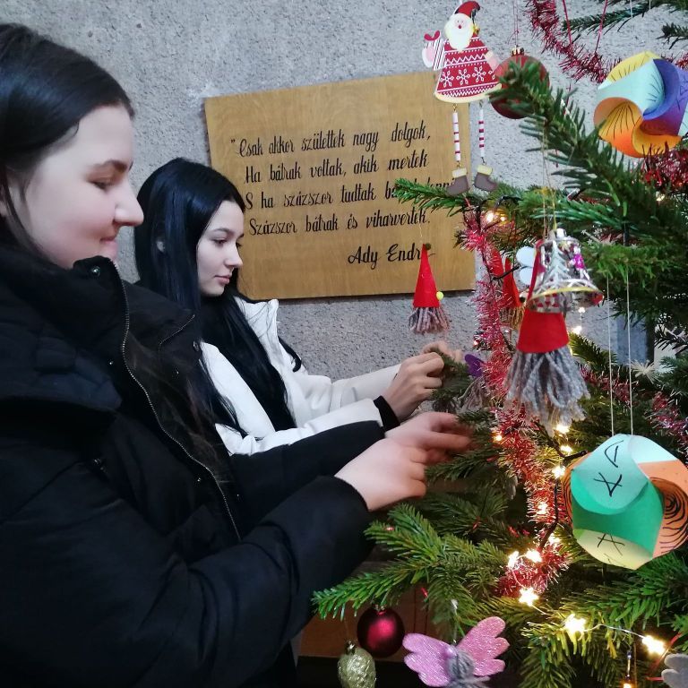 Az ünnepre hangolódás jegyében iskolánk pedagógia és filológia szakos diákjai (9B, 10A) kézműves tevékenység keretében karácsonyfa díszeket készítettek. Csillogószárnyú angyalkákkal és pirossapkás mikulásokkal díszítették iskolánk karácsonyfáját. A tanulók szorgos kezeit Czirják Enikő és Apáti Timea tanárnők irányították. Köszönet a támogatásért a Rákóczi Szövetségnek!