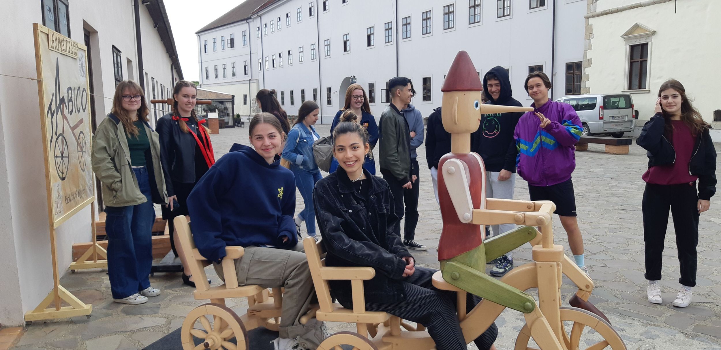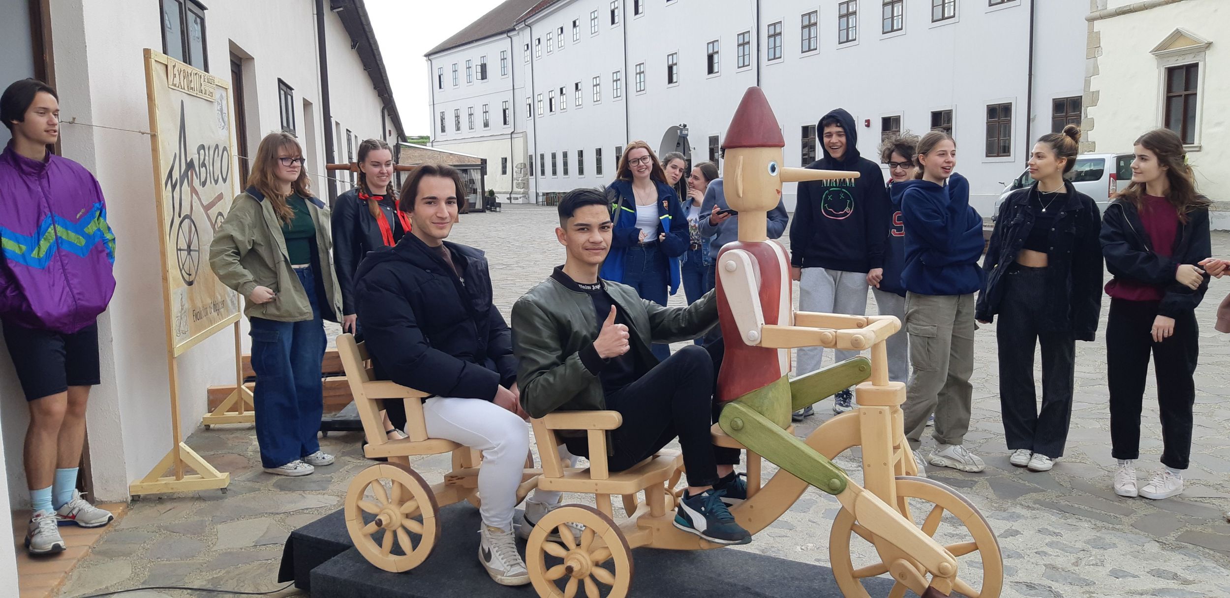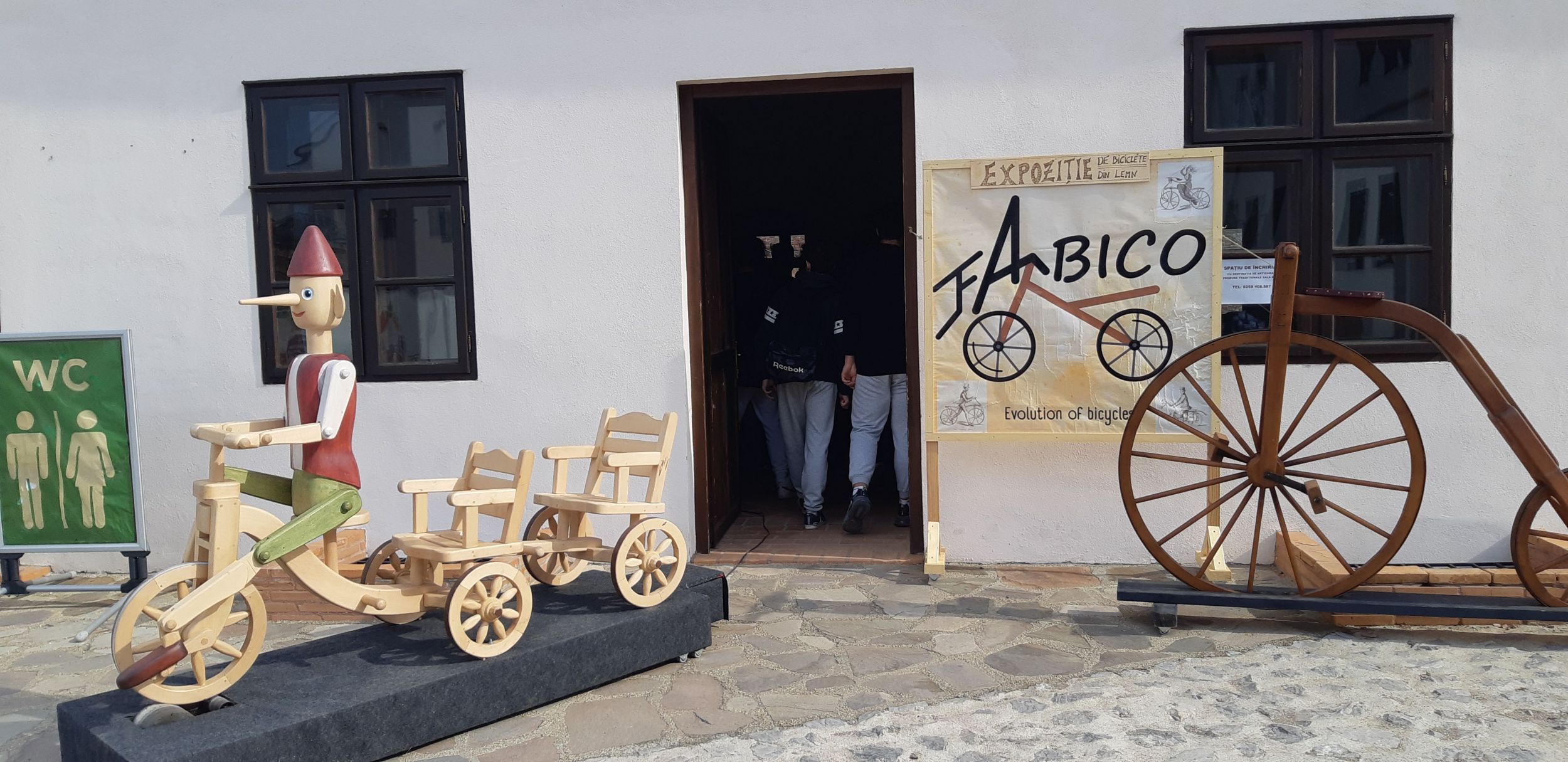 Antal Lajos olyan kerékpárokat faragtott ki, melyek eredetileg is fából készültek egy adott korban. Igyekezett tartani a méretarányokat, az eredeti leírások alapján. A kiállítóterem előtt felállított kétüléses biciklit Pinokkió vezeti. Ezt a diákok ki is próbálták. Az alkotások mind működőképesek, ha nem lennének rögzítve, használni is lehetne őket.