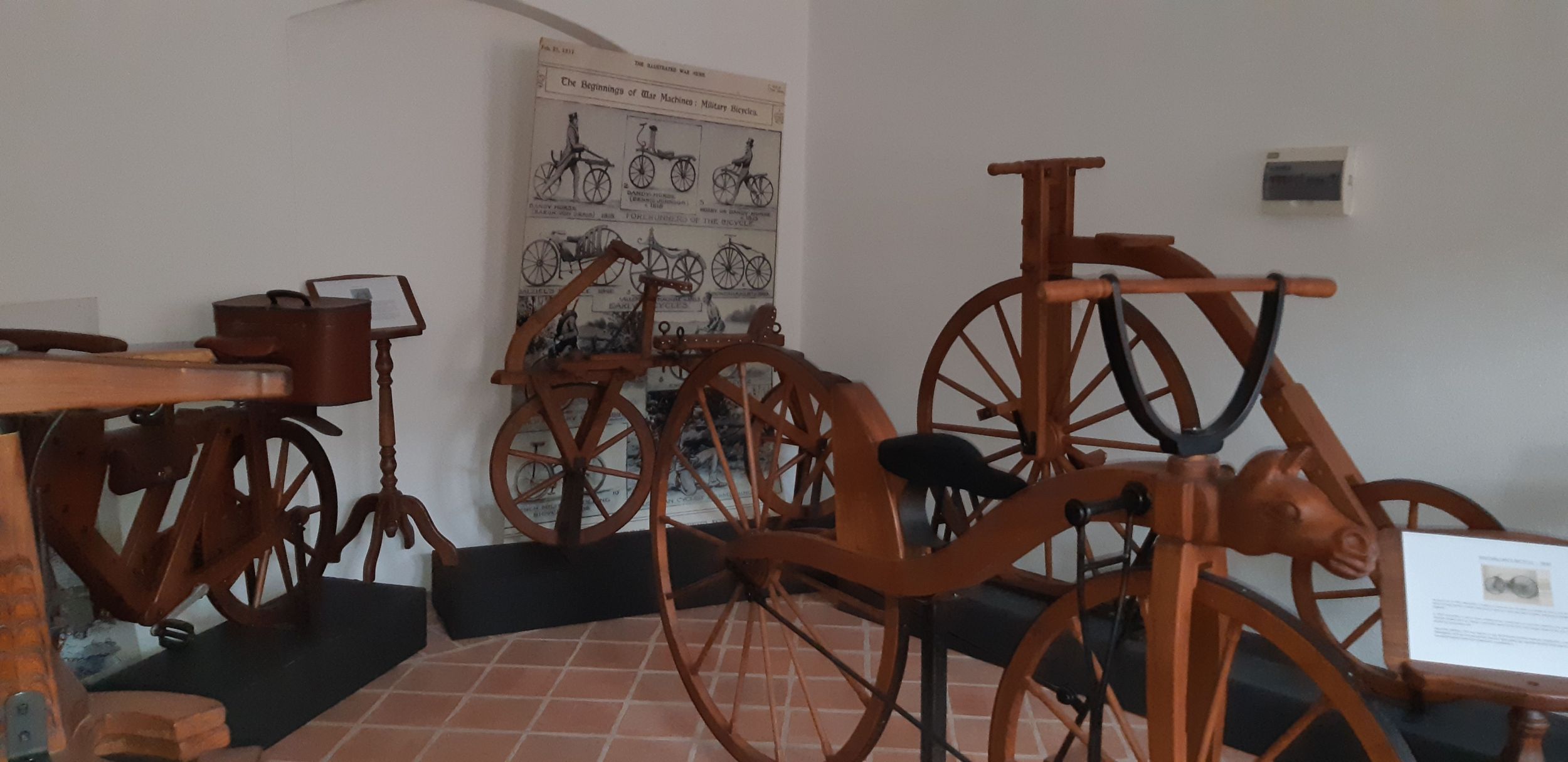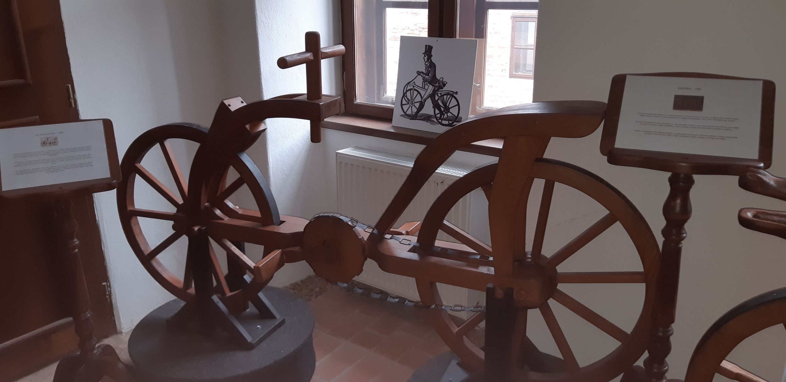 A kiállítás megtekintése során nyomon követhethettük a biciklik fejlődését az 1700-as években megalkotott pedál nélküli és nem irányítható „kerekes lótól”, az 1800-as évekre jellemző fogaskerekek által hajtott és kormányozható szerkezetekig.
