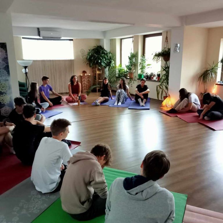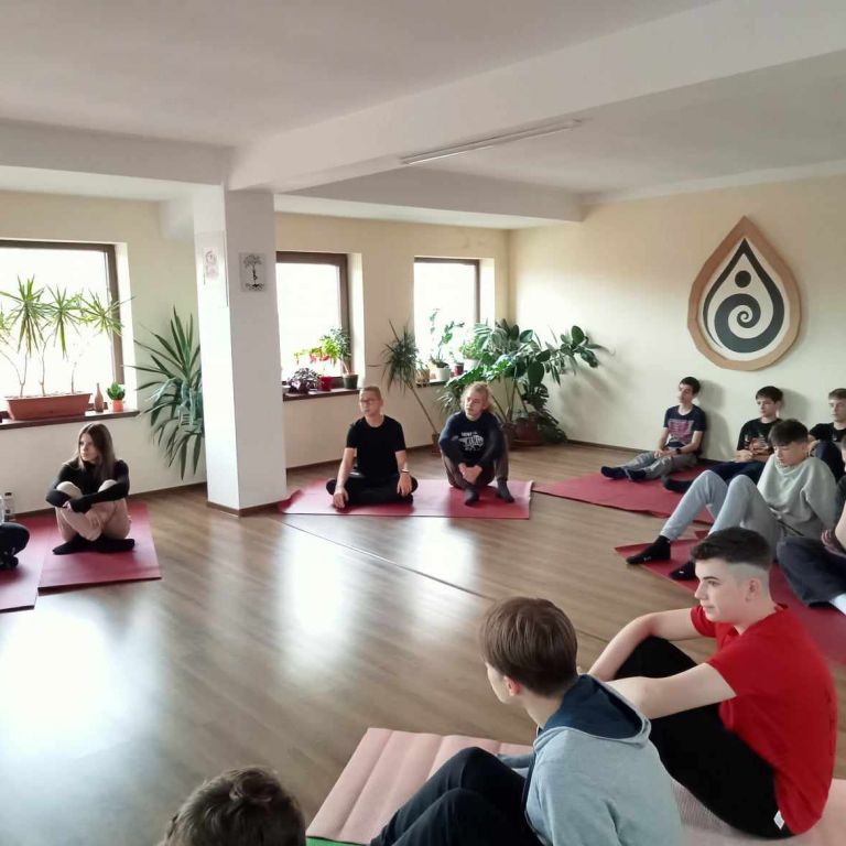 Iskola másképp-hét negyedik napján a VIII.A diákjai ellátogattak a nagyváradi CSEPPJÓGA-stúdióba, ahol Csepregi Janka-Zsófia (lélekben most is adys) jógaoktató mesélt arról, hogy minek köszönhetően választotta hivatását, és milyen nagy ajándék is az, ha valaki azt a hivatást űzheti, ami igazán közel áll hozzá. Mesélt a gyerekeknek azokról az egészségügyi, lélektani hatásokról is, amit a rendszeres mozgás, adott esetben a jóga, a nyújtás, illetve a helyes légzéstechnikák tudatos használata jelenthet fiatalnak és idősneknek egyaránt, majd egy játékos gyakorlás keretén belül megtanította őket olyan technikákra, melyek segítségével ők maguk is gyakorolhatják a stresszoldást. Jó élmény volt számukra ez az alkalom, és remélhetőleg hasznos tapasztalat is.