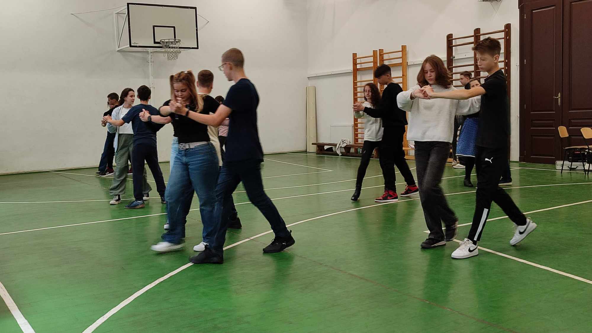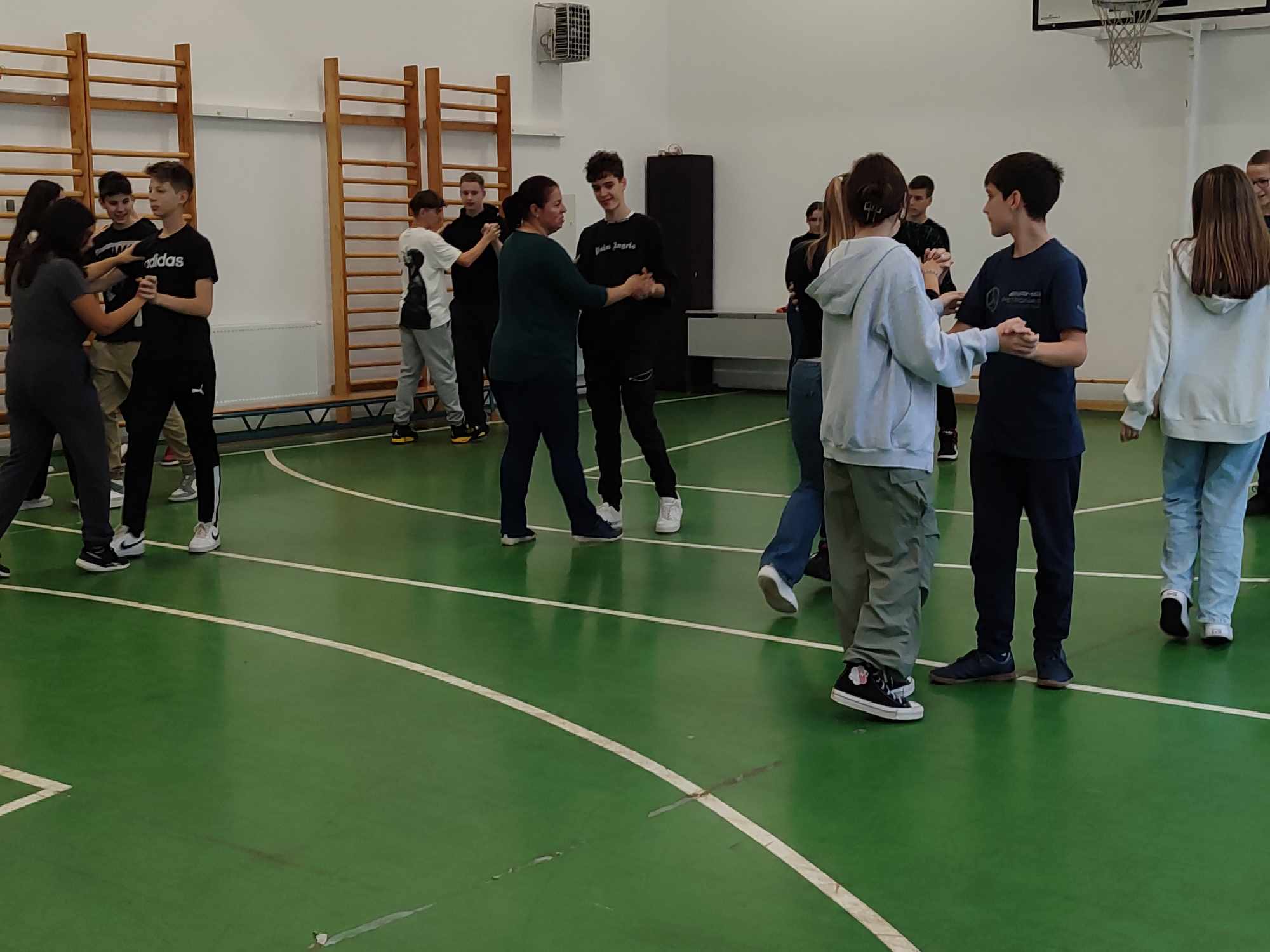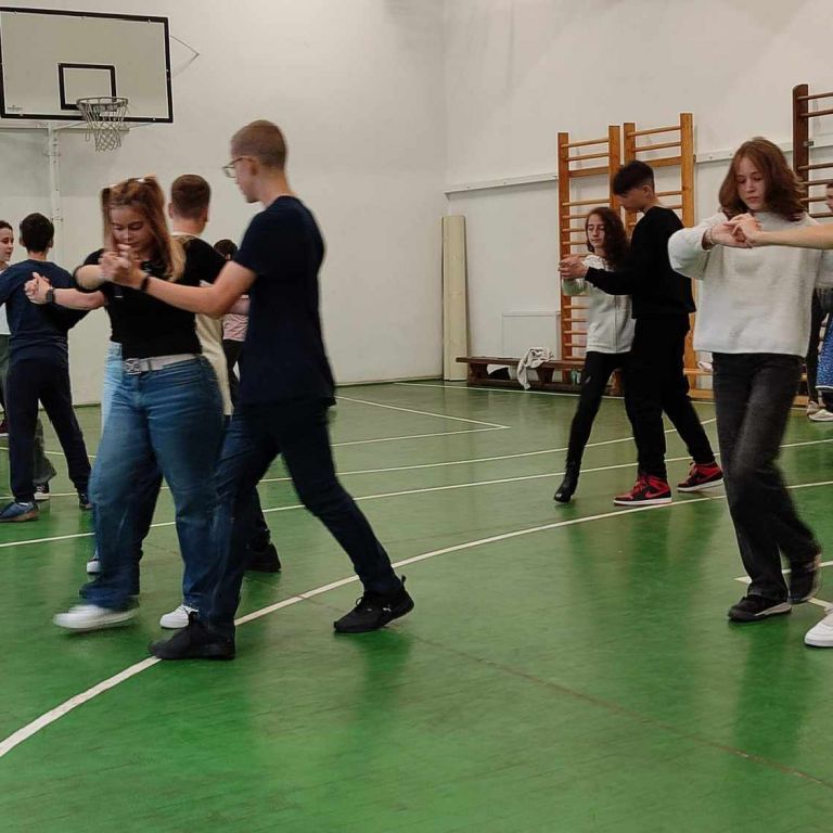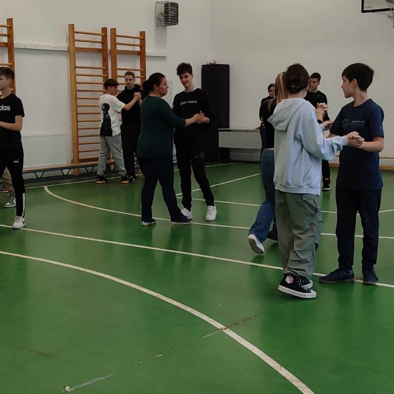 Szerdán a VIII.A osztály diákjai betekintést nyertek a társasági tánc rejtelmeibe. Buna Boglárka tanárnő vezetésével megtapasztalták, hogy milyen a helyes tartás, valamint alapvető tánclépéseket tanulhattak. Az együtt töltött két óra alatt együtt mozogtak, és megérezték azt, hogy a ritmus, a zene, a harmónia igazán közösségépítő tevékenység.