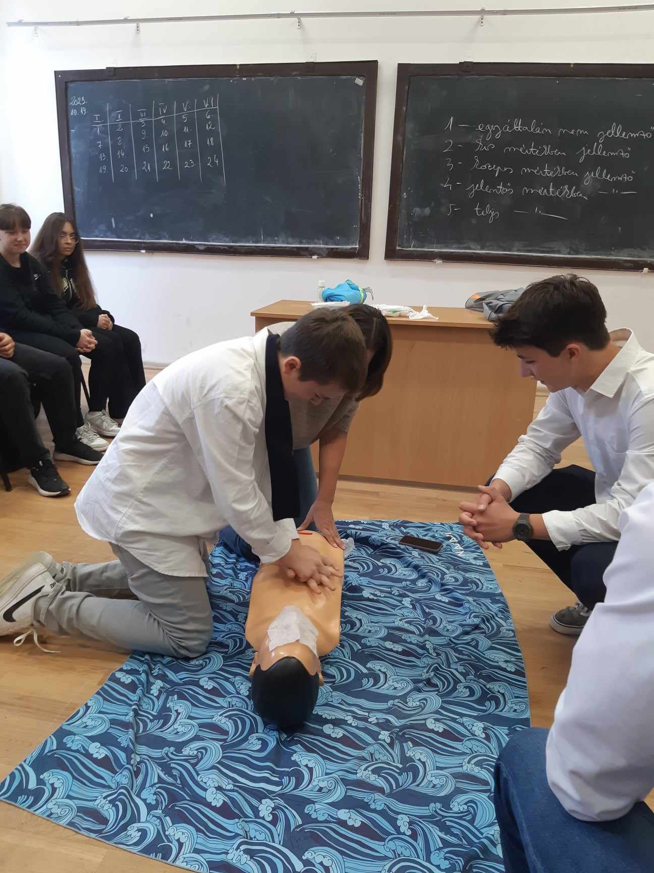 Végül lehetőség nyílt, hogy megtanulják és kipróbálják az újraélesztést. Rá kellett döbbenni, mennyire nehéz és megerőltető ez a folyamat.