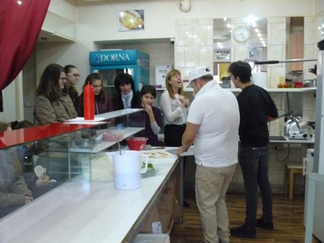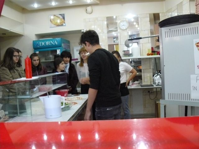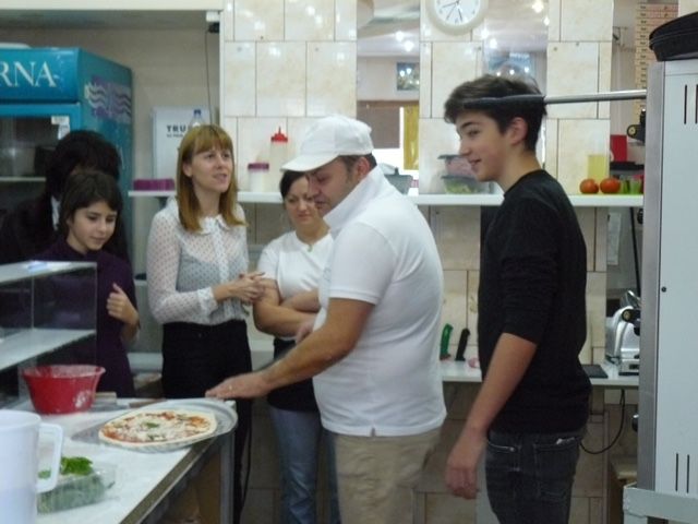 Koszta Gyöngyi és Kirkósa Enikő tanárnők kíséretével a diákok ellátogattak a Nagysándor József utcán lévő Nana’s Pizza “trattoria”-ba. Itt tudomást szereztünk többek között arról, hogy az első pizza feltéte bazsalikom, mozzarella és paradicsomszósz volt, így utalva az olasz zászló színeire (zöld, fehér és piros). Továbbá alkalom nyílt arra is, hogy saját kezűleg elkészítsenek több pizzát is, így például a prosciutto crudo pizzát, a calzone-t és azt is megtudtuk, hogy Olaszország pizzázóiban ünnepekkor is odafigyelnek, hogy valami különlegeset nyújtsanak vendégeiknek. Például Valentin nap alkalmával