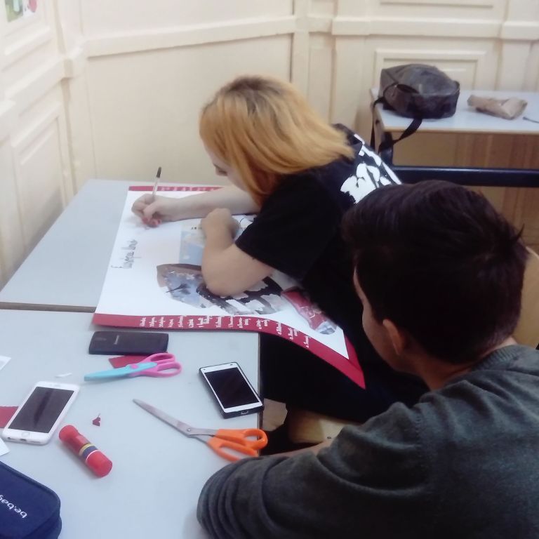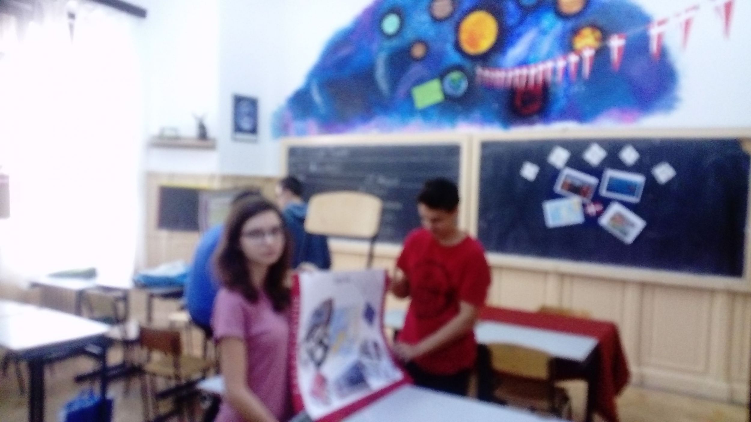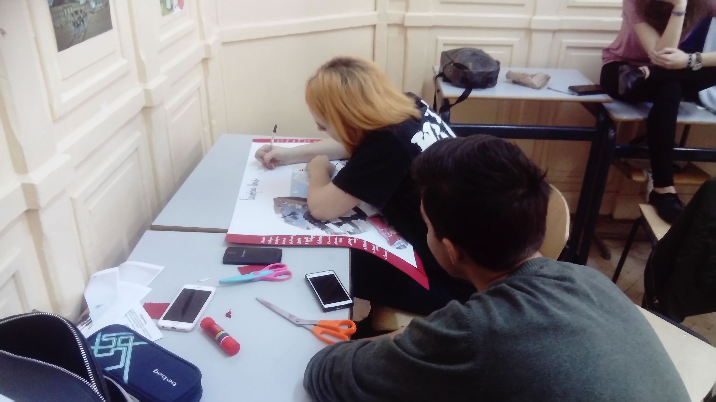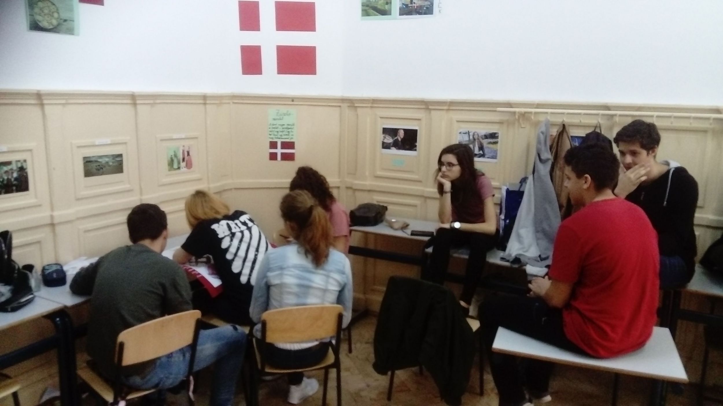 A 10.C-s diákok, miután előző nap megbeszélték és kielemezték a látottakat, hallottakat, elkészítették az osztály közös plakátját. Röviden a lényege, az alapgondolata a plakátnak: Európa nagyon sokszínű, változatos kultúrájú népek hazája, ahol a demokratikus berendezkedés minden ország alapjellemzője, s igy megvalósul egyfajta egység a sokszínűségben. A gyerekek 11 és 12 óra között leadták szavazataikat, míg a tanárok ugyanekkor végigjárva az osztályterméket szintén szavaztak. Hát kívancsian várjuk az eredményeket!... :)