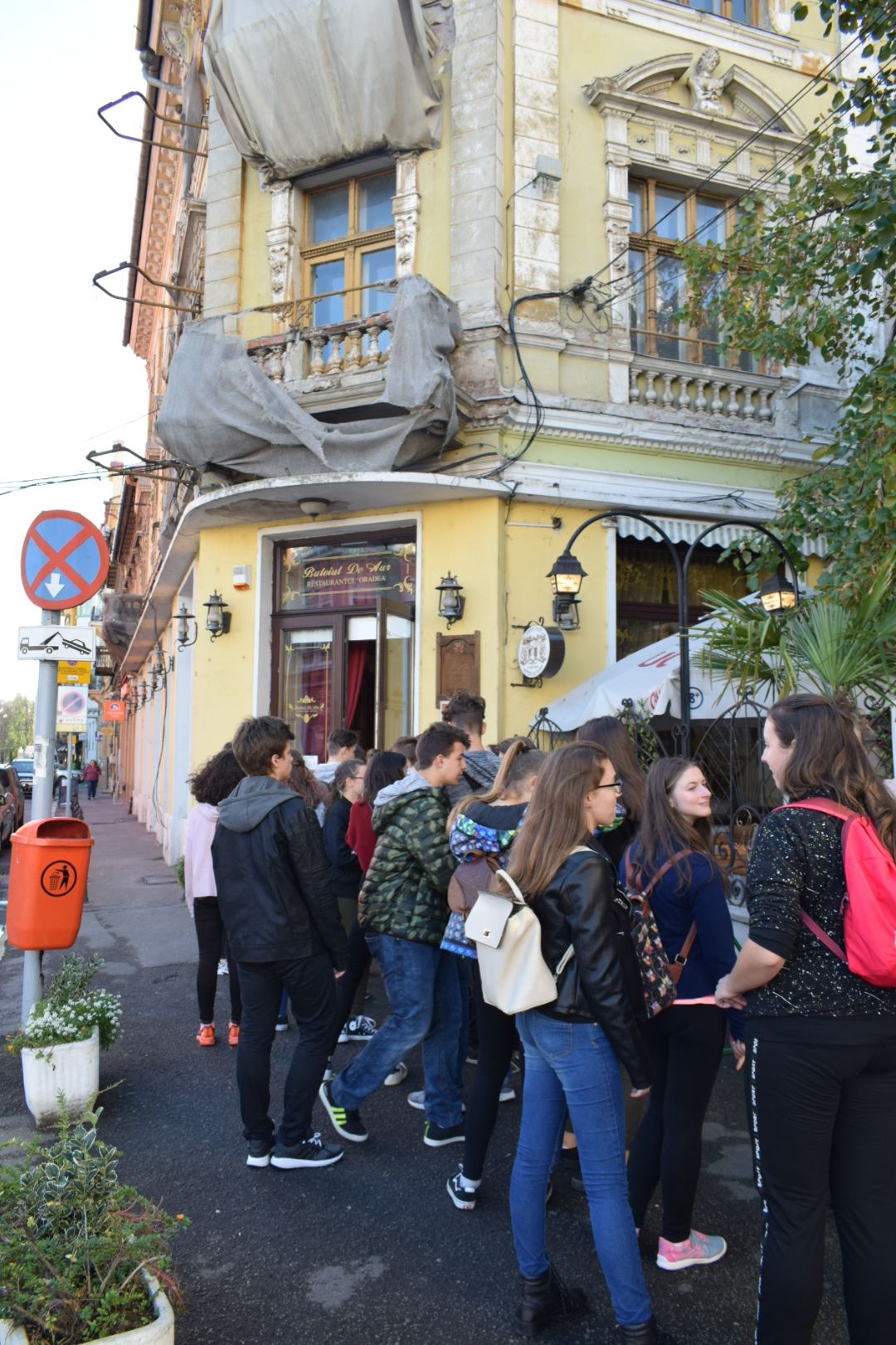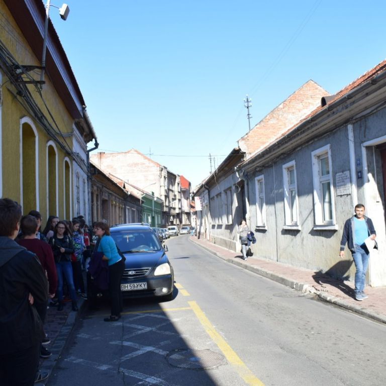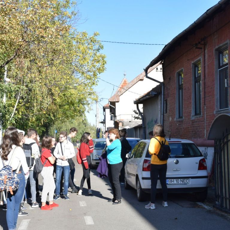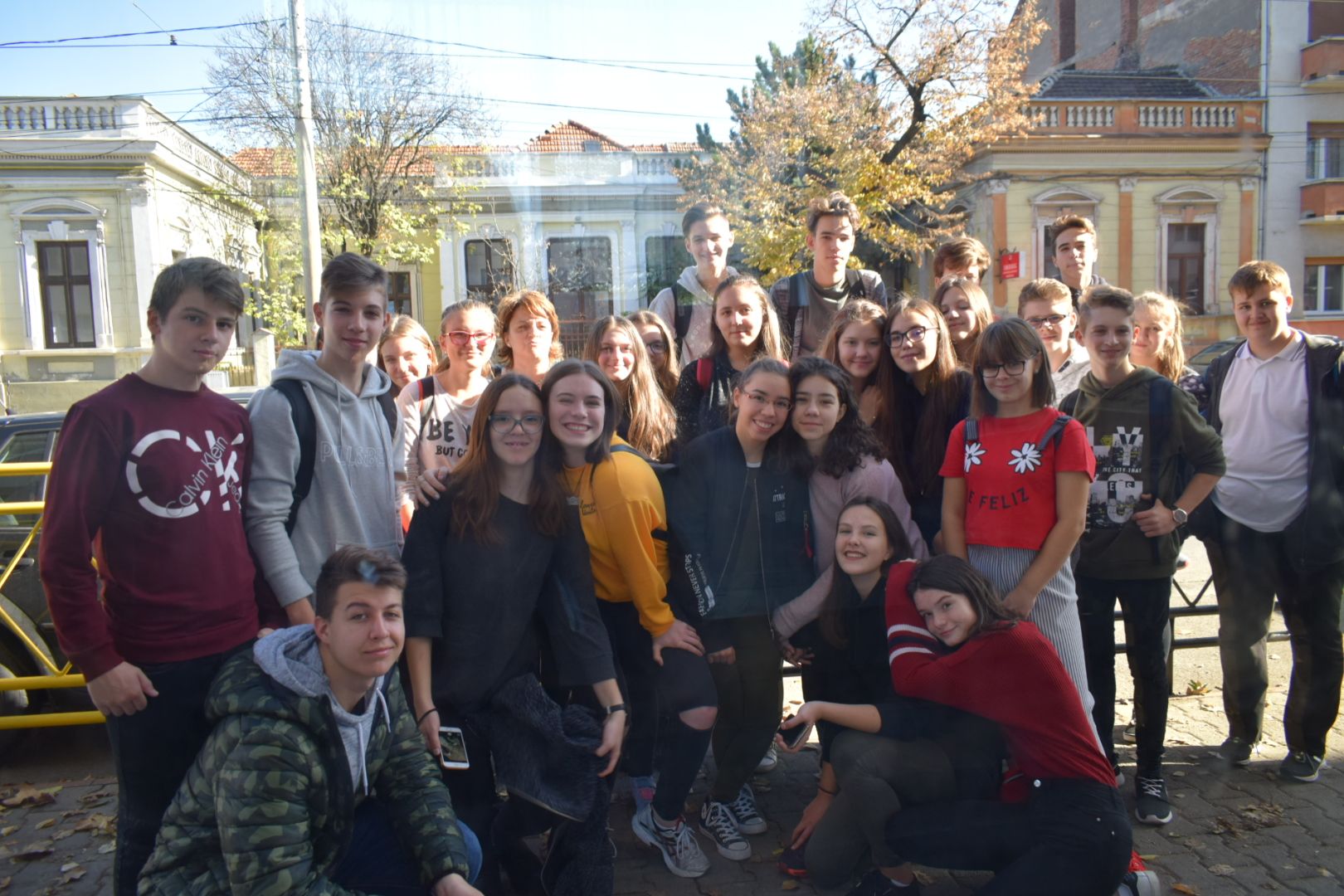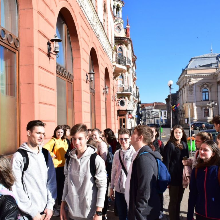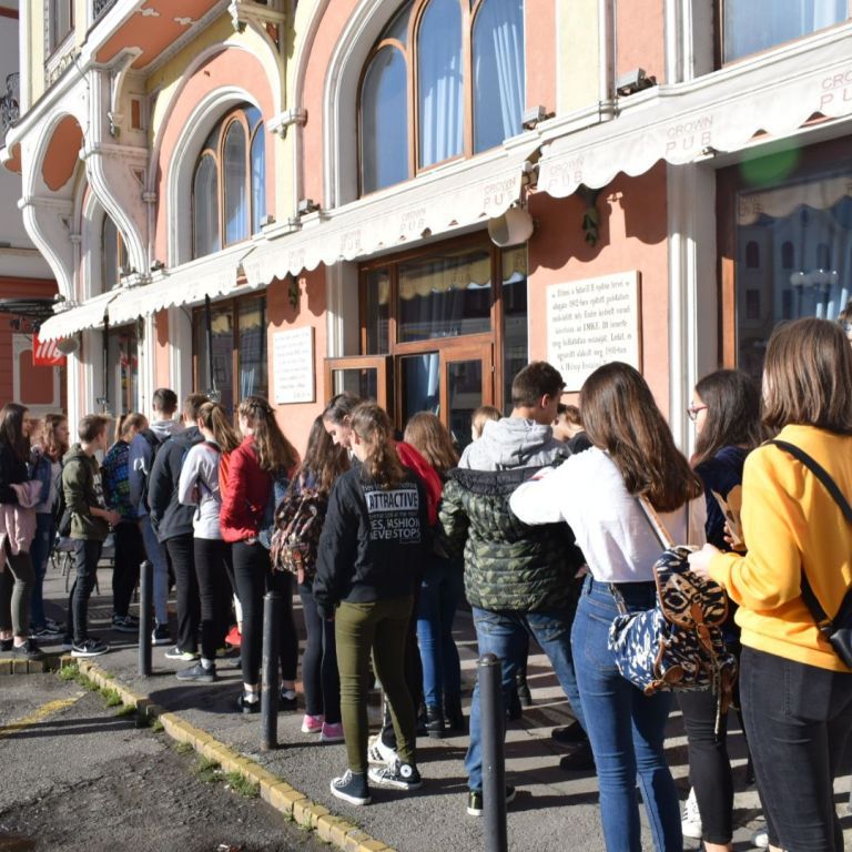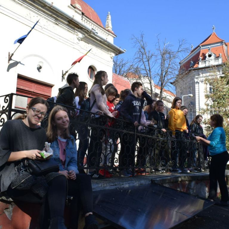 A hétfői napot a 9.E osztály az iskolában kezdte, ahol a közelgő Gólyabál táncainak átismétlése történt, majd a már hetek óta tartó Ady-projekt folytatásaként Ady-sétán vett részt. Megismerkedtünk azokkal a helyszínekkel, amelyek Ady számára fontosak voltak abban a néhány évben, amíg Nagyváradon tartózkodott. Az EMKE kávéház, a Nagyváradi Napló szerkesztősége, a ház, melyben szobát bérelt, majd a valamikori Royal kávéházba is bekérezkedtünk, ahol a váradi szecesszióról is beszélgettünk. Ezután a Mülleráj következett, ahol Deák Bernadett elszavalta a Fölszállott a páva című Ady-verset. Végül elsétáltunk a Léda-házig. Visszaérve az iskolába folytatódtak a jó hangulatú táncpróbák.