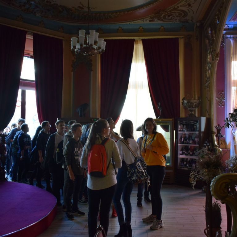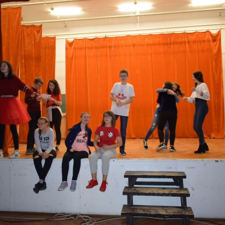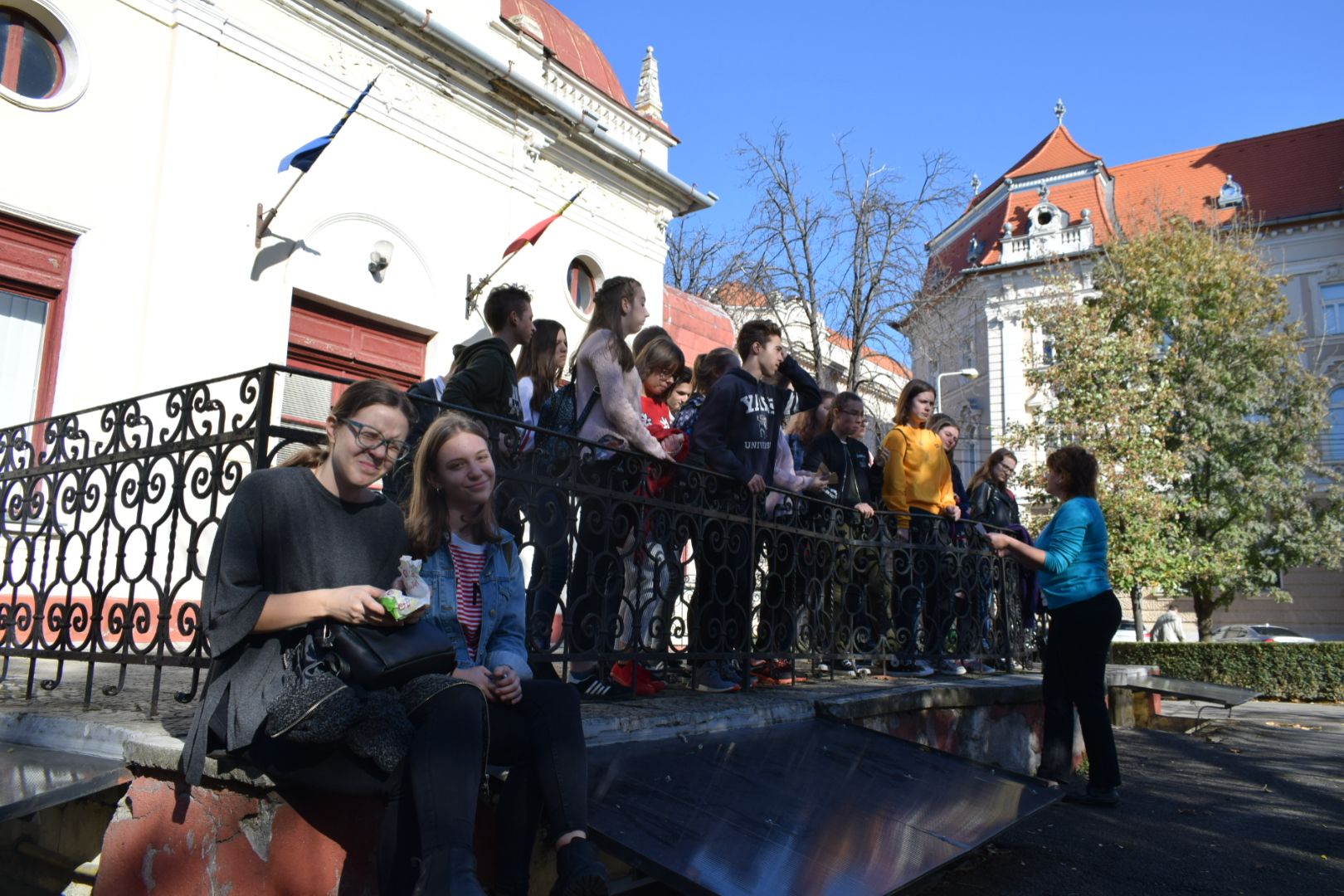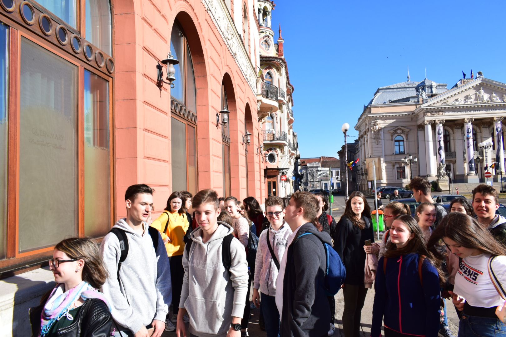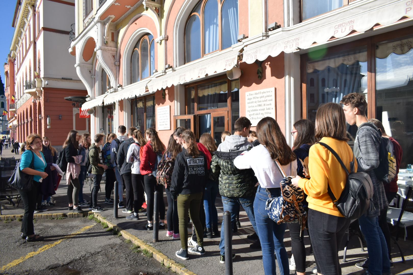A hétfői napot a 9.E osztály az iskolában kezdte, ahol a közelgő Gólyabál táncainak átismétlése történt, majd a már hetek óta tartó Ady-projekt folytatásaként Ady-sétán vett részt. Megismerkedtünk azokkal a helyszínekkel, amelyek Ady számára fontosak voltak abban a néhány évben, amíg Nagyváradon tartózkodott. Az EMKE kávéház, a Nagyváradi Napló szerkesztősége, a ház, melyben szobát bérelt, majd a valamikori Royal kávéházba is bekérezkedtünk, ahol a váradi szecesszióról is beszélgettünk. Ezután a Mülleráj következett, ahol Deák Bernadett elszavalta a Fölszállott a páva című Ady-verset. Végül elsétáltunk a Léda-házig. Visszaérve az iskolába folytatódtak a jó hangulatú táncpróbák.