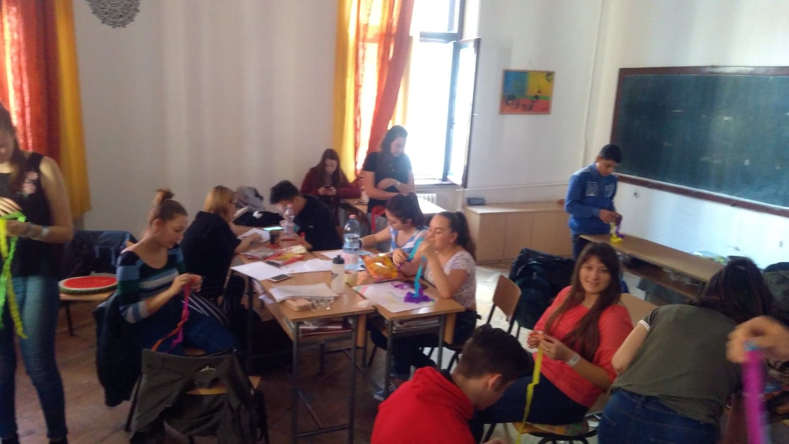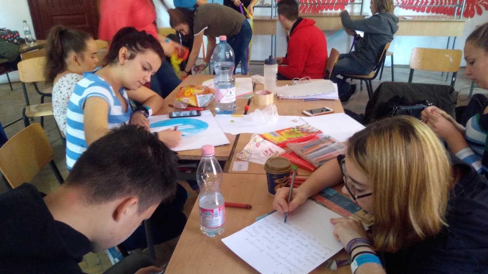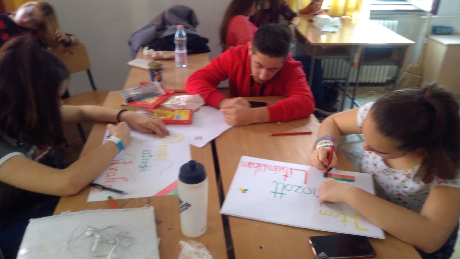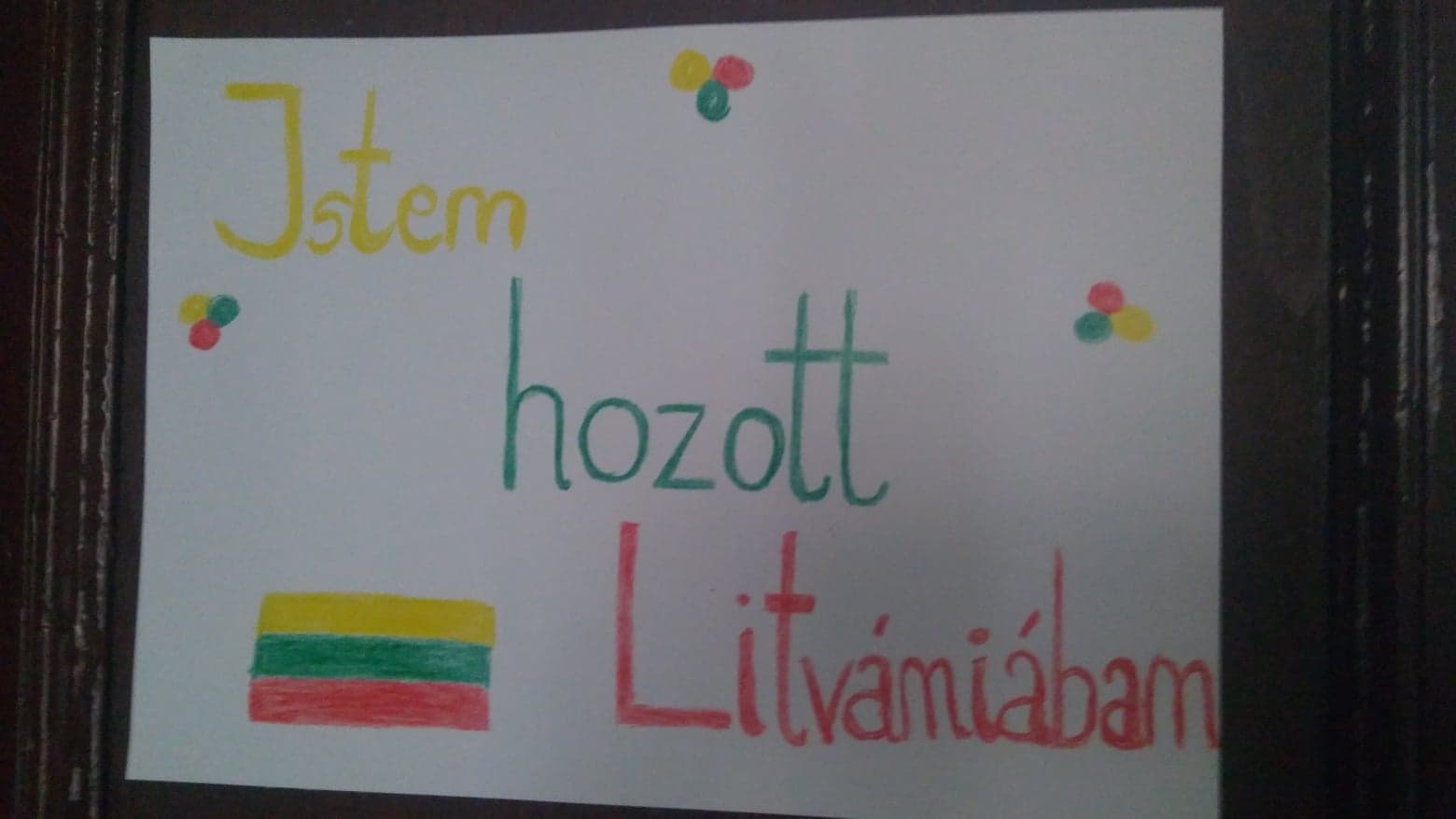 Szerdán az országbemutató előkészítése volt a feladat. Mi a sorsoláson Litvániát kaptuk, ezért megpróbáltunk egy érdekes beszámolót produkálni. Az osztály egy része PowerPoint-bemutatót készített, néhányan plakátot rajzoltak, a lányok litván néptáncot tanultak, a többiek az osztálytermet díszítették.