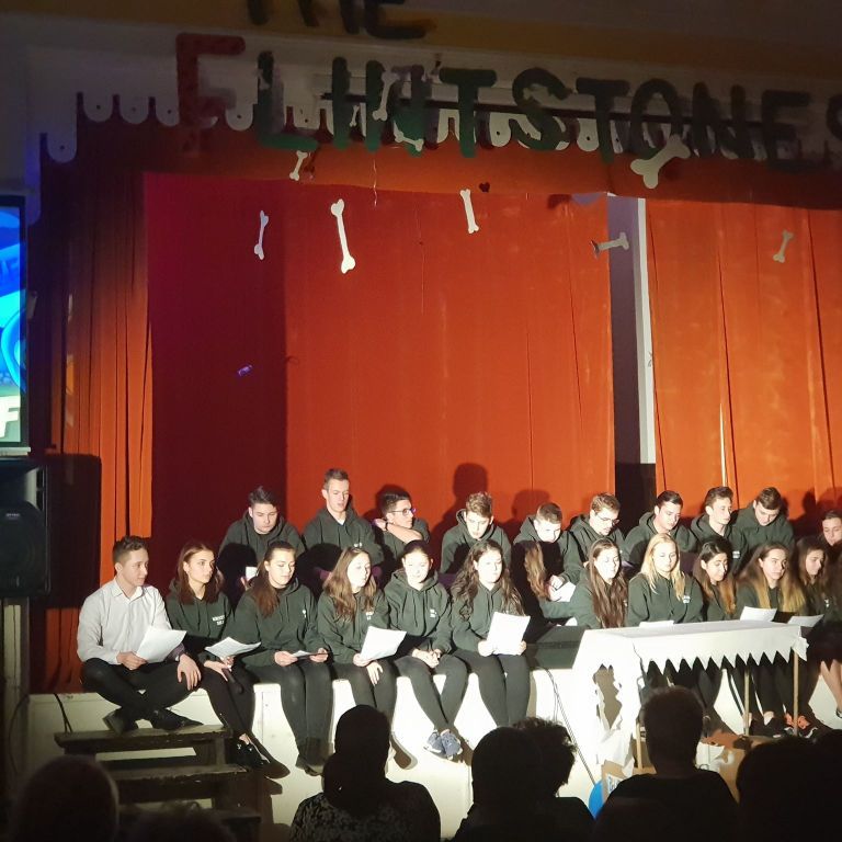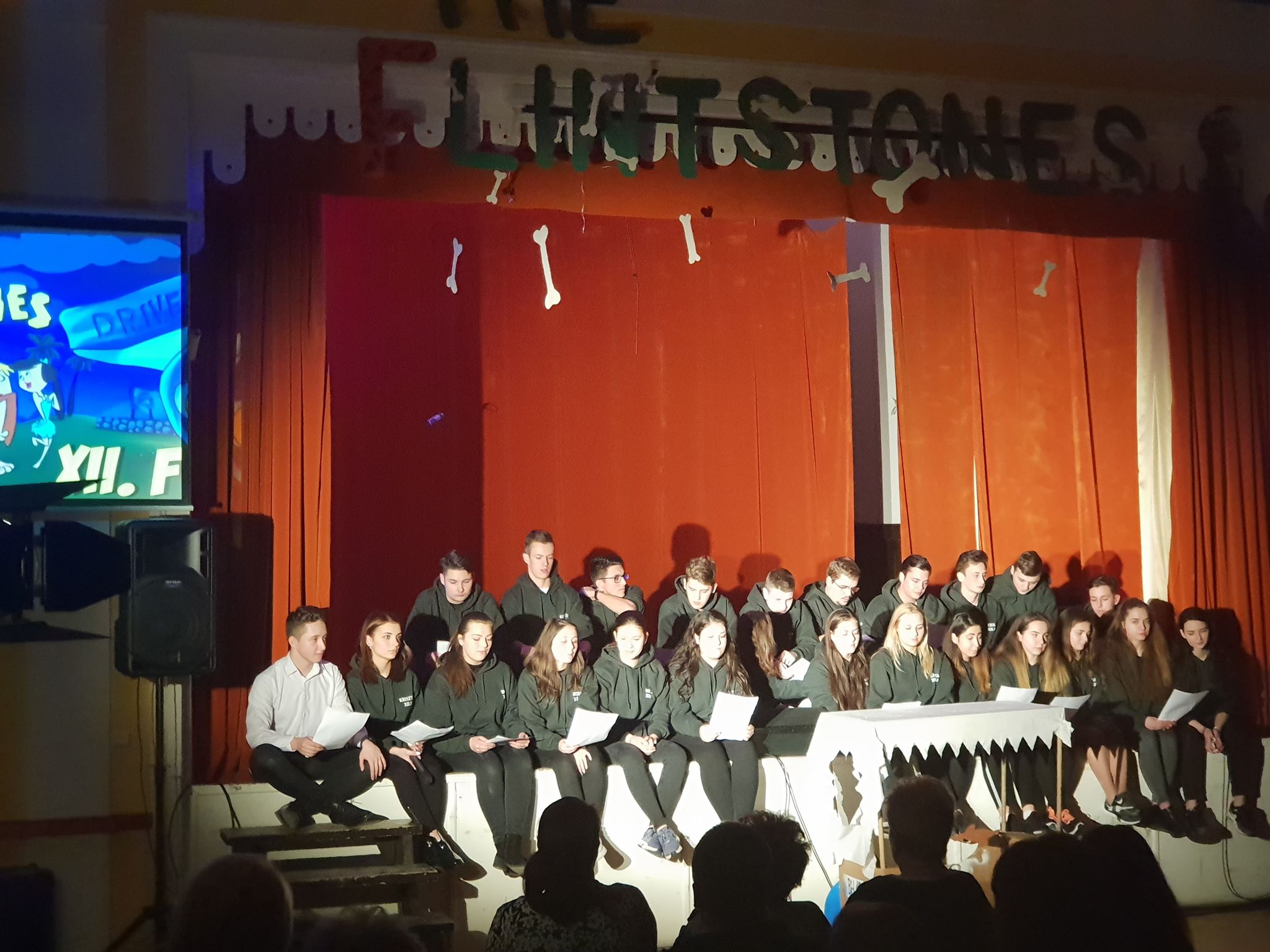 Az Ady Endre Elméleti Líceum 12.F természettudomány szakos osztálya szalagavatójának témája a Flintstone család volt. A történetük arról szólt, hogy eltűnt a munkaDÍNÓ és a kőkorszaki család eljött a jelenbe a 12.F osztályhoz, hogy segítséget kérjen a megkereséséhez (a műsor végén természetesen megtalálták).