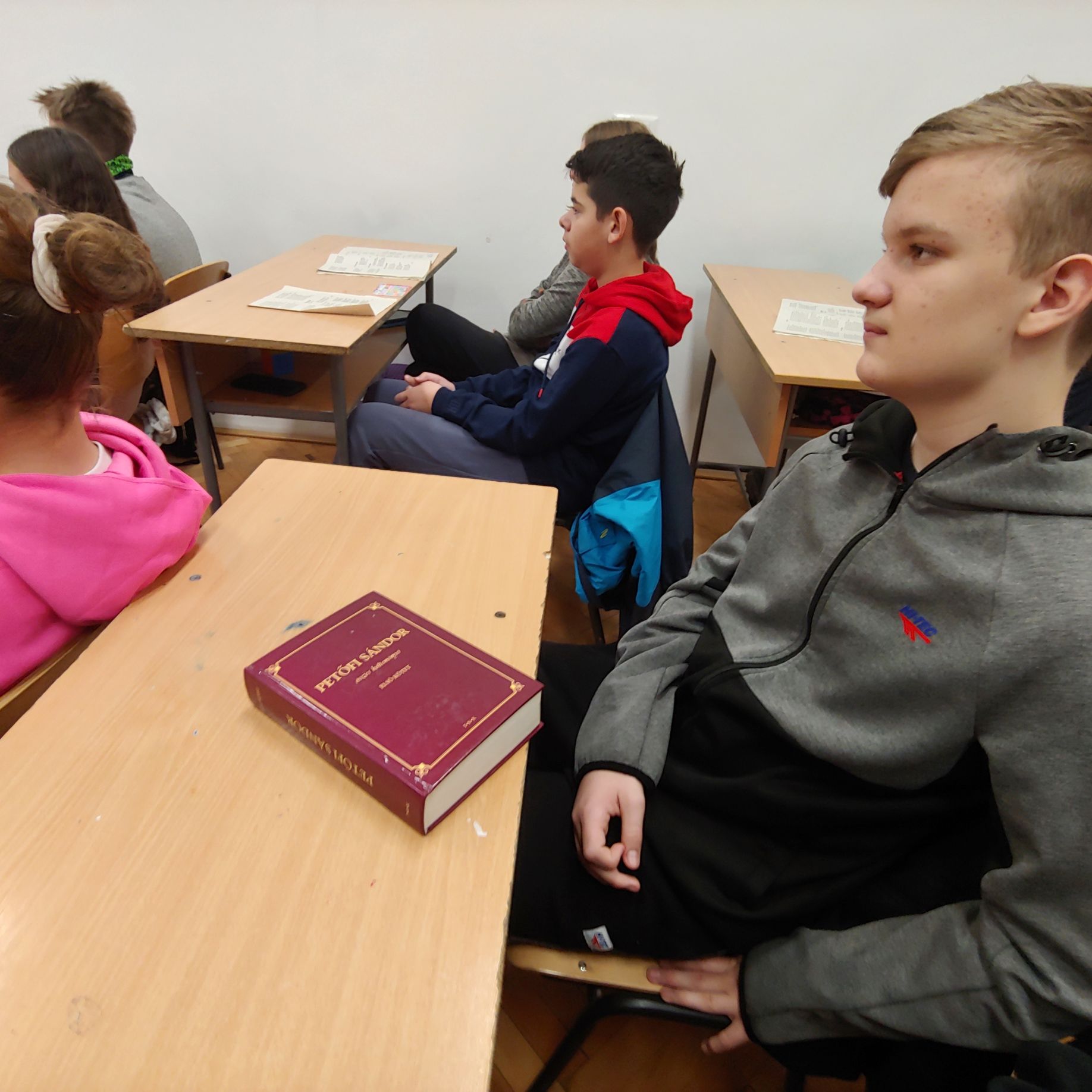 A Petőfi-hét és A magyar kultúra hete alkalmából a hatodikosok kedvenc Petőfi-verseiket hozták el magyarórára. A rendhagyó óra bevezető részében a 9.D diákjai vezették be a kisebbeket az esemény jelentőségébe, majd ajándékként elmondták kedves versüket. Ezt követte a hatodikosok versmondása, akik átvették a stafétát a nagyobbaktól, és elmondták vagy felolvasták a Petőfi-verseket. Elhangzottak többek között az Arany Lacinak, az Anyám tyúkja, a Füstbement terv, a Farkasok dala, A virágnak megtiltani nem lehet, a Fa leszek, ha..., a Reszket a bokor, mert...című versek. A diákok egy része saját kötetéből olvasta fel a kiválasztott verset, mások a telefonjukon keresték elő azokat, de voltak olyanok is, akik kívülről mondták kedvenc Petőfi-szövegüket. Kellemes élmény volt a versmondónak, ajándék a hallgatónak!