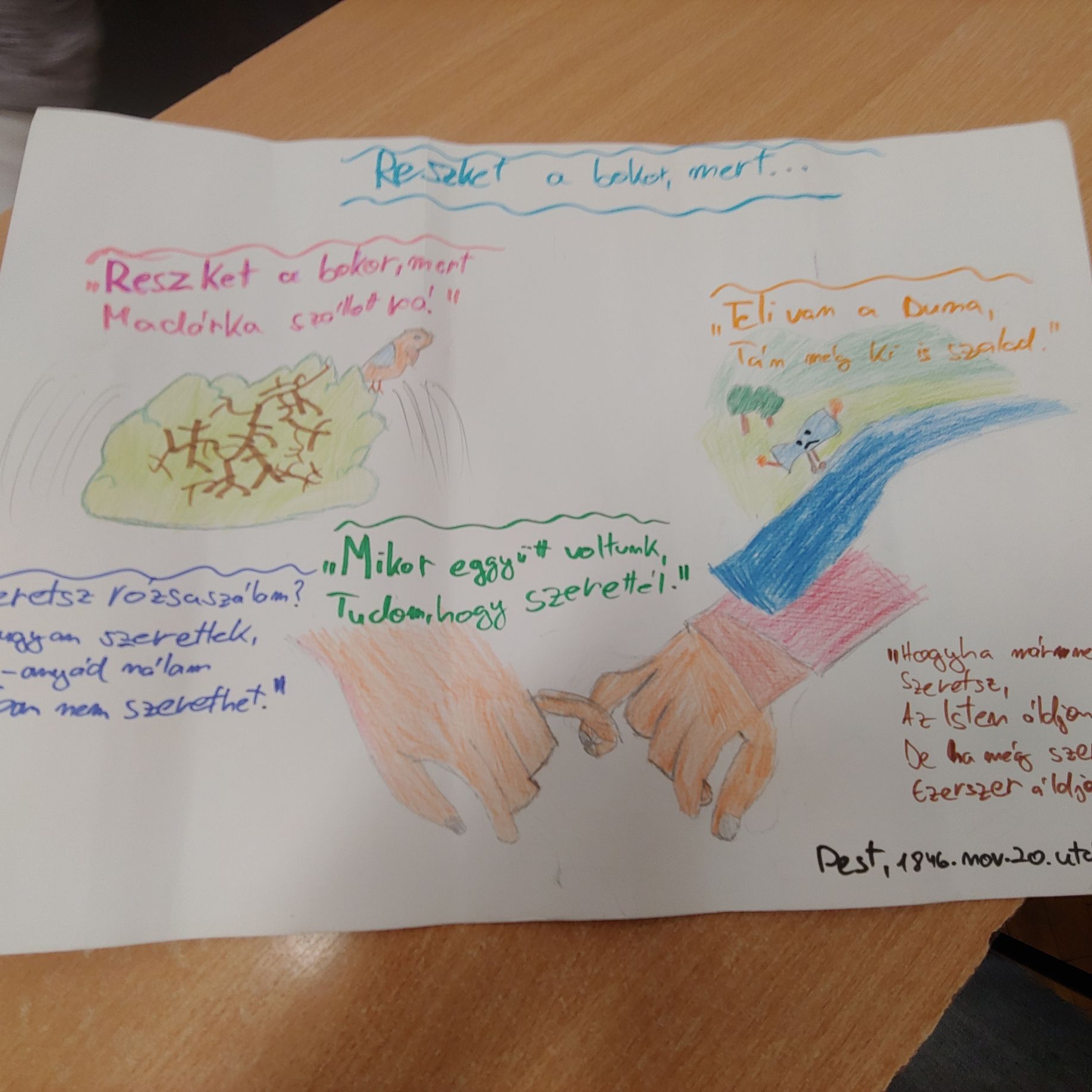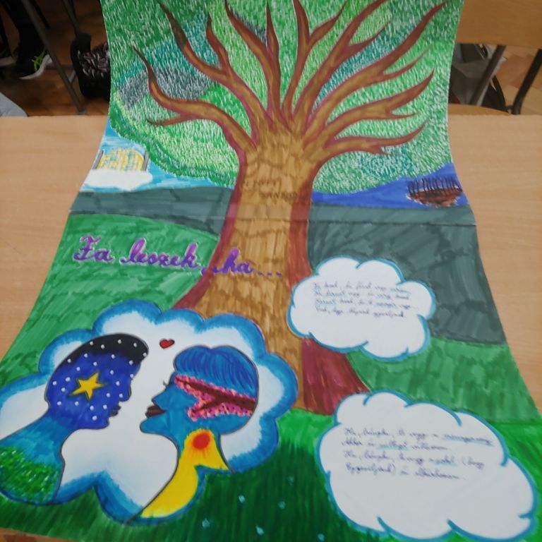 Az illusztrációk bemutatása után a Fa leszek, ha...című Petőfi-vers sorait jelenítettük meg mozgó- és állóképekben.