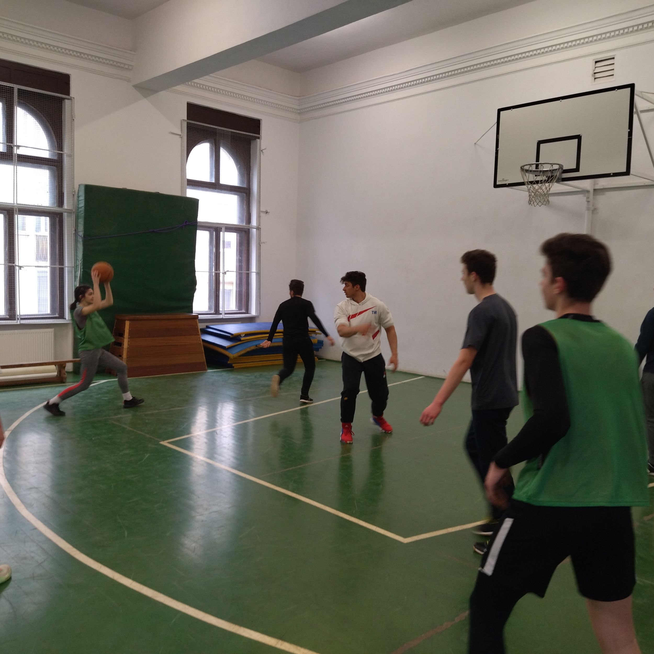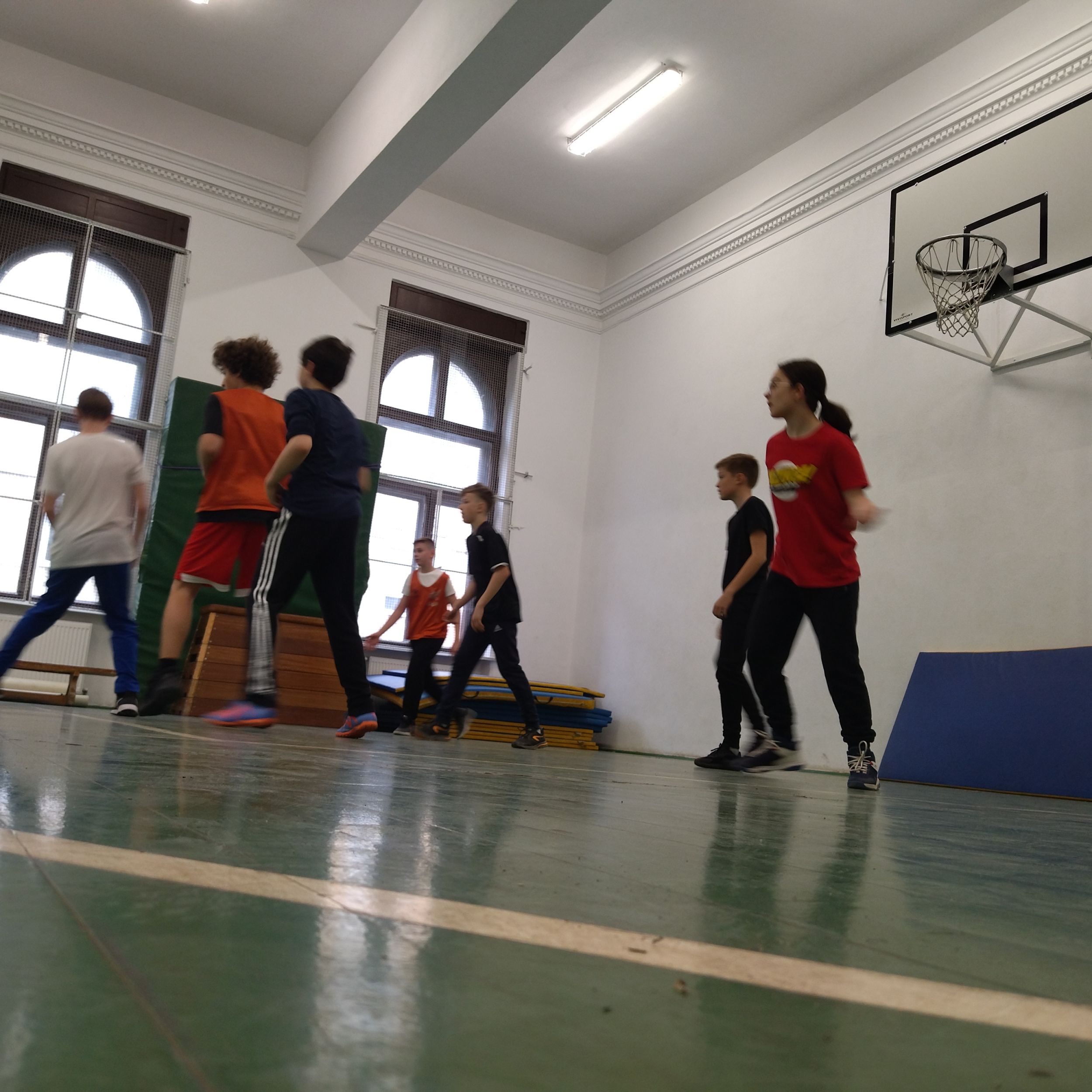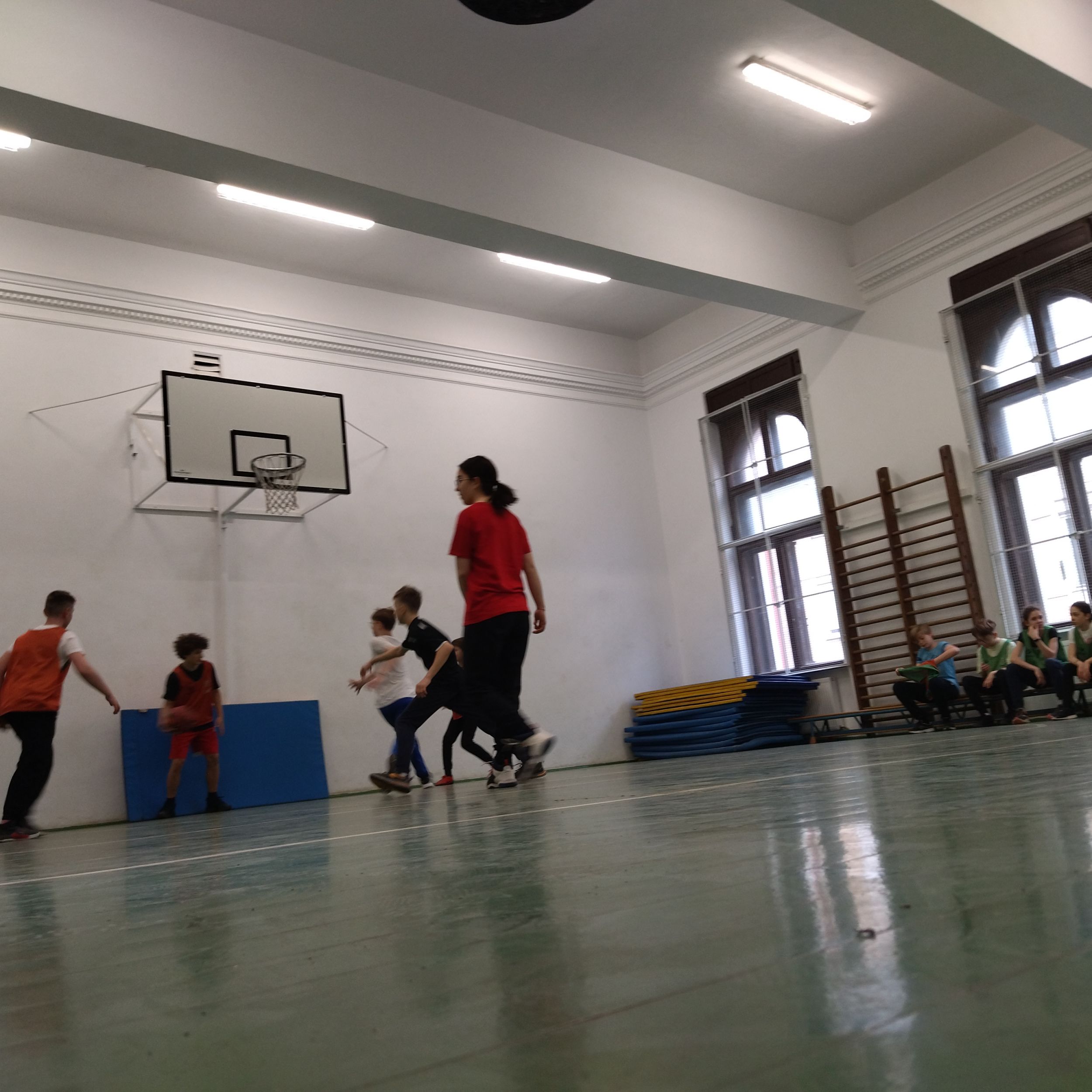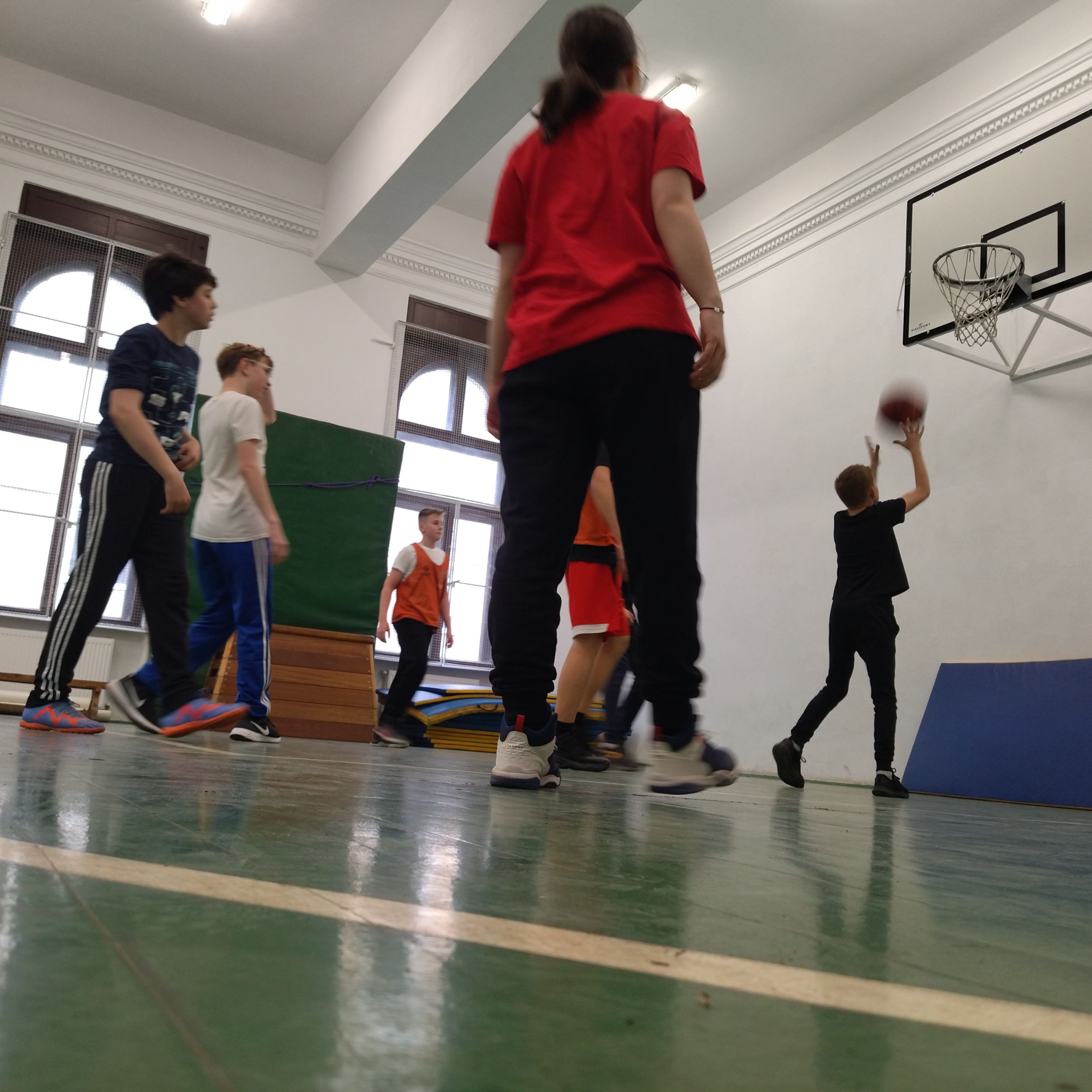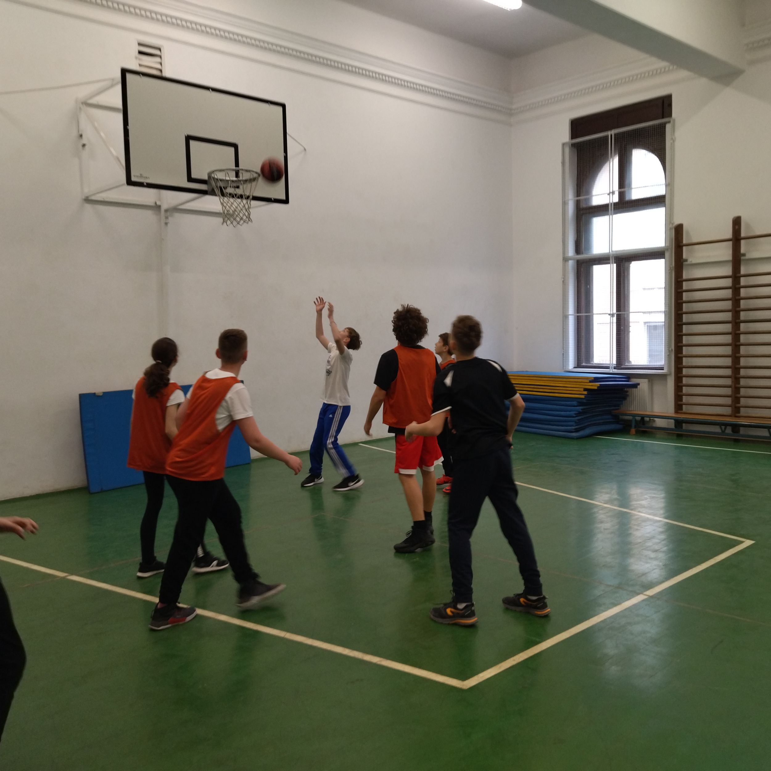 A kosárlabdát kedvelők párhuzamosan játszottak a tornateremben.