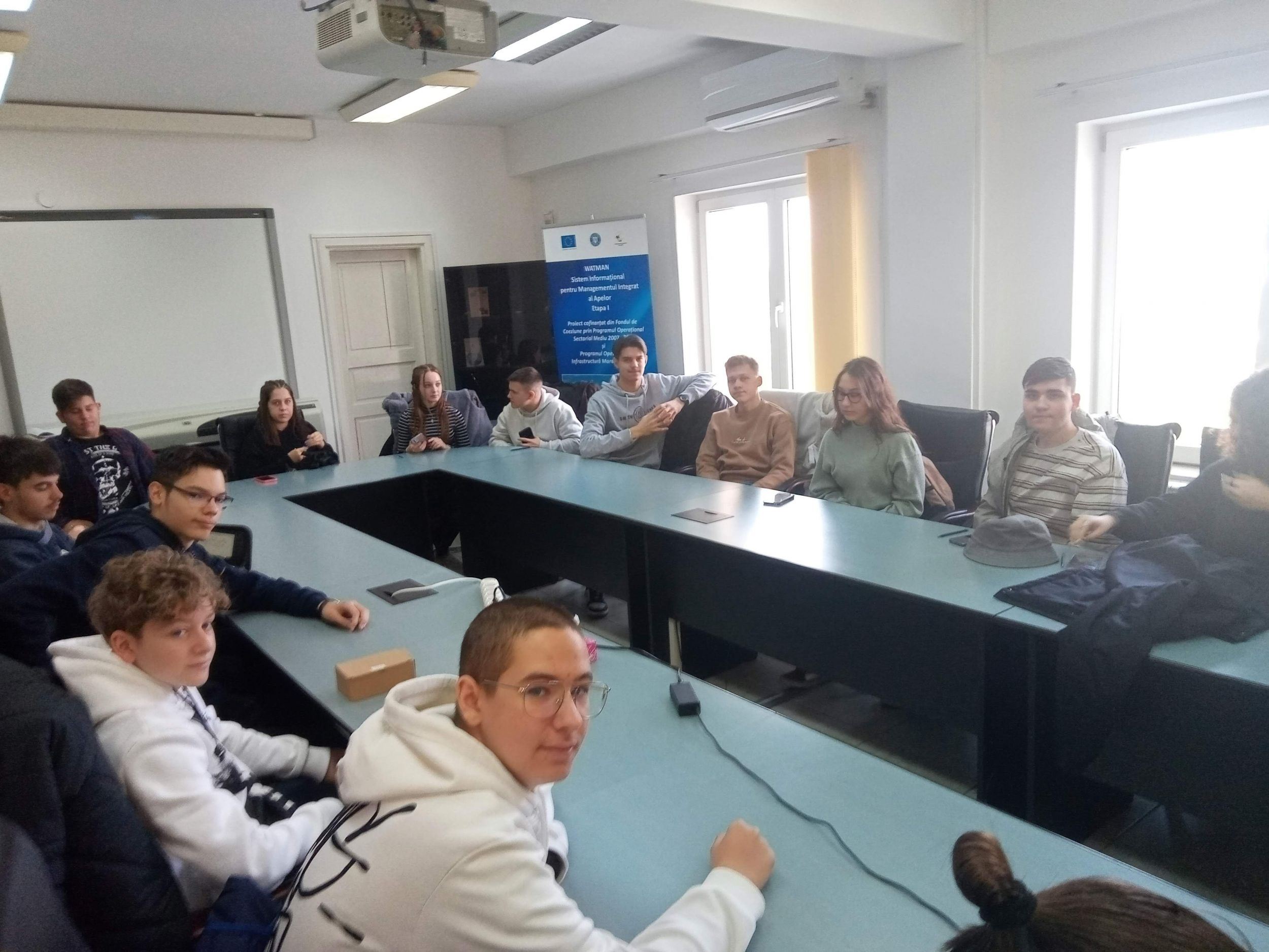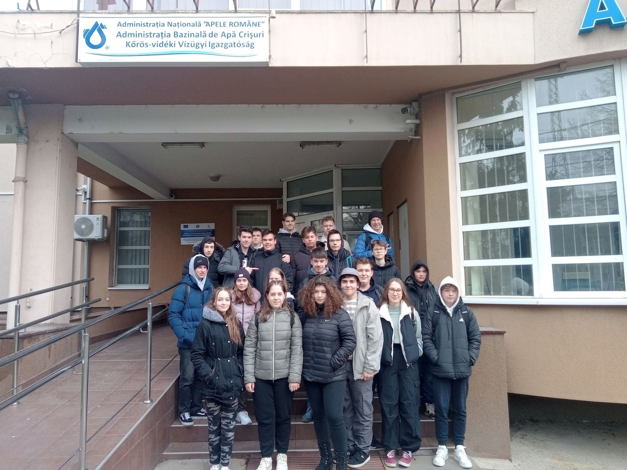 Nagyon érdekes volt. Sajnáljuk, hogy a kémiatanárnő nem volt velünk, hogy jobban elmagyarázza a látottakat. Búcsúzóul mindenki kapott egy írószert a vízügyi igazgatóság logojával. Köszönjük! ABA Crișuri = Administrația Bazinală de Apă Crișuri - ez van a logón.