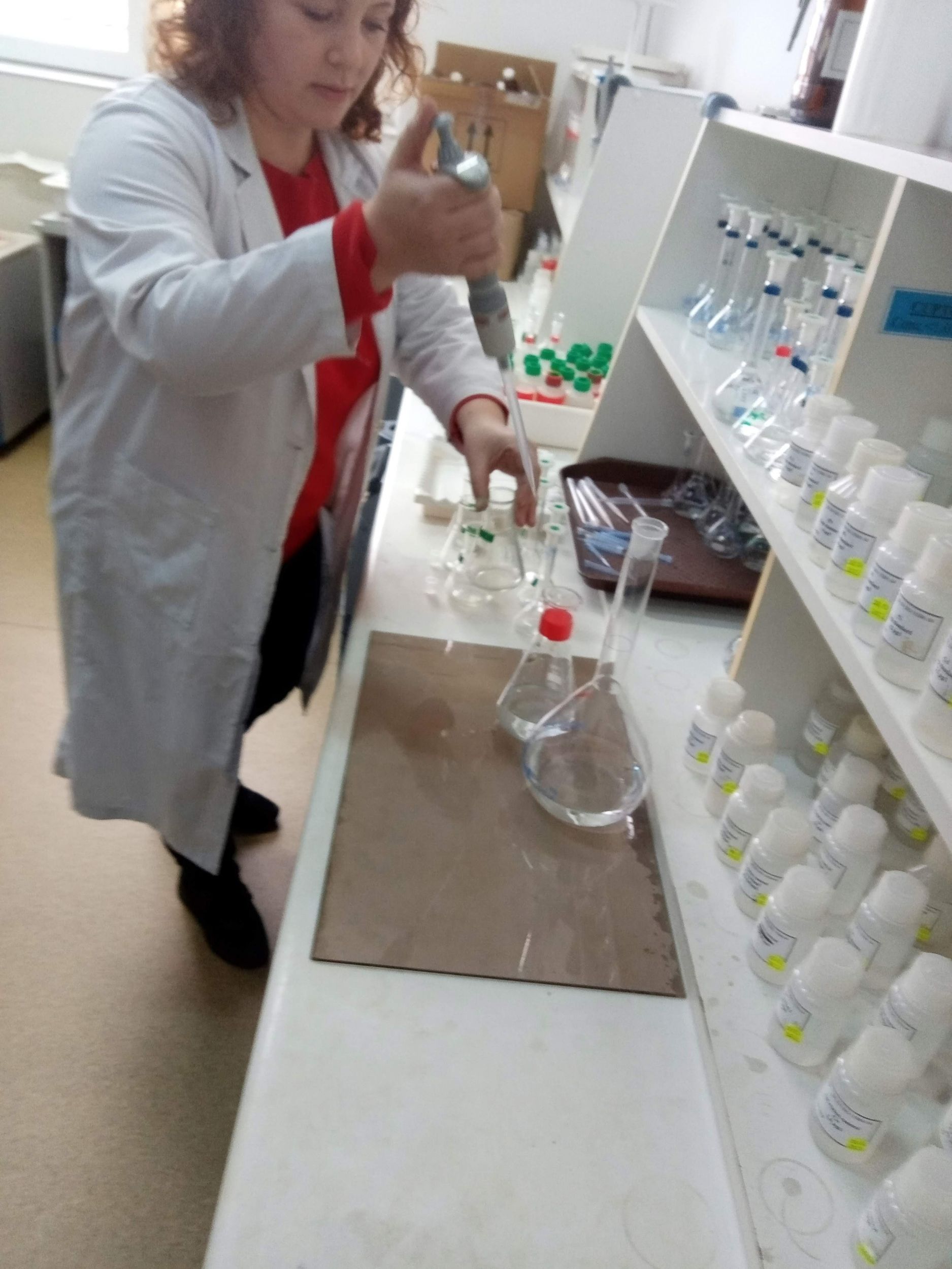 Itt a vizek szulfát-, nitrát-, oxigén- és különböző fémtartalmát vizsgálják. Megmutatták a munkafázisokat, elmagyarázták a vegyi folyamatokat, amiknek segítségével mindezt vizsgálják. Bemutattak egy állítható pipettát, melyet ki is próbálhattunk. Megtudtuk, hogy a titrálást már automatizálva végzik. Mi is megvixsgálhattuk a vizek PH-ját. A fémszennyeződések kimutatását kemencés, illetve acetilénes nyílt lángos módszerrel végzik, melyet be is mutattak nekünk, majd egy számítógépes program dolgozza fel az adatokat.