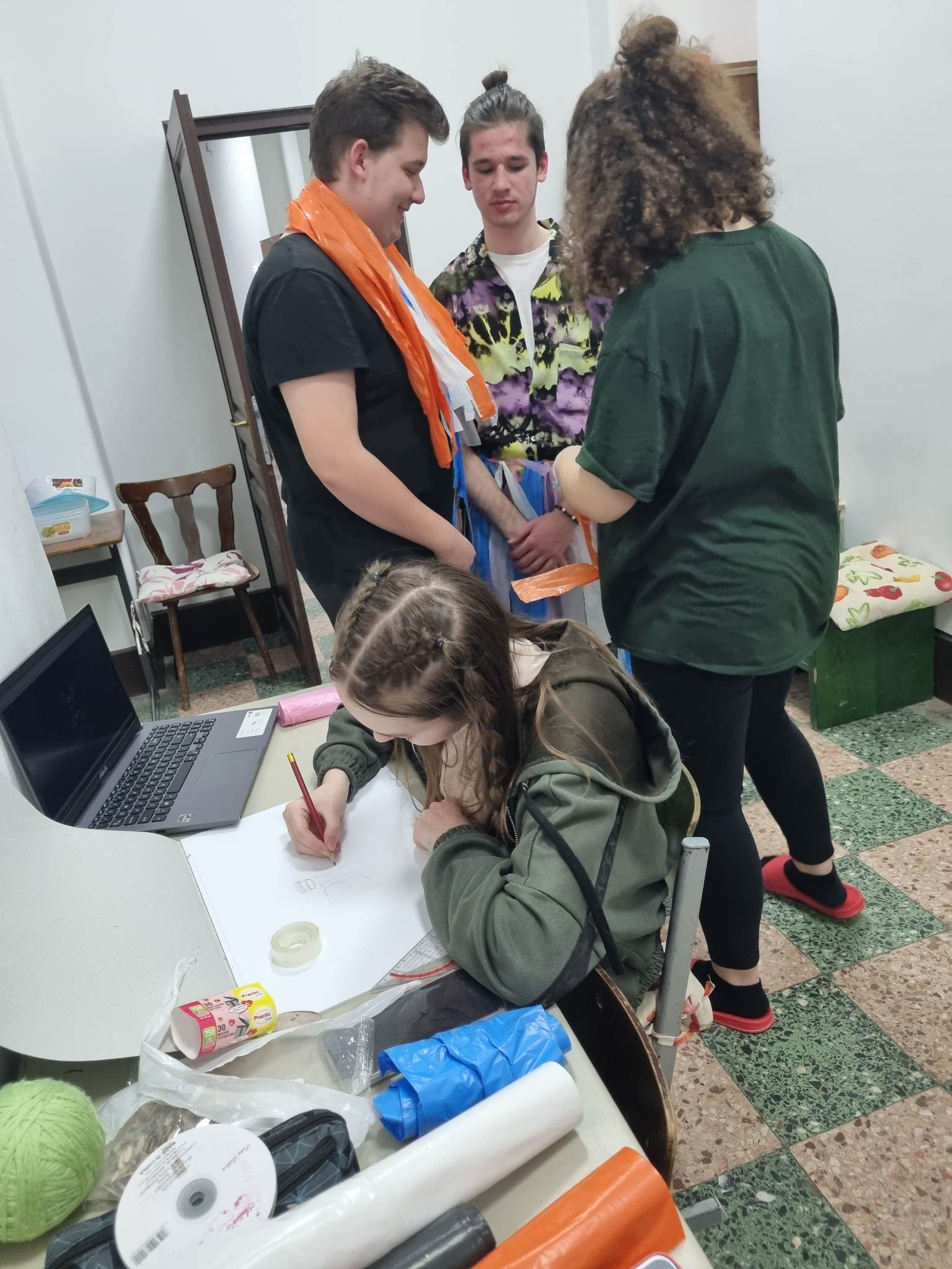 Elérkeztünk a Zöld hét záró napjához. A bentlakó diákok felvállalták a hulladékből készült ruha tervezését és kivitelezését. A legjobb időtöltés az alkotás, ez látszik a képeken is. A jó hangulat nem maradt el. Petri Patrick önként jelentkezett manökennek, hogy bemutassa a ruhakölteményt – köszönjük neki. Az osztály többi része pedig részt vett a divatbemutatón. Remélem, mindenki számára jól telt ez a hét, jól szórakozott, és azért megismert olyan dolgokat, melyekkel eddig nem találkozott.