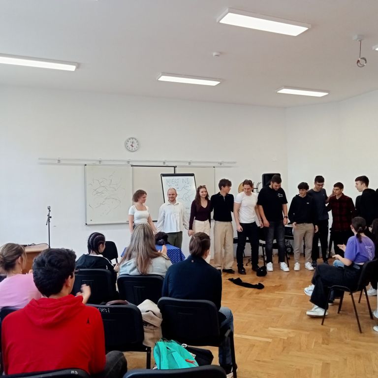 Március 12-én, szerdán vendégül láthattuk Molnár Bence szabadúszó színművészt, aki Petőfi Sándor nagyszerű vígeposzát, A helység kalapácsát adta elő iskolánk diákjainak meglehetősen sajátos, humoros feldolgozásban. Diákközeli, interaktív előadásmódja magával ragadta nézőközönségét. A gyerekek partnerek voltak a színészi játékban, melyet végül vastapssal jutalmaztak. Az előadáson iskolánk 9.A, 9.B, 10.E, 11.D, 12.E osztályainak diákjai vettek részt.