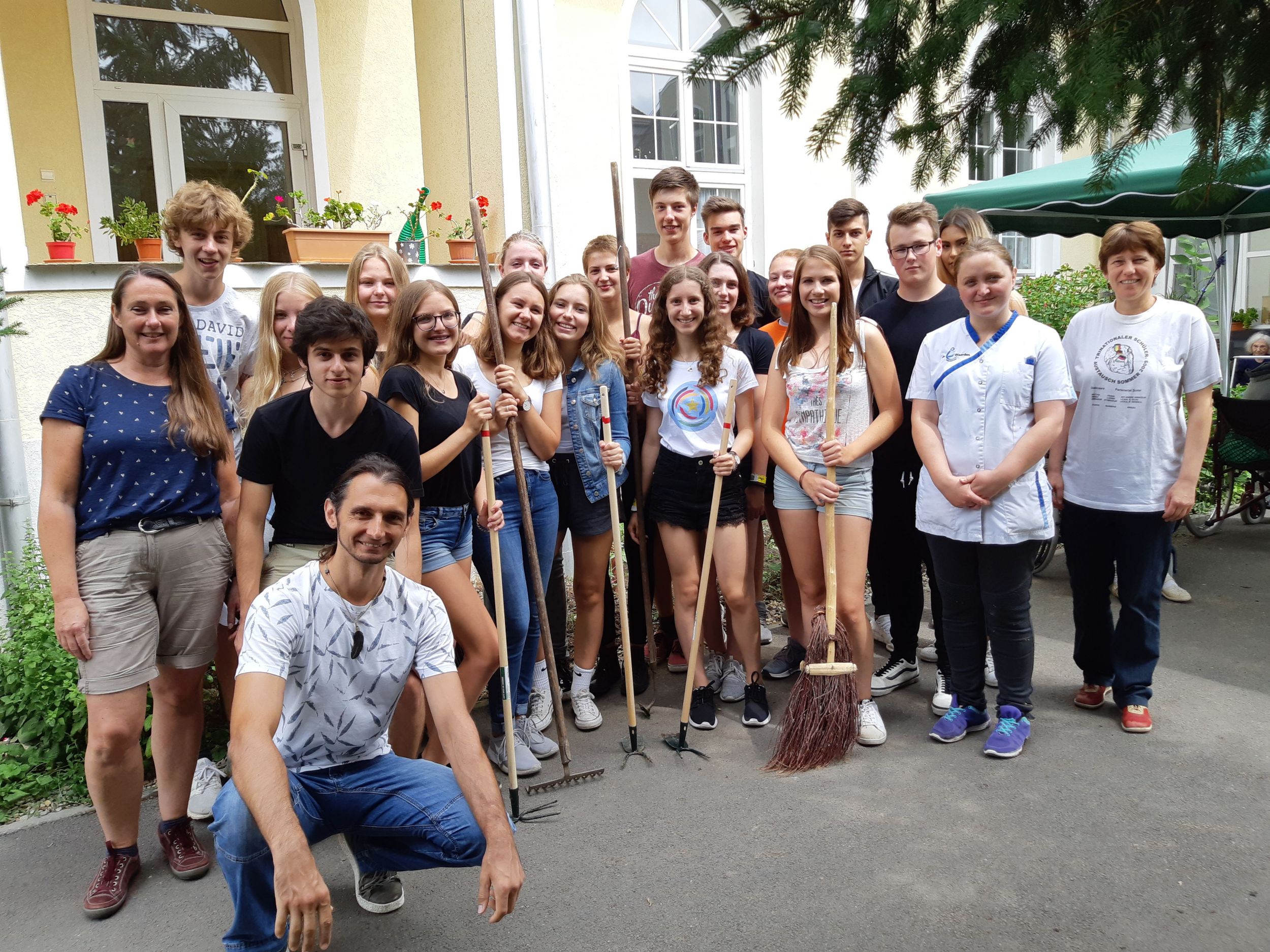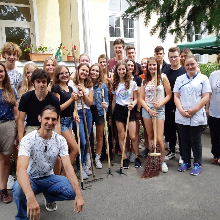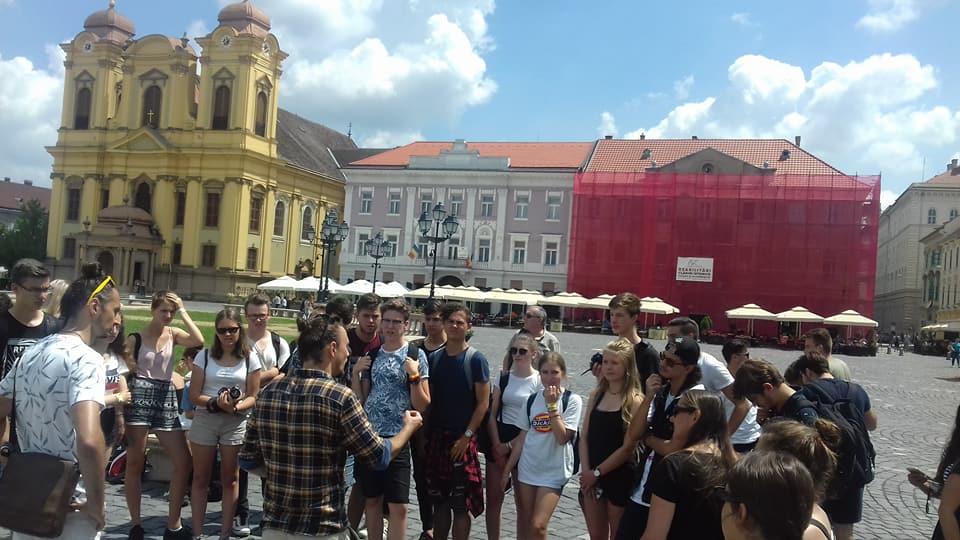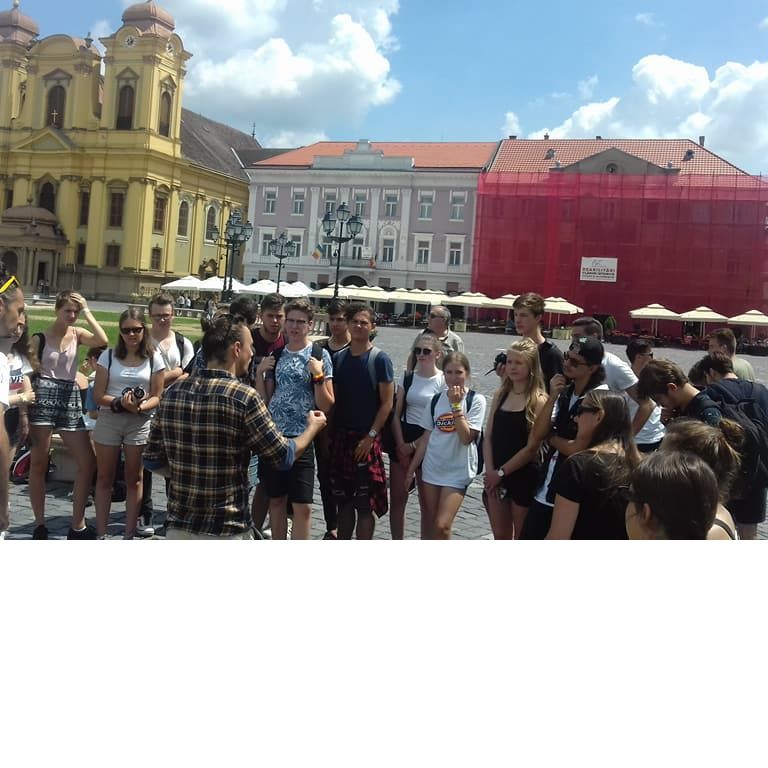 A németek július 10-én, reggel érkeztek meg hozzánk. Elszállásolásuk után a német csoport fogadására került sor az iskolában, amelyen részt vett Makai Judit tanárnő is, aki elindította a cserediák programot. Ezután interaktív városnézés következett, ahol csoportos feladatokat teljesítvén fedezhettük fel városunkat. Másnap egész napos kirándulást szerveztek nekünk Temesvárra, amit mi is legalább annyira élveztünk, mint a németek. Csütörtökön a cserediákjaink a Caritasnál segédkeztek kertszépítésben és egyéb munkálatokban, délután pedig Székelyhídra látogattunk el, ahol sportdélutánon vehettünk részt, megtekinthettük a Petőfi Sándor Elméleti Líceumot és a székelyhídi árvaházat. Utolsó napunkon mi szerveztünk programokat a németeknek, amiben többek között medencézés, strandolás, sütögetés és városnézés is szerepelt. 8 órától búcsúestén vettünk részt az iskolában, hangulatos vacsorával és tortával koronázva meg a programot. A németek könnyes búcsú után éjfél körül indultak haza, ám nekik nem értek ezzel véget a kalandok, hiszen a visszafelé úton pár napra Budapestre is ellátogattak.