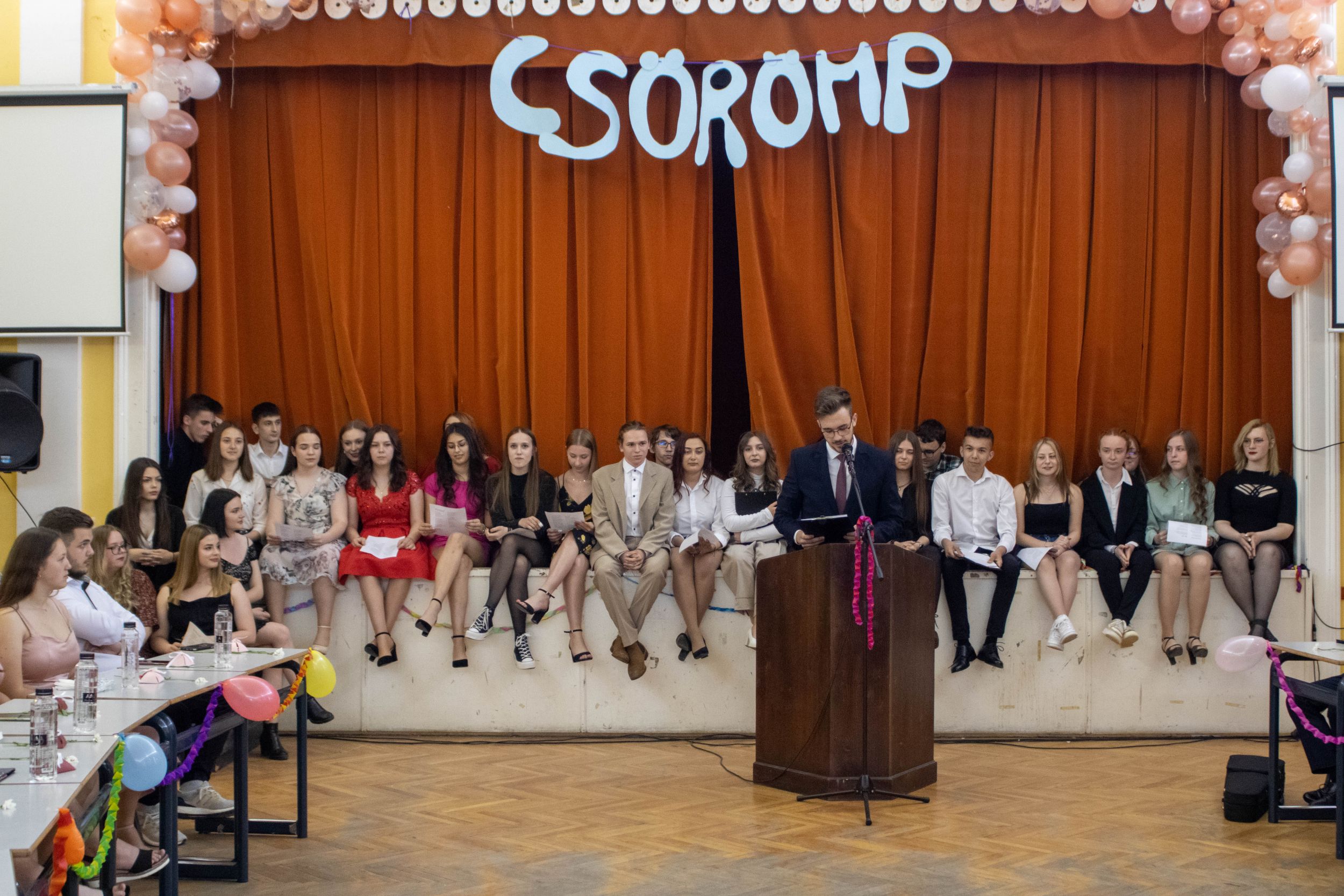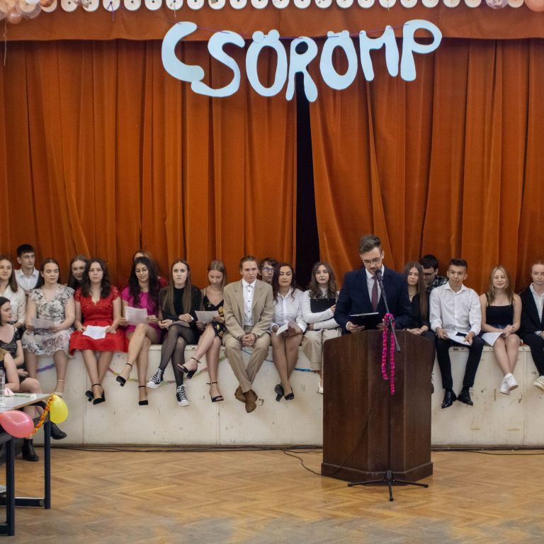 Idén is megrendezésre került a Csörömp, nálunk, az Ady Endre Elméleti Líceumban, május 19-én, pontban délután 5 órától. Amikor is a végzősök a 11.-esekkel egymásba karolva és a 9-10.-esek tapsviharától kísérve leballagtak, miközben énekelték a Gaudeamus igitur-t, Ezután mindenkit a helyére kísértek, és a tizenegyedikes évfolyam felkonferálta az igazgatót, a volt és jelenlegi aligazgatót, illetve a pedagógusainkat, hogy mondjanak pár szót, amivel megnyitják ezt az eseményt. Mindenki nagyon izgatott volt, viszont néhány jó szó elég volt ahhoz, hogy mindenki teljes odaadással, és tökéletes összpontosítással kövesse teendőit.