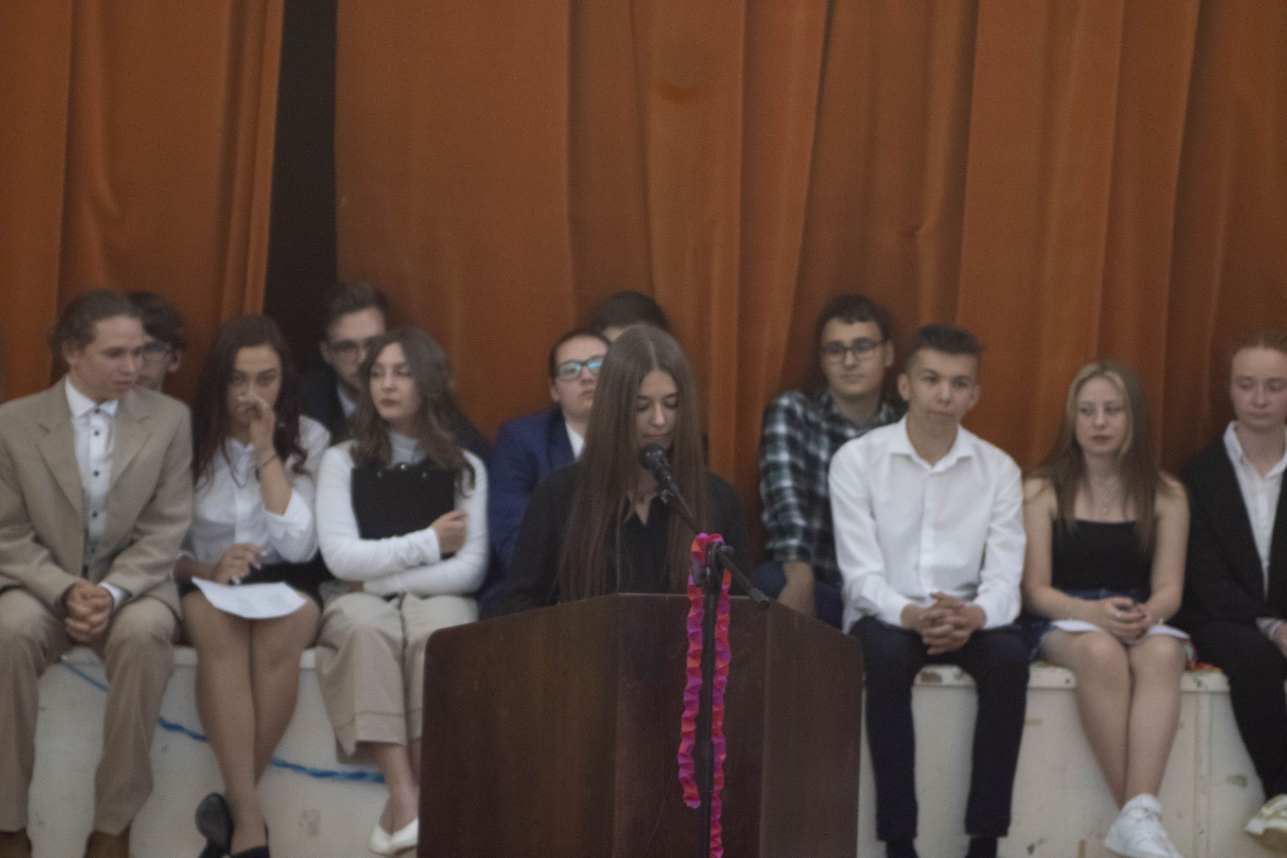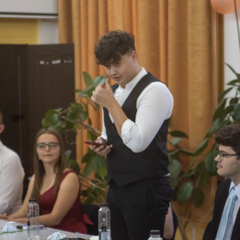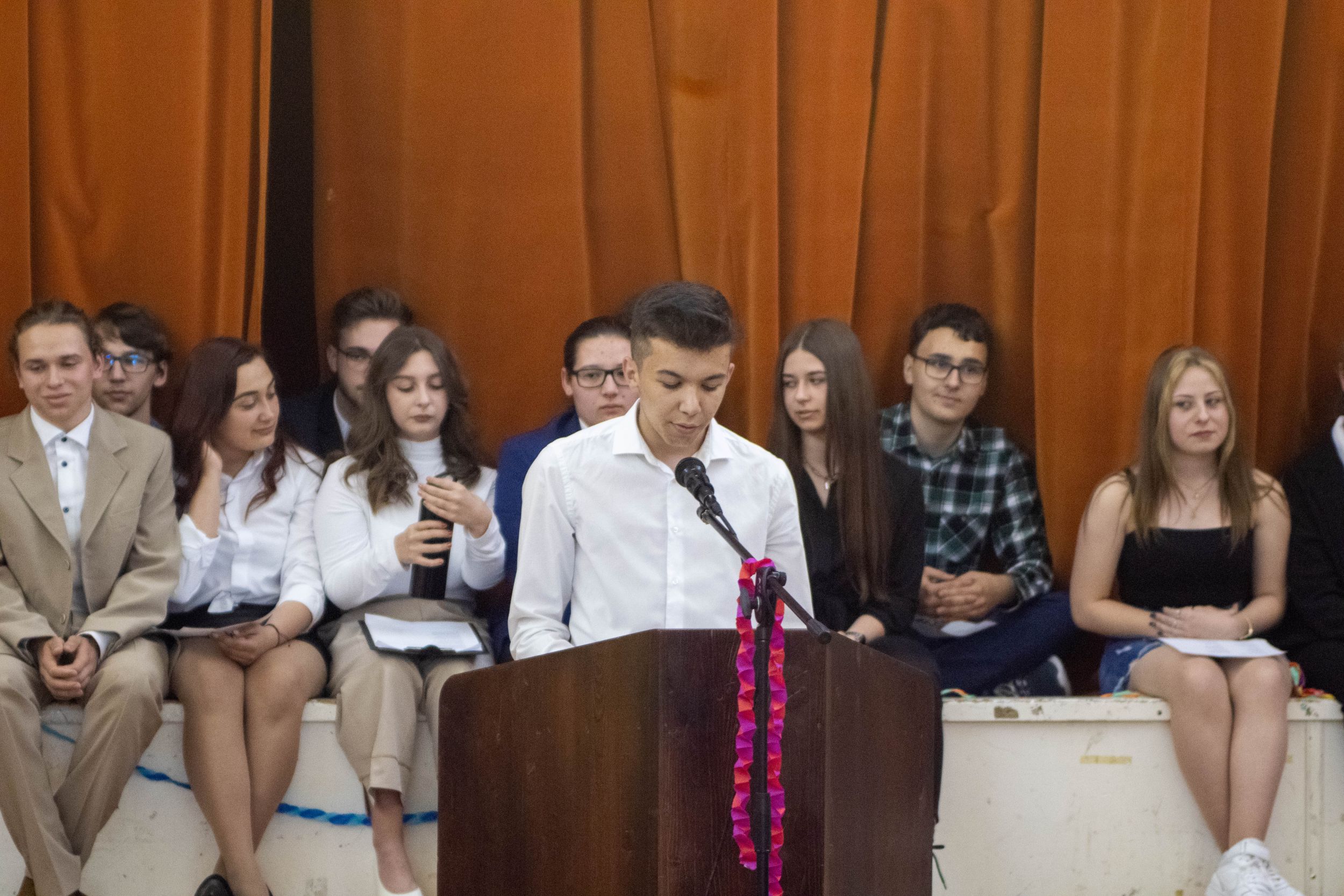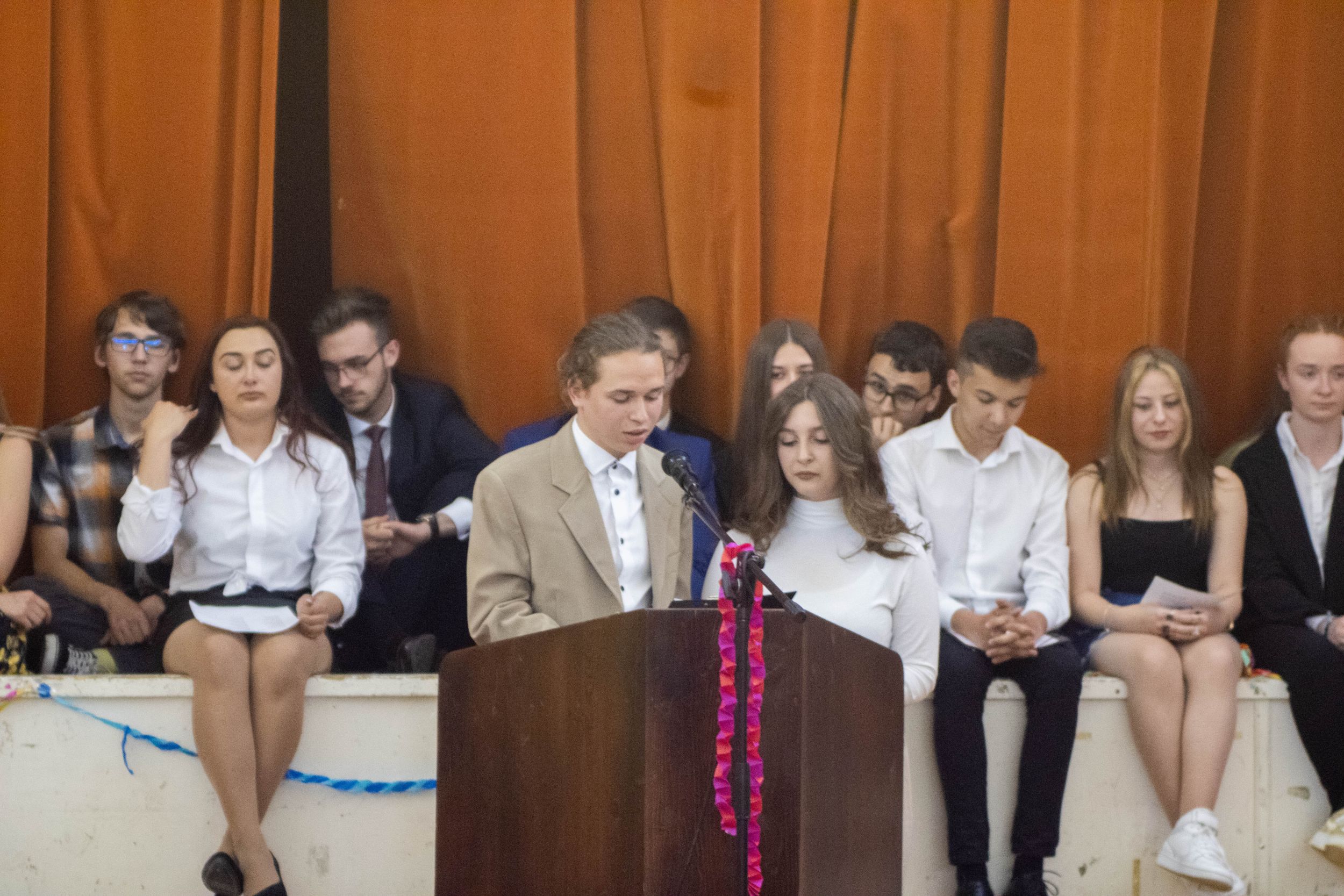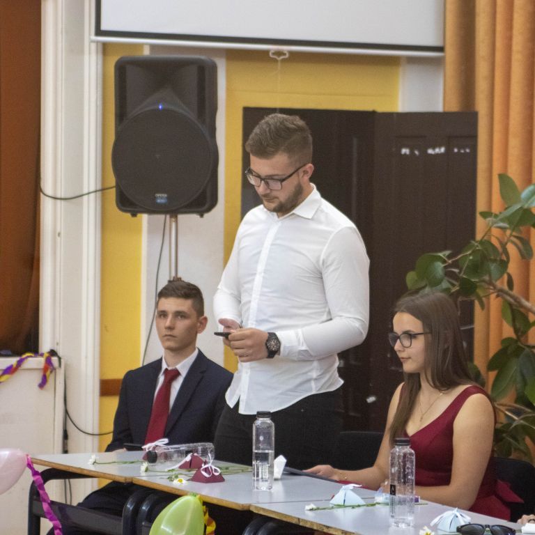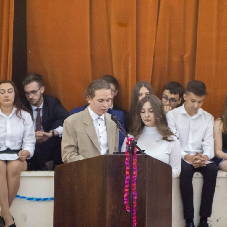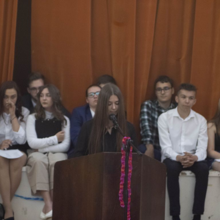 A tizenegyedik, tizedik és kilencedik osztály reméli, hogy mi is ezek közé a pillanatok és emberek közé tartozunk. És ha már csak pár nap van addig, míg magatokhoz tudjátok szorítani ezeket a velünk megélt pillanatokat és minket, egy apró helyet szorítsatok nekünk a szívetekben: a szobatársaitoknak, Moldován tanár úrnak és Gyöngyi néninek, szeretett Ildikó néninknek, aki most épp mosolyogva néz le rátok, az intrinek (még ha néha jönne a késztetés, hogy mihamarabb felejtsétek el), az iskolának, az osztálytársaitoknak, az itt megélt szép emlékeknek, de a rosszaknak is, és még sorolhatnám. Csak egy apró helyet kérünk, és okkal: az élet megy tovább, és most szó szerint ti is. Új helyekre mentek, új városokba és iskolákba, egyetemekre, ahol új embereket fogtok megismerni, és mi a háttérbe szorulunk, de ez így van rendjén.