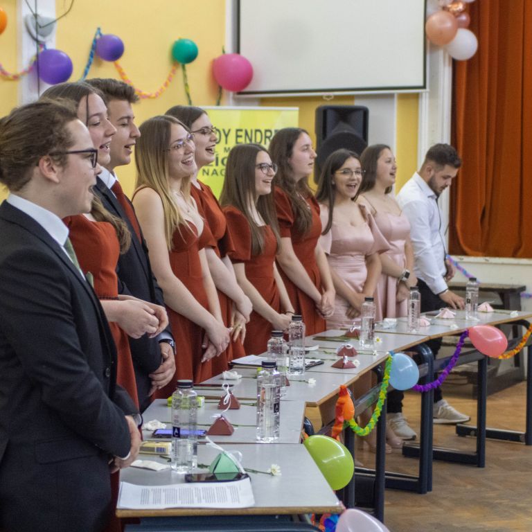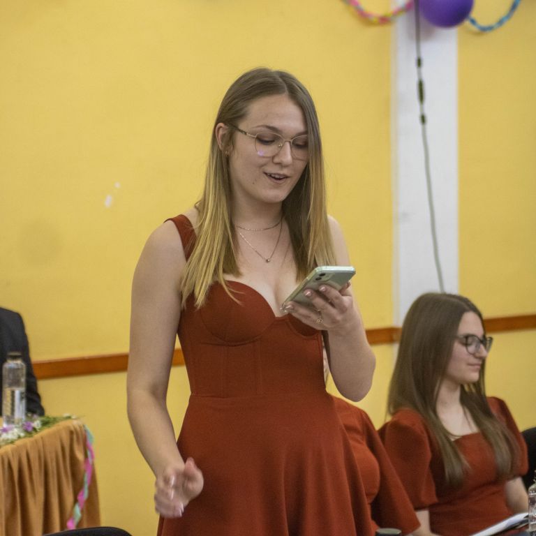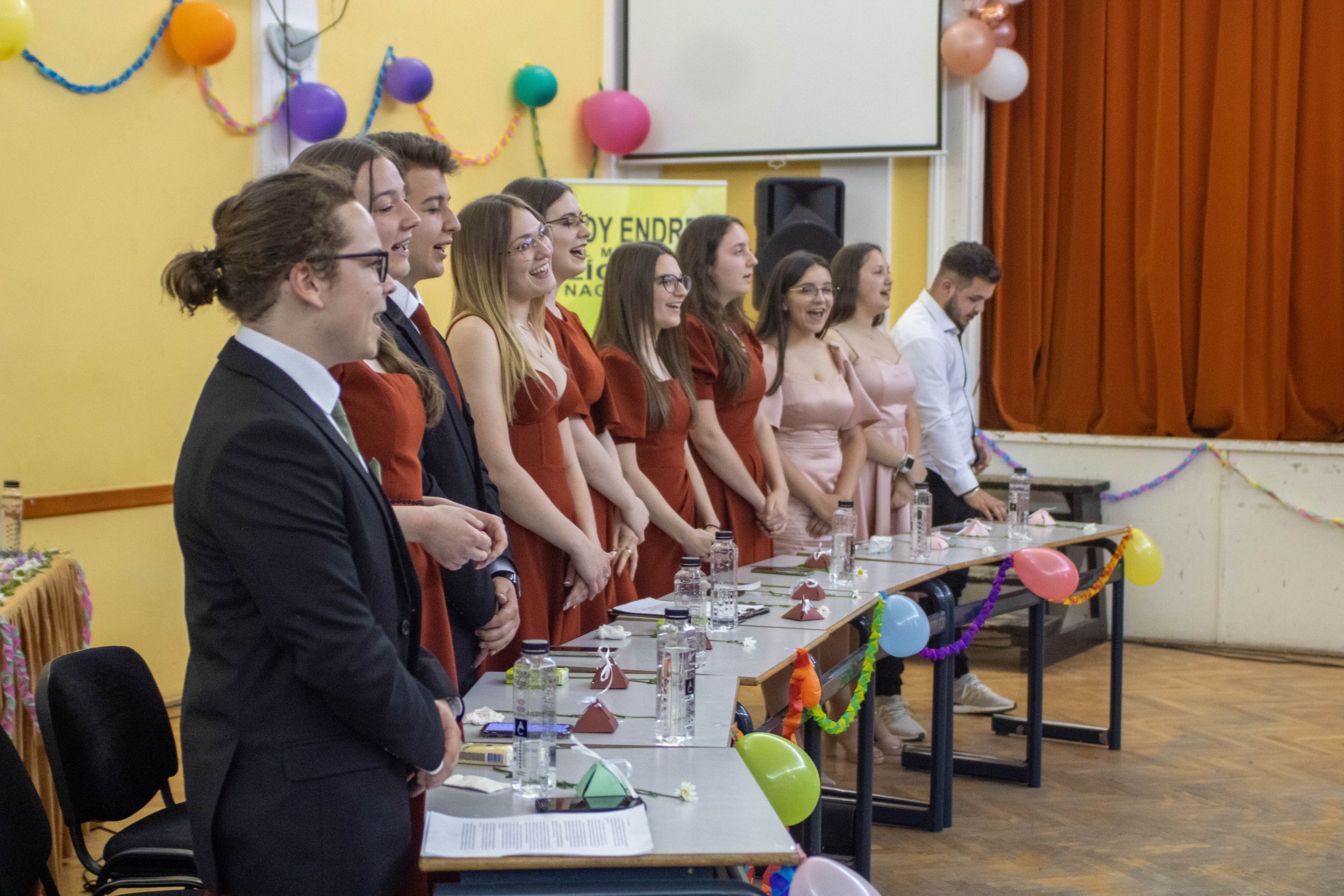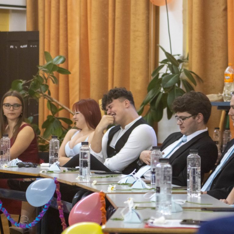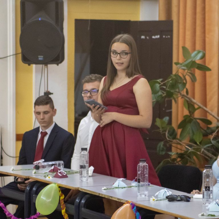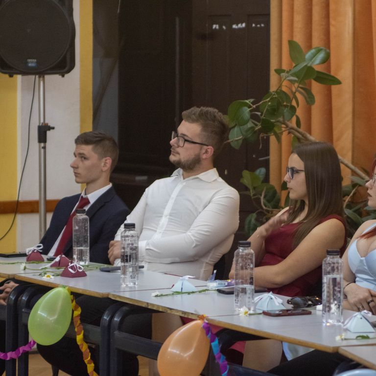 A nevetést követően pedig átadtuk a stafétát a végzős diákjainknak, osszák meg ők is gondolataikat, érzelmeiket erről a négy évről. Bár számukra sem volt egy könnyű feladat mindenki könnyes szemét nézni, és ismét felhozni azokat a dolgokat, amiért élmény volt számukra ez a hely. Hála töltötte be szívüket azért is, mert sikerült összehoznunk nekik ezt a csodálatos napot, azért is, mert remek “őrangyalok” , vigyázó, és gondos pedagógusok igazíthatták útjukat. Hiszen csak úgy elrepült ez a négy év, és bár nem kevés szabály volt, amit be kellett tartani, de ezek miatt jutottak el oda, ahol vannak, és ezek betartása segítette őket abban, hogy sikeres emberek legyenek. S bár a szülőktől távol voltak a hétköznapokban, de mindig ott voltak számukra, és minden bentlakó számára a “pedák”, akik ha bármikor szükség volt, a védelmükre keltek, és saját gyermekeikként kezelték annak ellenére, hogy nem mindig voltak a leghálásabb gyerekek.