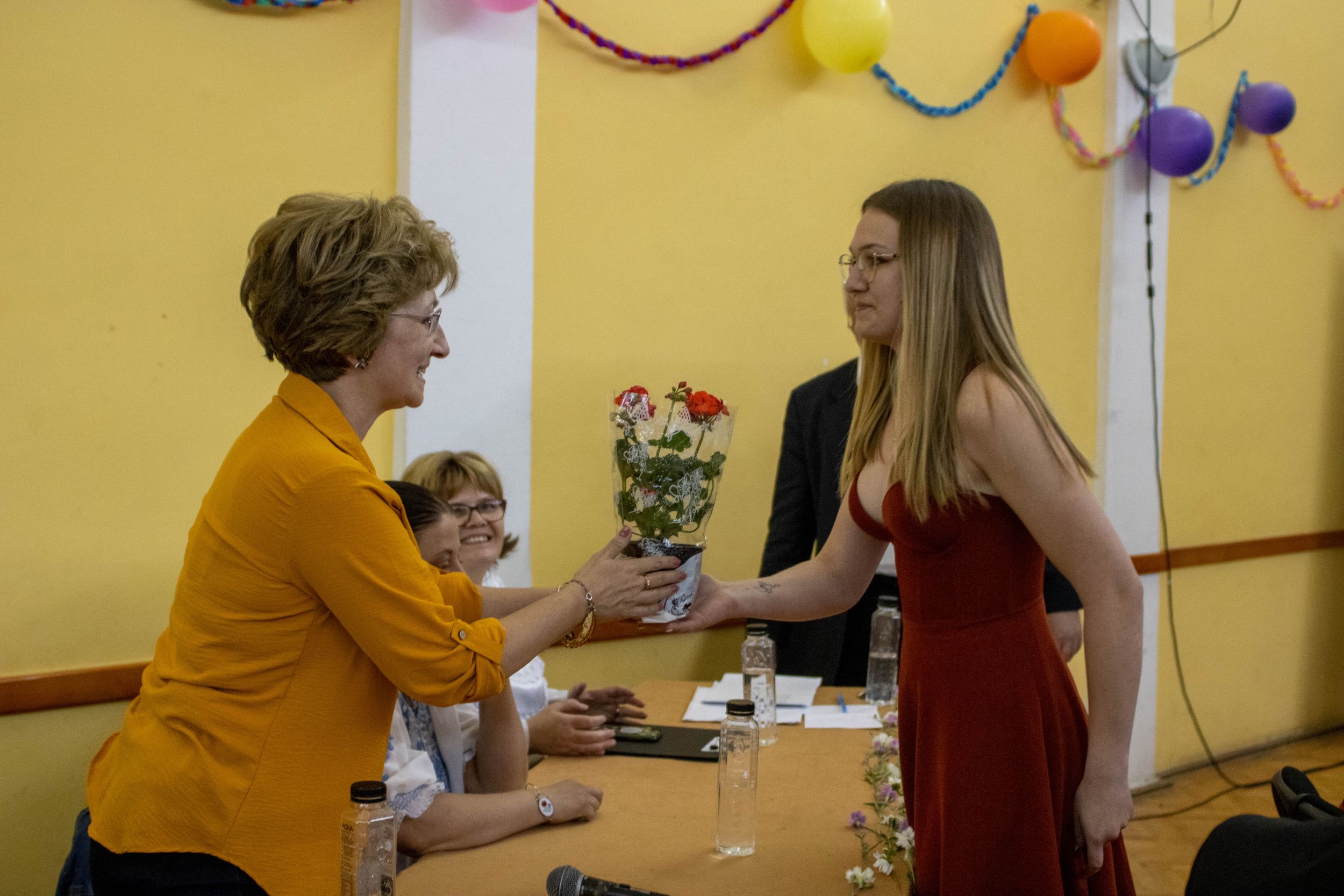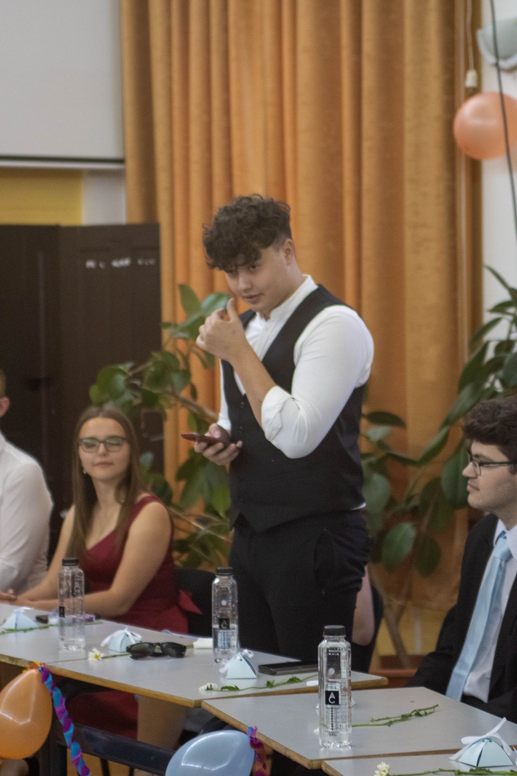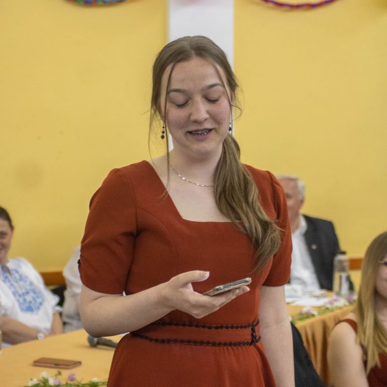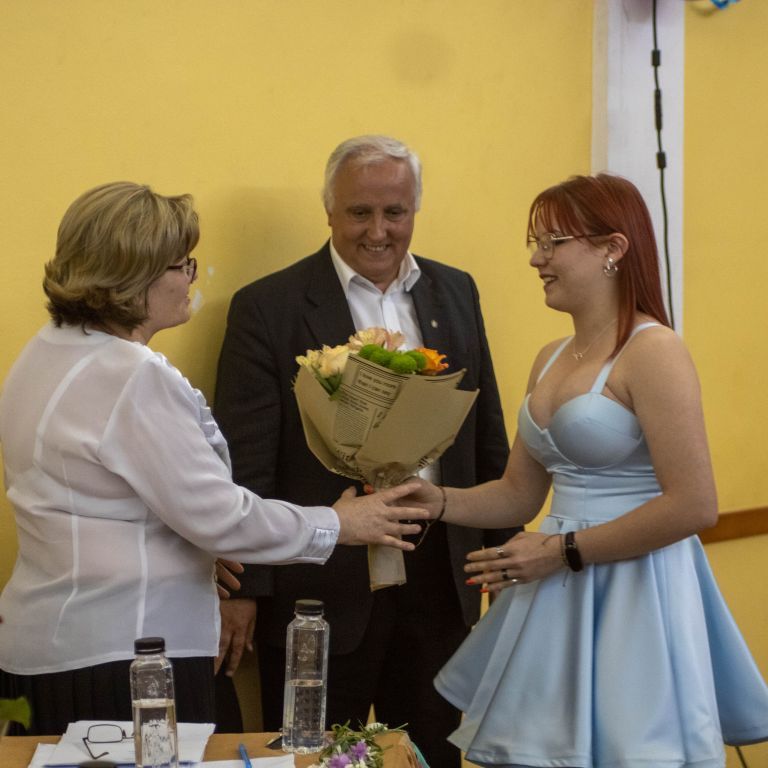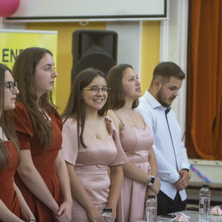 A nevetést követően pedig átadtuk a stafétát a végzős diákjainknak, osszák meg ők is gondolataikat, érzelmeiket erről a négy évről. Bár számukra sem volt egy könnyű feladat mindenki könnyes szemét nézni, és ismét felhozni azokat a dolgokat, amiért élmény volt számukra ez a hely. Hála töltötte be szívüket azért is, mert sikerült összehoznunk nekik ezt a csodálatos napot, azért is, mert remek “őrangyalok” , vigyázó, és gondos pedagógusok igazíthatták útjukat. Hiszen csak úgy elrepült ez a négy év, és bár nem kevés szabály volt, amit be kellett tartani, de ezek miatt jutottak el oda, ahol vannak, és ezek betartása segítette őket abban, hogy sikeres emberek legyenek. S bár a szülőktől távol voltak a hétköznapokban, de mindig ott voltak számukra, és minden bentlakó számára a “pedák”, akik ha bármikor szükség volt, a védelmükre keltek, és saját gyermekeikként kezelték annak ellenére, hogy nem mindig voltak a leghálásabb gyerekek.