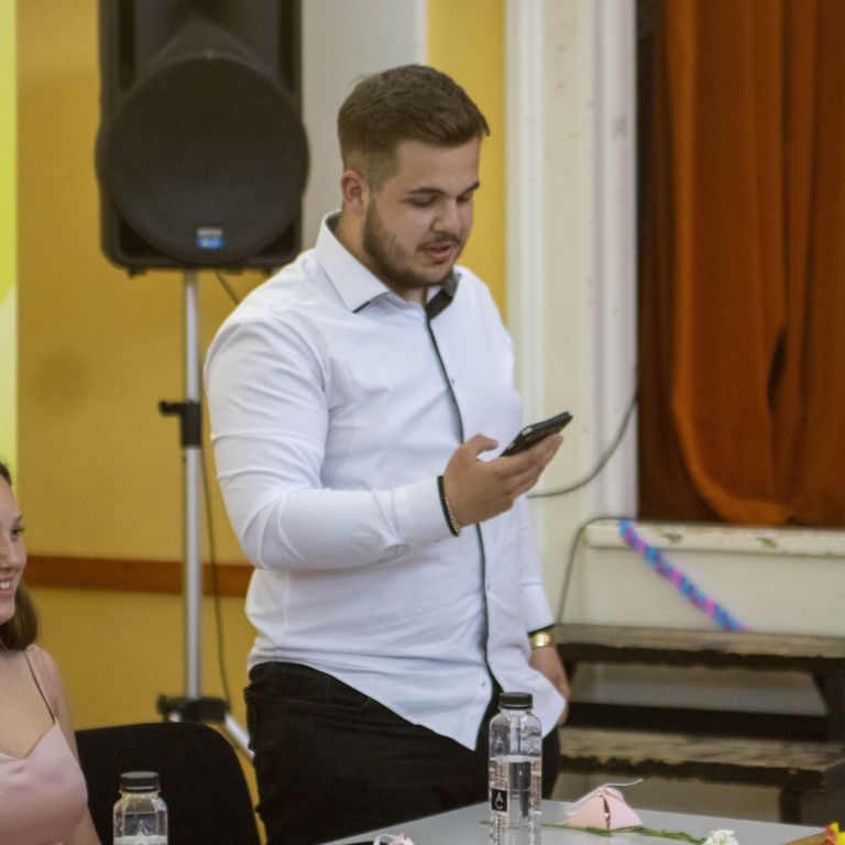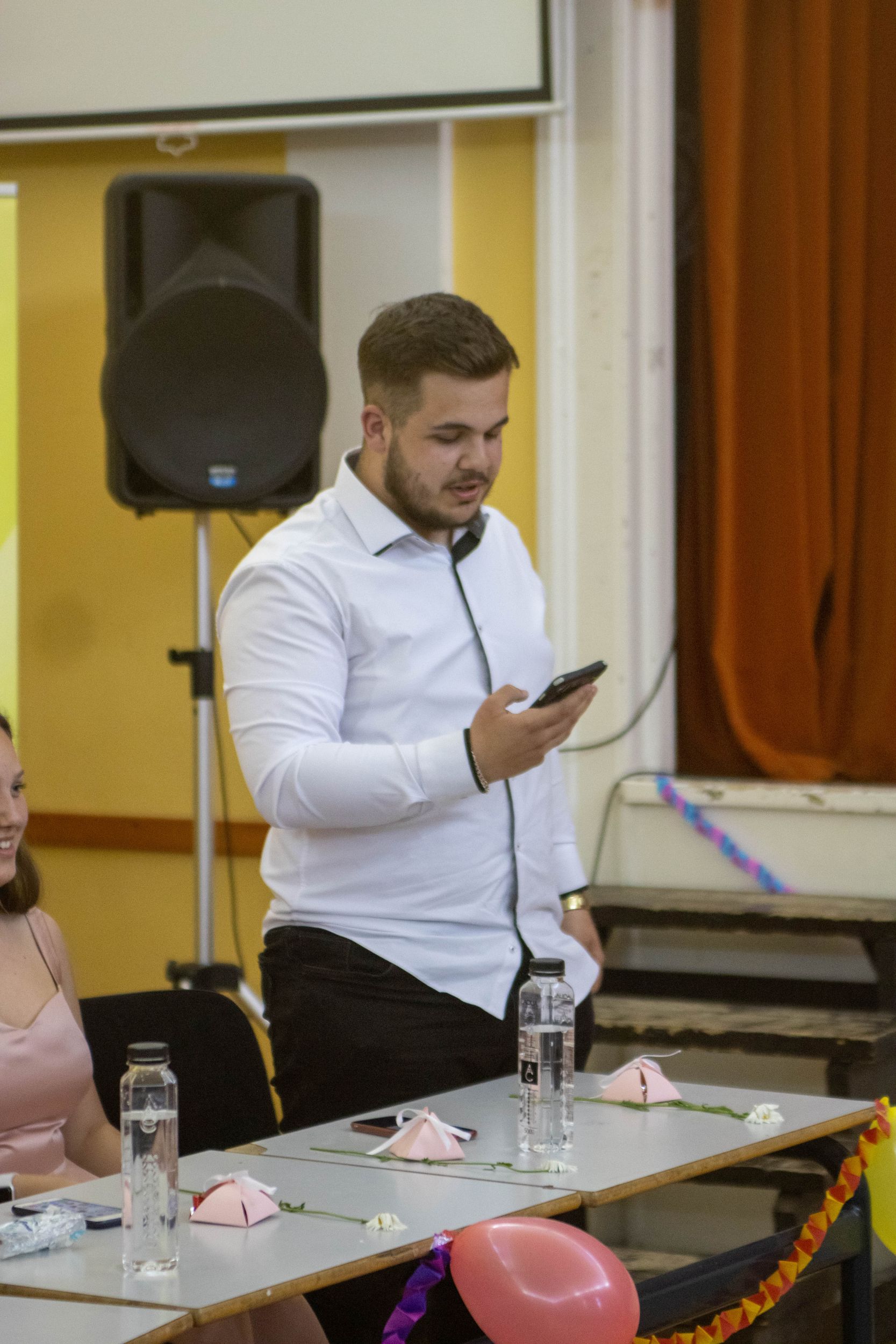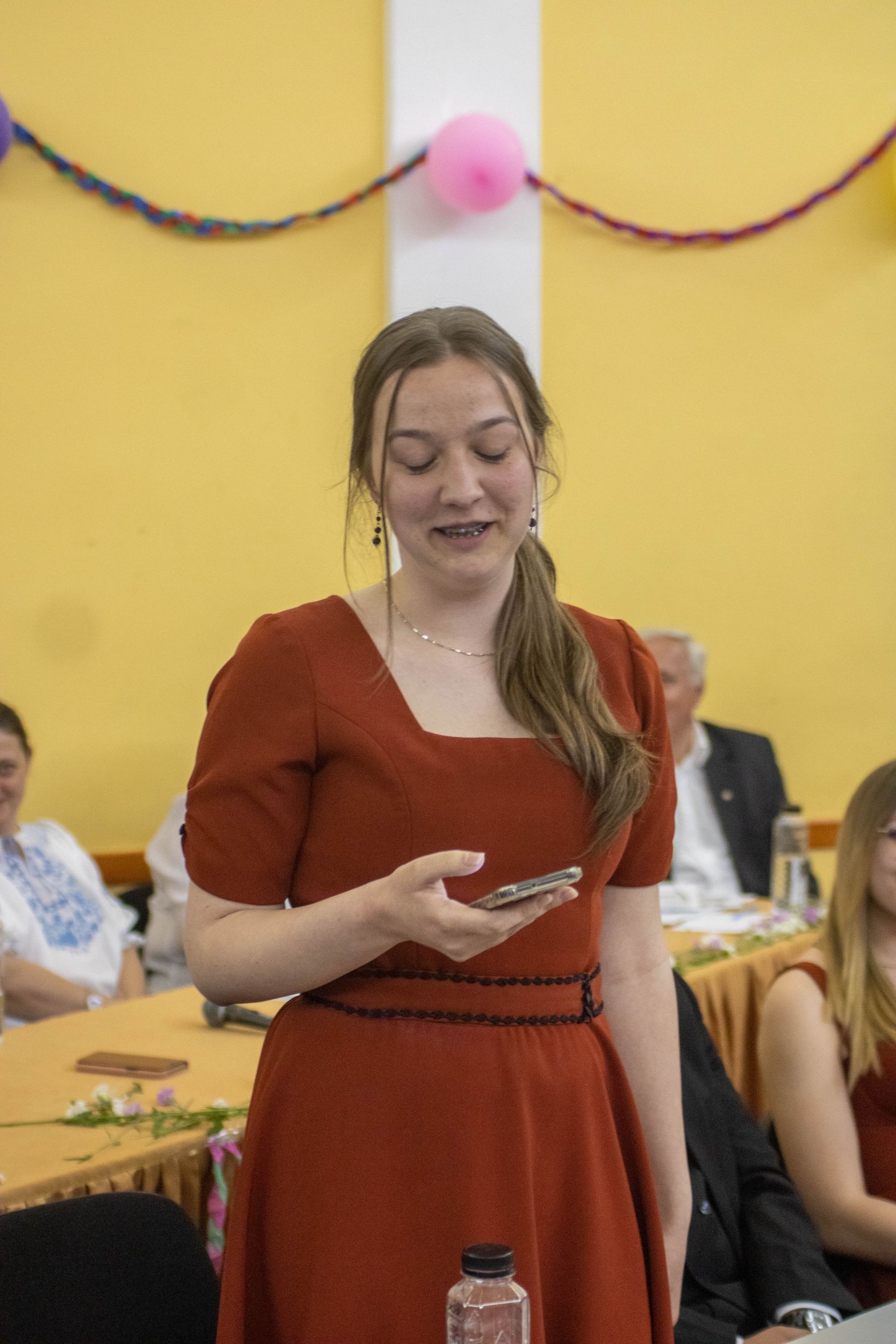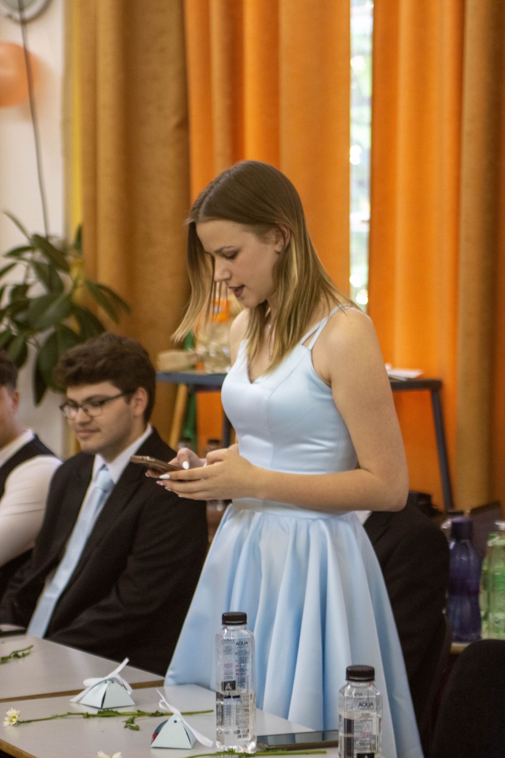 A nevetést követően pedig átadtuk a stafétát a végzős diákjainknak, osszák meg ők is gondolataikat, érzelmeiket erről a négy évről. Bár számukra sem volt egy könnyű feladat mindenki könnyes szemét nézni, és ismét felhozni azokat a dolgokat, amiért élmény volt számukra ez a hely. Hála töltötte be szívüket azért is, mert sikerült összehoznunk nekik ezt a csodálatos napot, azért is, mert remek “őrangyalok” , vigyázó, és gondos pedagógusok igazíthatták útjukat. Hiszen csak úgy elrepült ez a négy év, és bár nem kevés szabály volt, amit be kellett tartani, de ezek miatt jutottak el oda, ahol vannak, és ezek betartása segítette őket abban, hogy sikeres emberek legyenek. S bár a szülőktől távol voltak a hétköznapokban, de mindig ott voltak számukra, és minden bentlakó számára a “pedák”, akik ha bármikor szükség volt, a védelmükre keltek, és saját gyermekeikként kezelték annak ellenére, hogy nem mindig voltak a leghálásabb gyerekek.