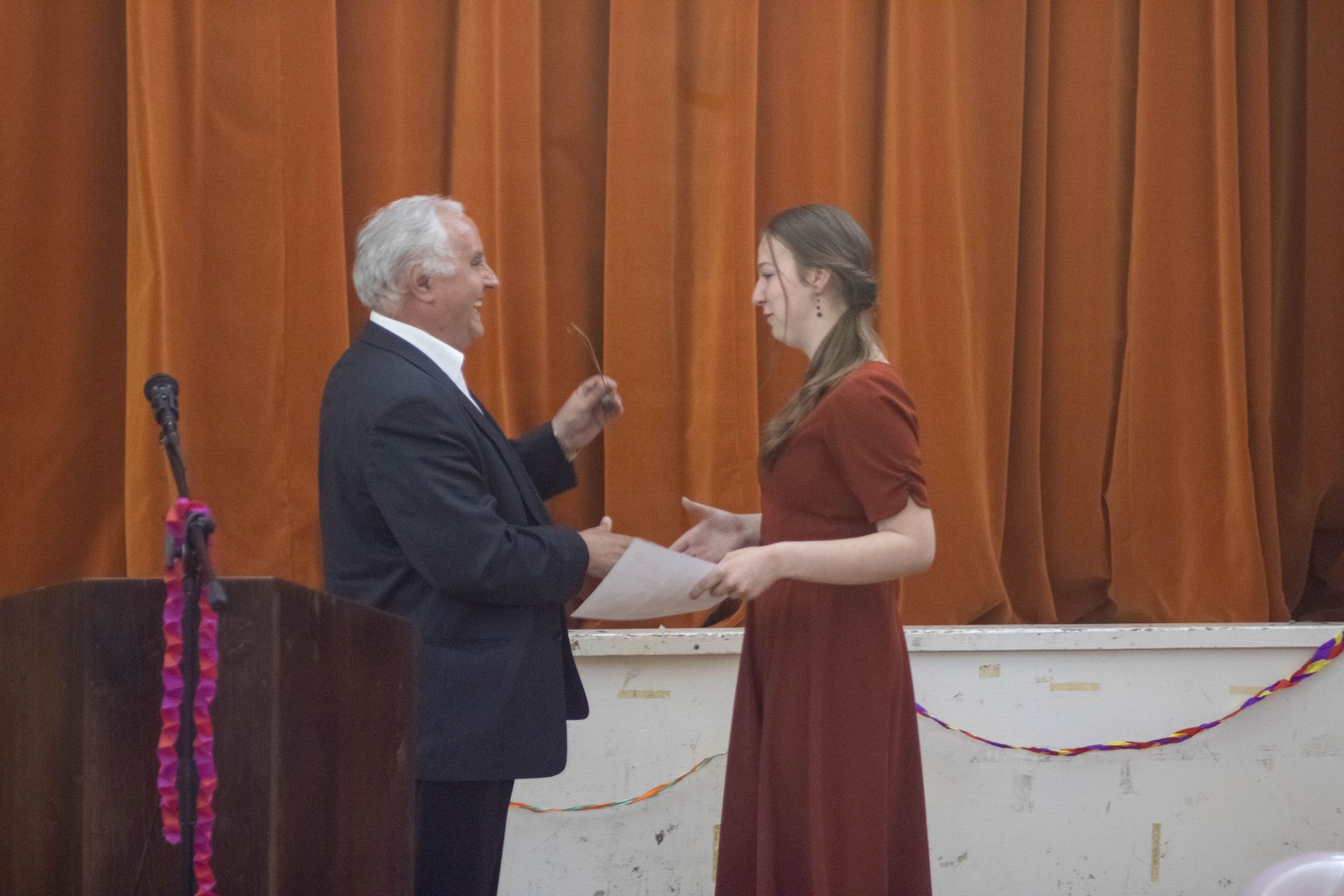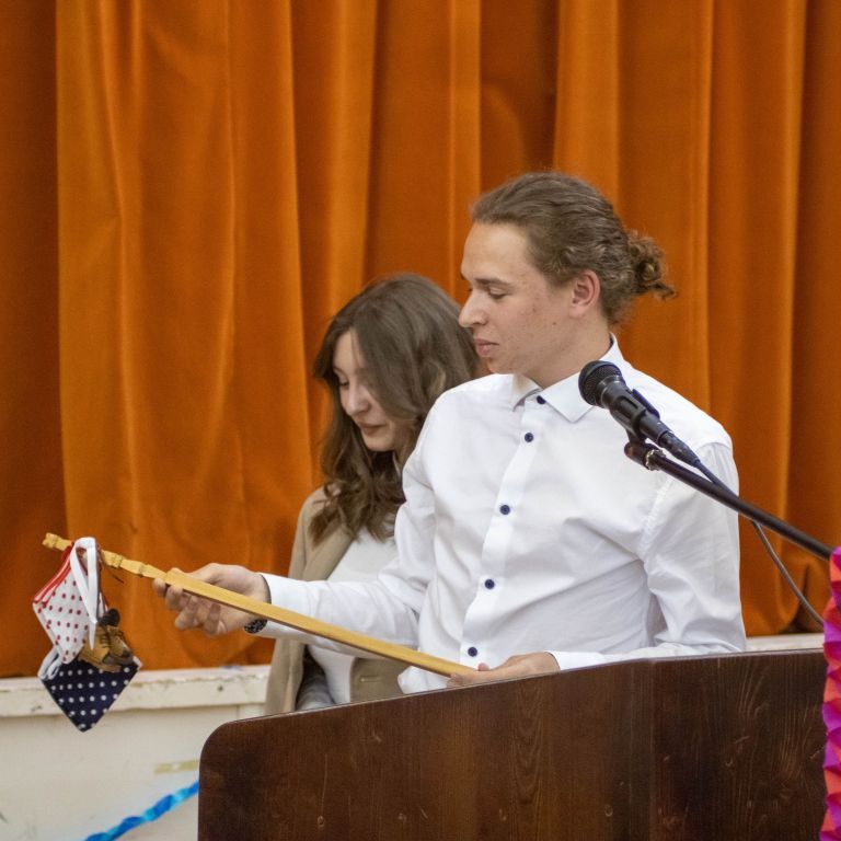 Mindezek után a kisebbek felé fordultak diákjaink, és egy-egy mondattal átadták a stafétát. Mi pedig egy kis kopjafát adtunk nekik, amin volt egy pár bakancsoska, ami azt jelképezi, hogy ezentúl igyekezzenek mindent kipipálni a bakancslistájukról. A pedagógusok pedig idézetekkel vagy versbe foglalt gondolatokkal adták át a diplomát azoknak, akik az “éhezők viadalát” átéltek, és a végsőkig bentlakásosak maradtak.
